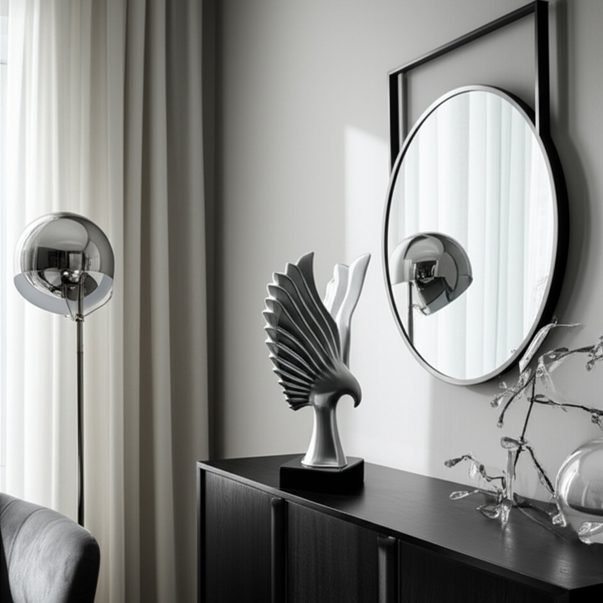 Bring a sense of strength and elegance to your space with the Eagle Tabletop Decor. This contemporary sculpture captures a soaring eagle in striking detail, symbolizing freedom and power. Crafted with artistic precision and bold coloring, it makes a stunning focal point for any room. Whether placed on a console, desk, or shelf, this piece adds a regal presence and creative sophistication to your home or office décor. Perfect for art lovers and those who appreciate timeless design, it’s a statement accent with enduring style.