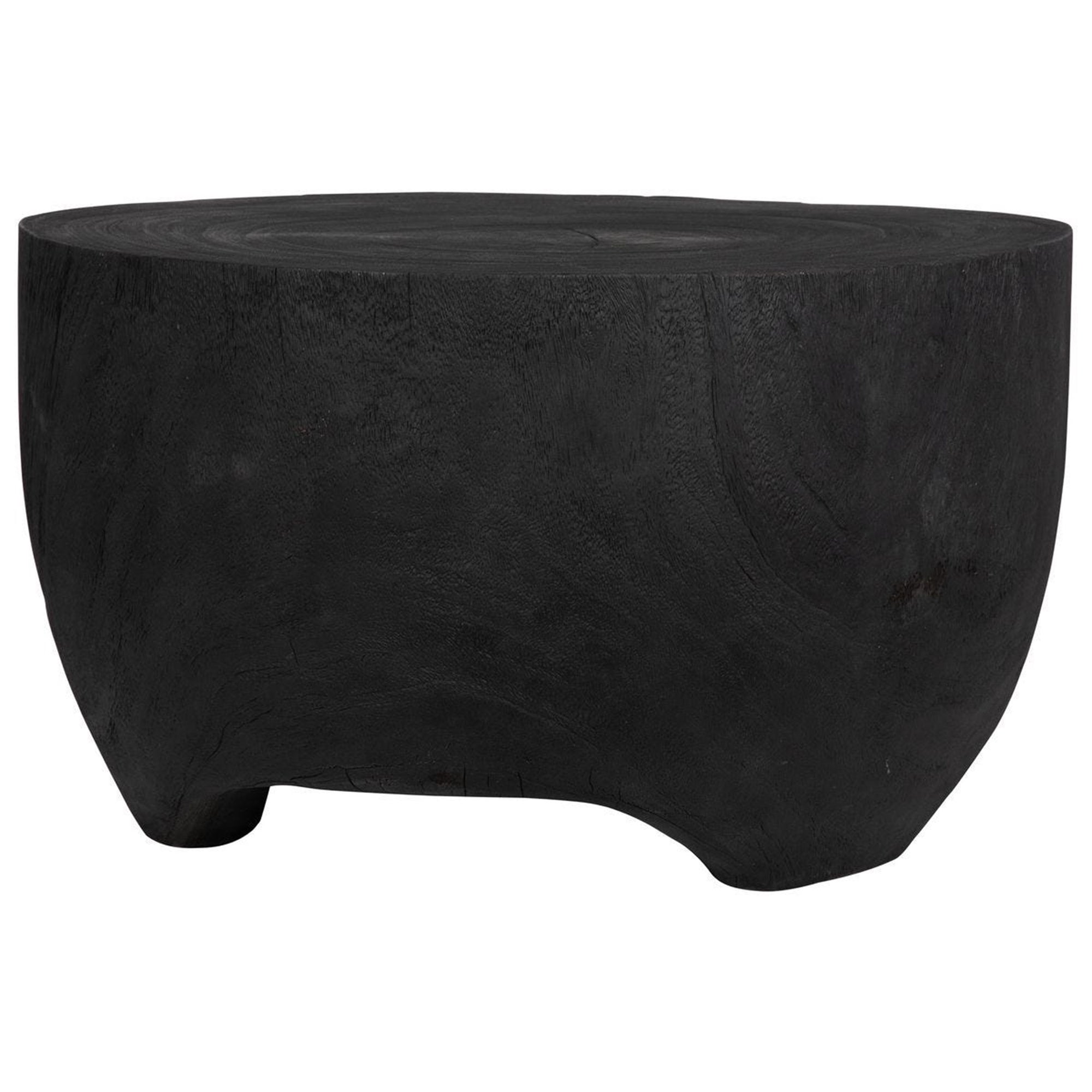 The Elevate Coffee Table features a bold, sculptural silhouette that brings a substantial, grounding presence to any seating arrangement. It showcases a perfectly flat, broad top surface ideal for displaying decorative accents or resting everyday essentials. The piece is defined by its massive, solid monolithic construction, which is elegantly softened by a uniquely scooped lower profile that creates subtle, integrated feet along the base. The entire continuous exterior boasts a highly tactile, deeply textured grain that beautifully captures light and shadow. This robust, drum-inspired architectural design effortlessly merges organic character with modern, minimalist lines.