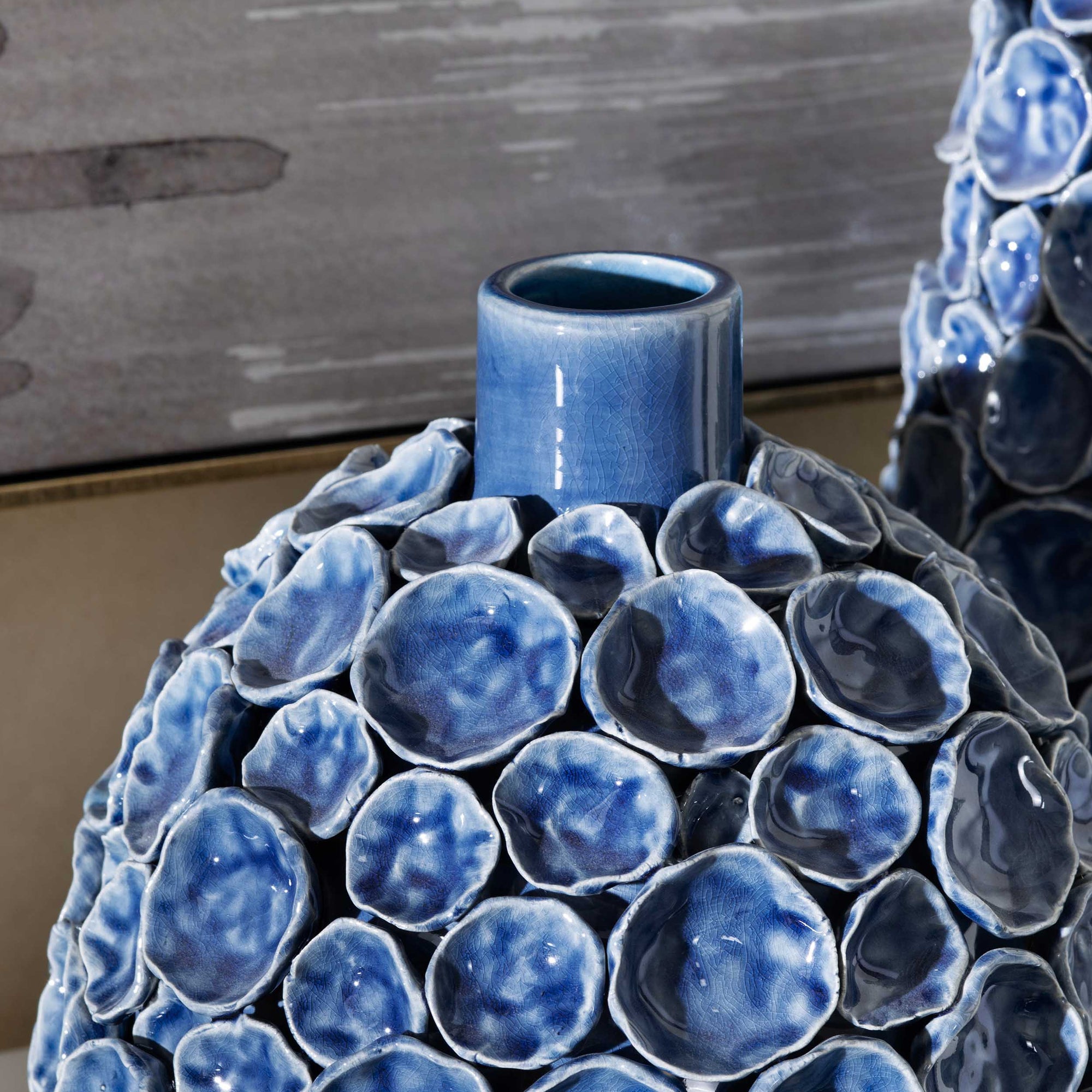 The Emile Vases feature a sleek, modern silhouette in a rich blue ceramic finish. Each vase adds elegance and color to your tabletop, shelf, or mantel, making them perfect accents for transitional or contemporary home décor.