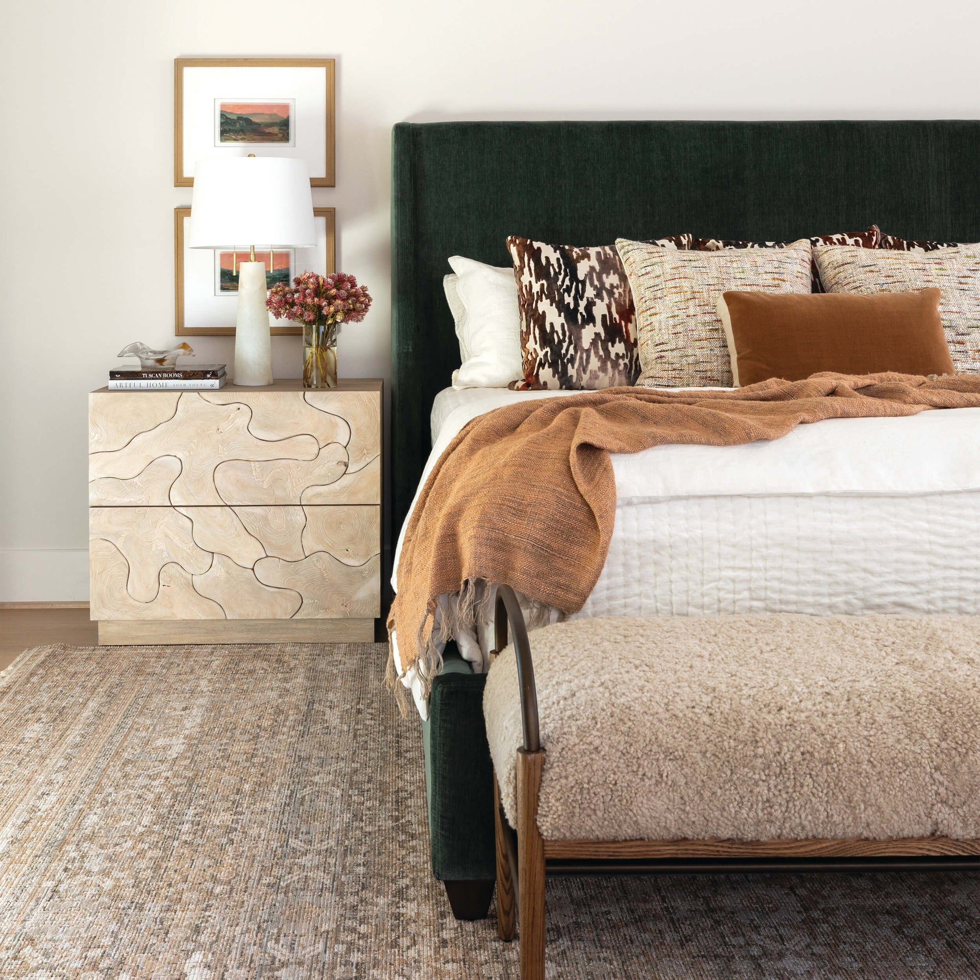The clean lines and subtle presentation of the Emma Bed help create the perfect bedroom oasis. The luxuriously tufted headboard with sheltering wings at the sides are just that touch of softness to fulfill all the nesting instincts of comfort and security.