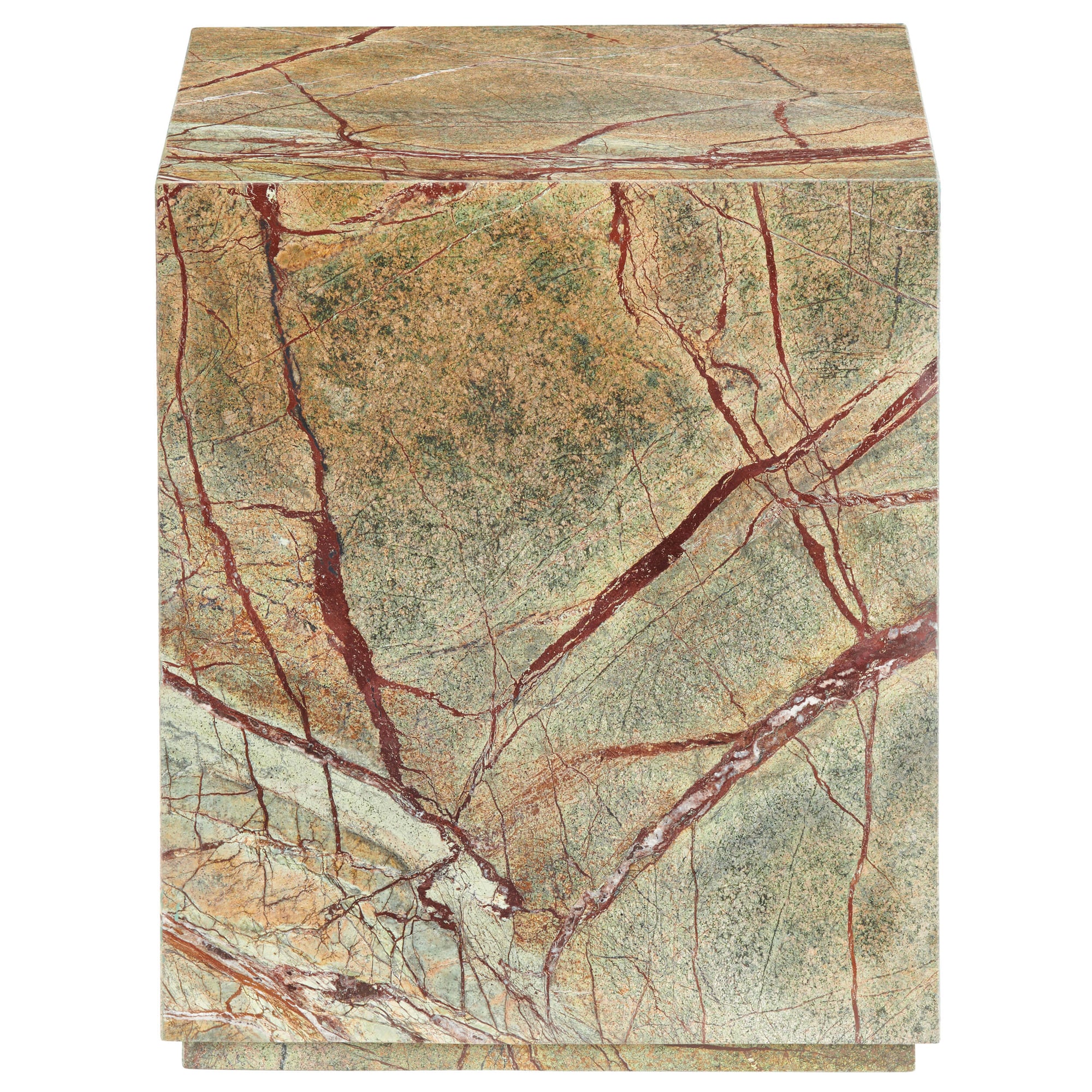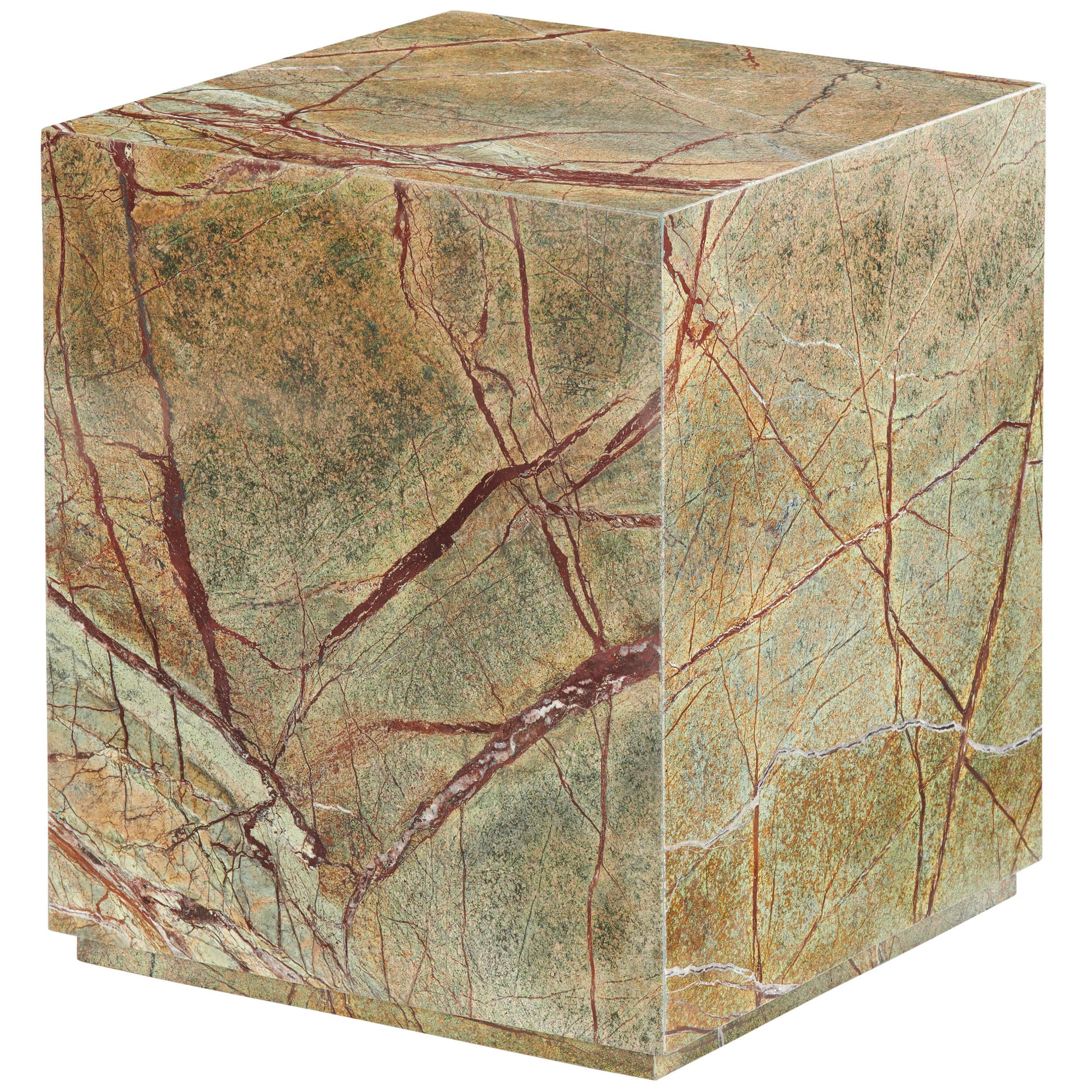 The Enzo Accent Table exudes bold sophistication with its striking block-style design. Crafted from green-brown marble, the table showcases rich, natural veining that brings depth and character to any space. Its solid plinth base provides a sculptural, grounded presence while maintaining a sleek, minimalist silhouette. Perfect as a side table or statement piece, the Enzo Accent Table combines luxurious materials with modern geometry, adding both elegance and strength to your living area.