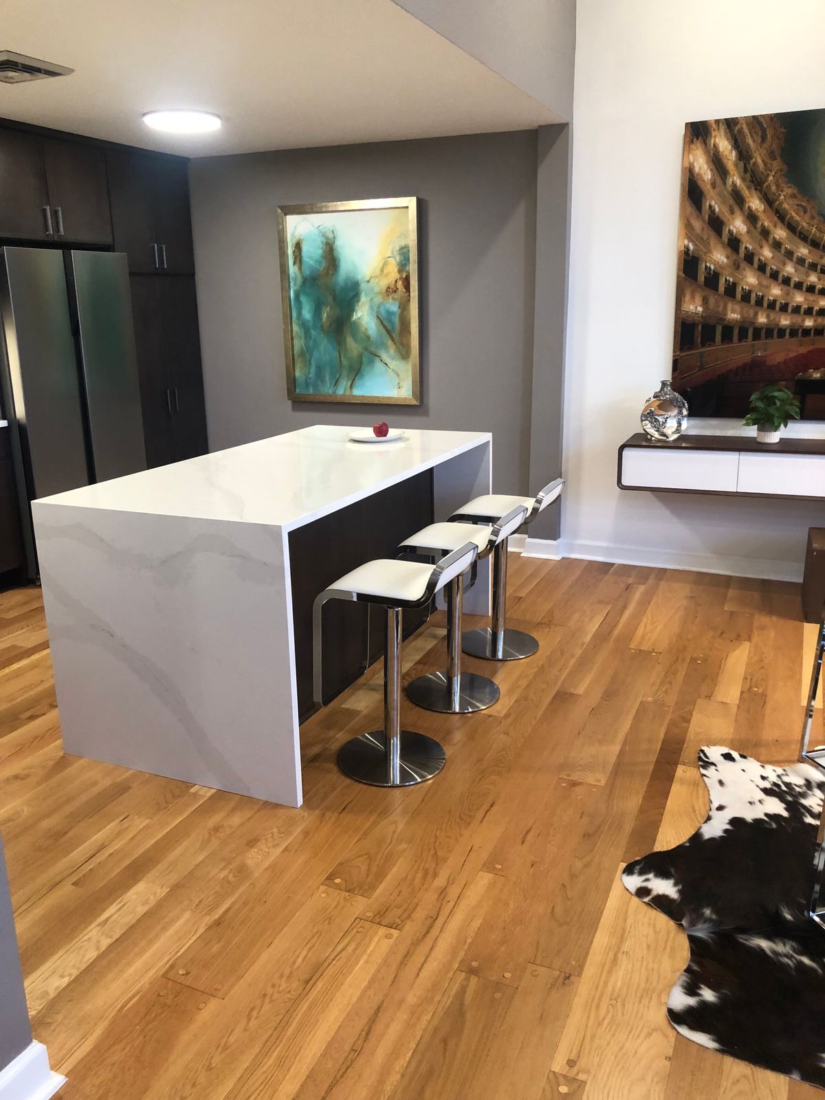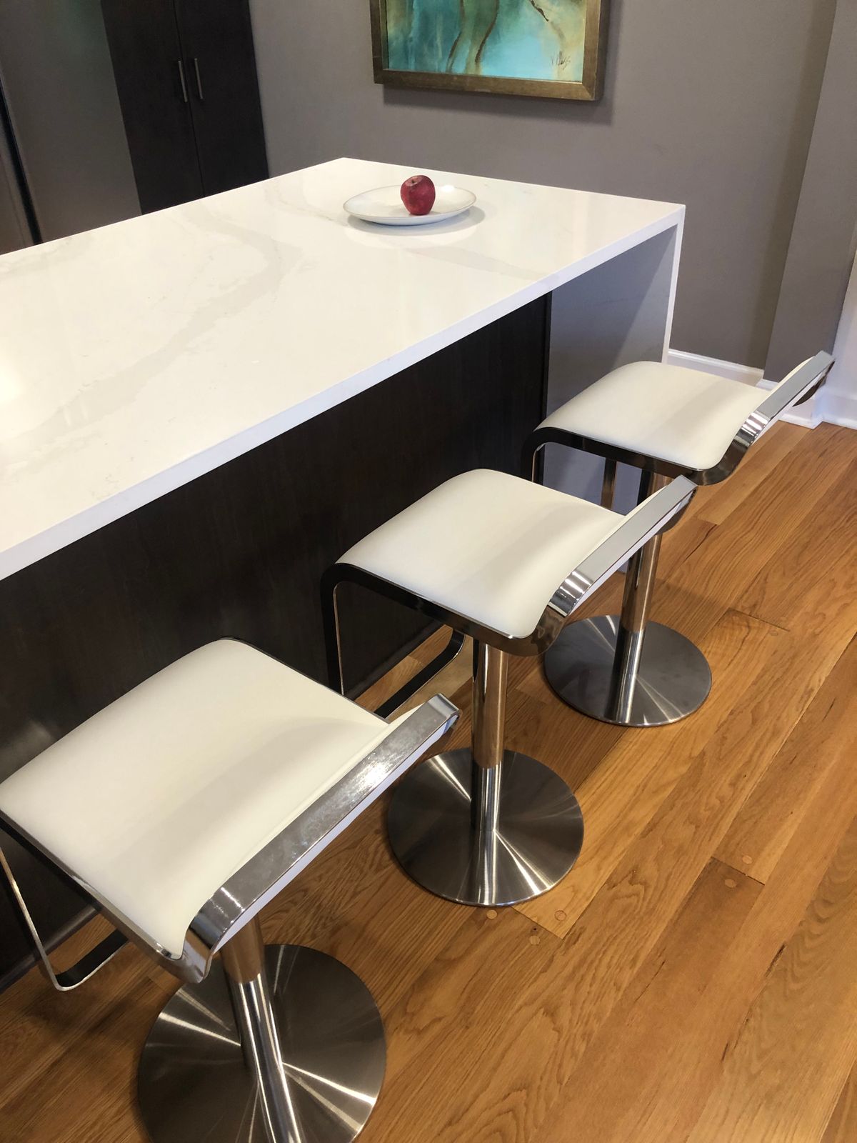 Waited five months for these bad boys. And it was worth every minute. The chairs are so elegant, sleek and modern. My favorite aspect of them is that they don’t have high backs, so they don’t obstruct view of the countertops. Assembly was very straightforward.