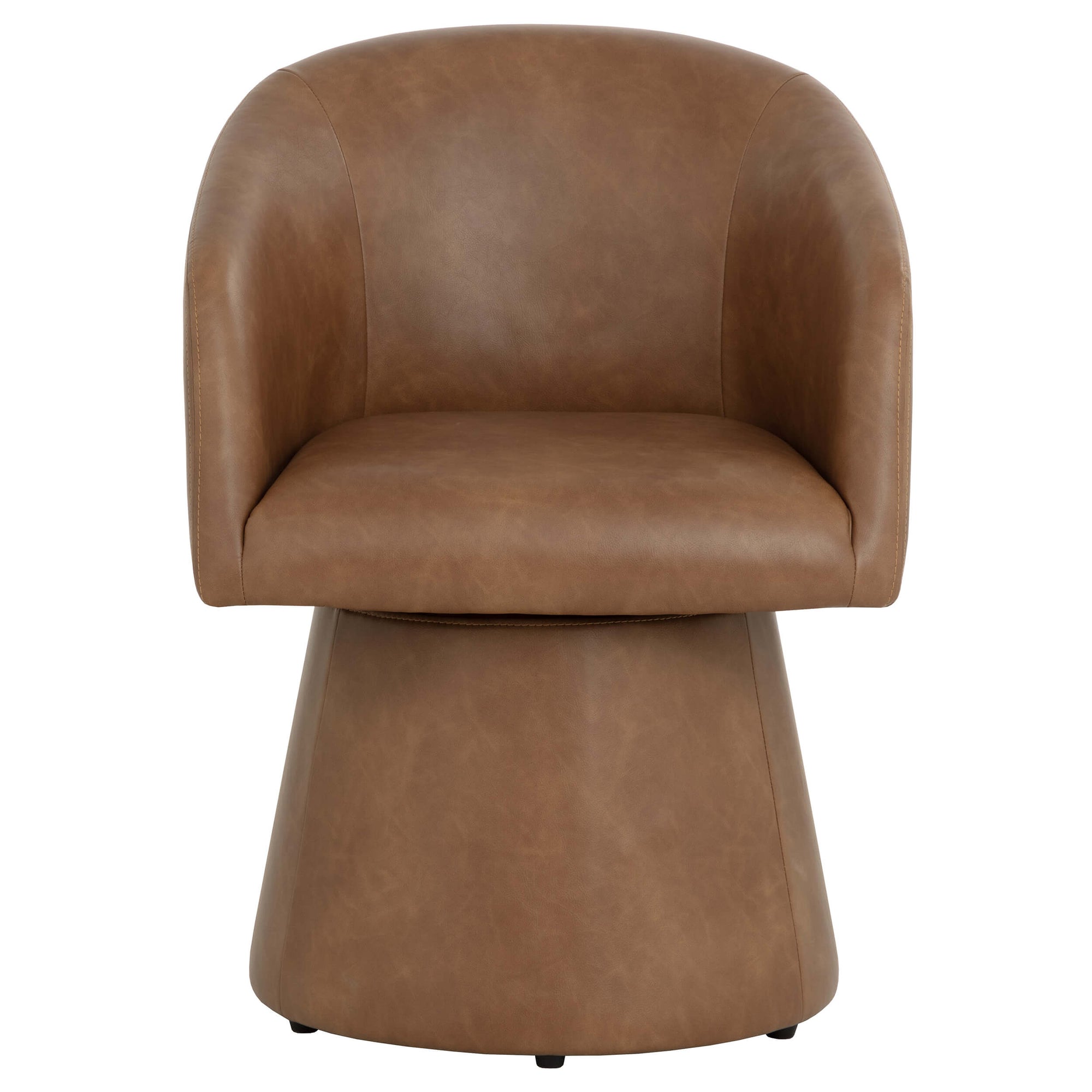 The Etta Swivel Dining Armchair re-imagines modern style as thoughtful simplicity in action. Fully upholstered in copely cognac faux leather and with a 360-degree swivel, this dining armchair makes the easy extraordinary.
