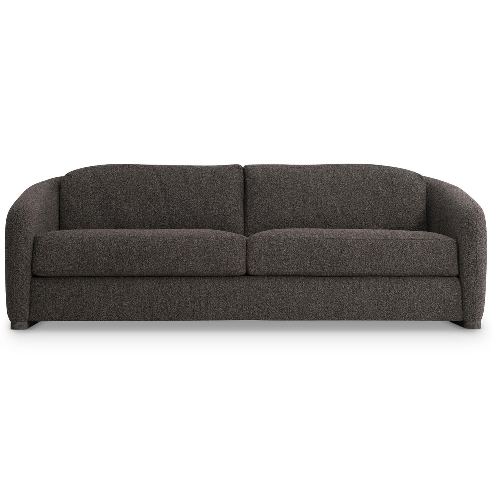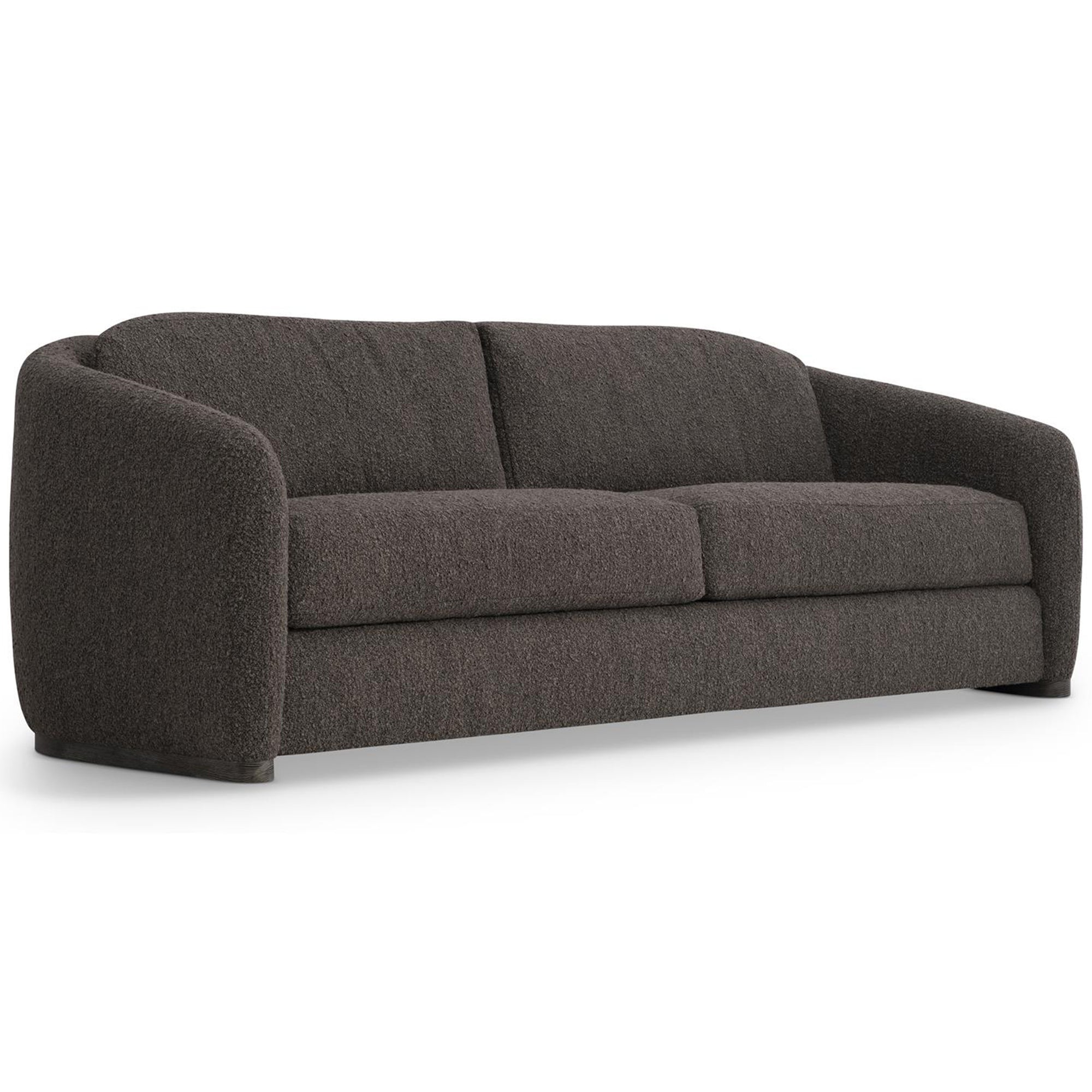 The Florence Sofa features a sweeping shelter-style back that cradles deep seat cushions and plush back pillows. With a modern plinth base and padded arms, this piece offers a perfect mix of structure and comfort.