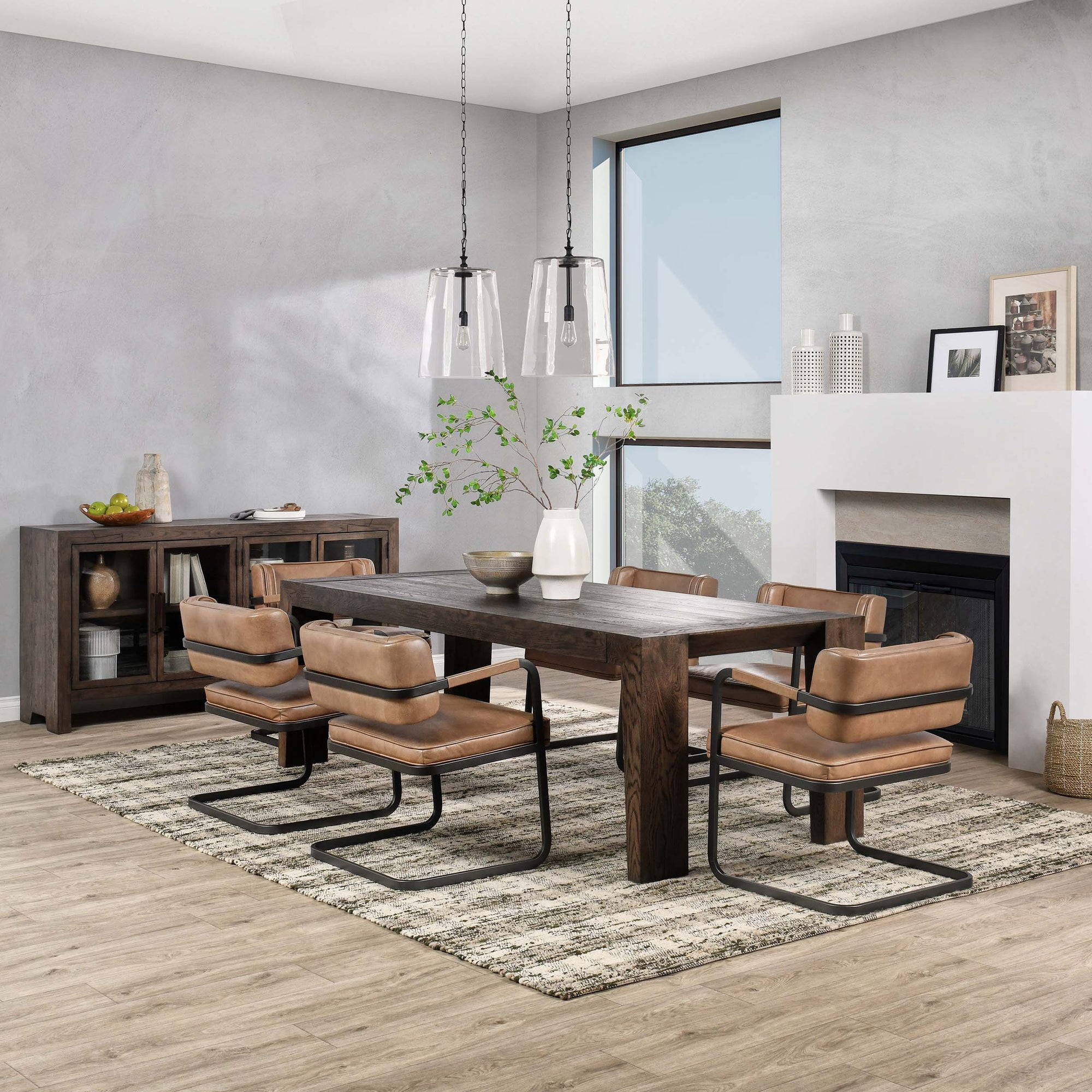 The Fonda Leather Dining Chair in Adobe Tan strikes a balance between industrial charm and refined comfort. Featuring a sturdy iron frame and supple top grain leather upholstery, this set of two chairs offers lasting durability and timeless appeal. With generous proportions and plush cushioning, they provide exceptional comfort for both everyday dining and special occasions.