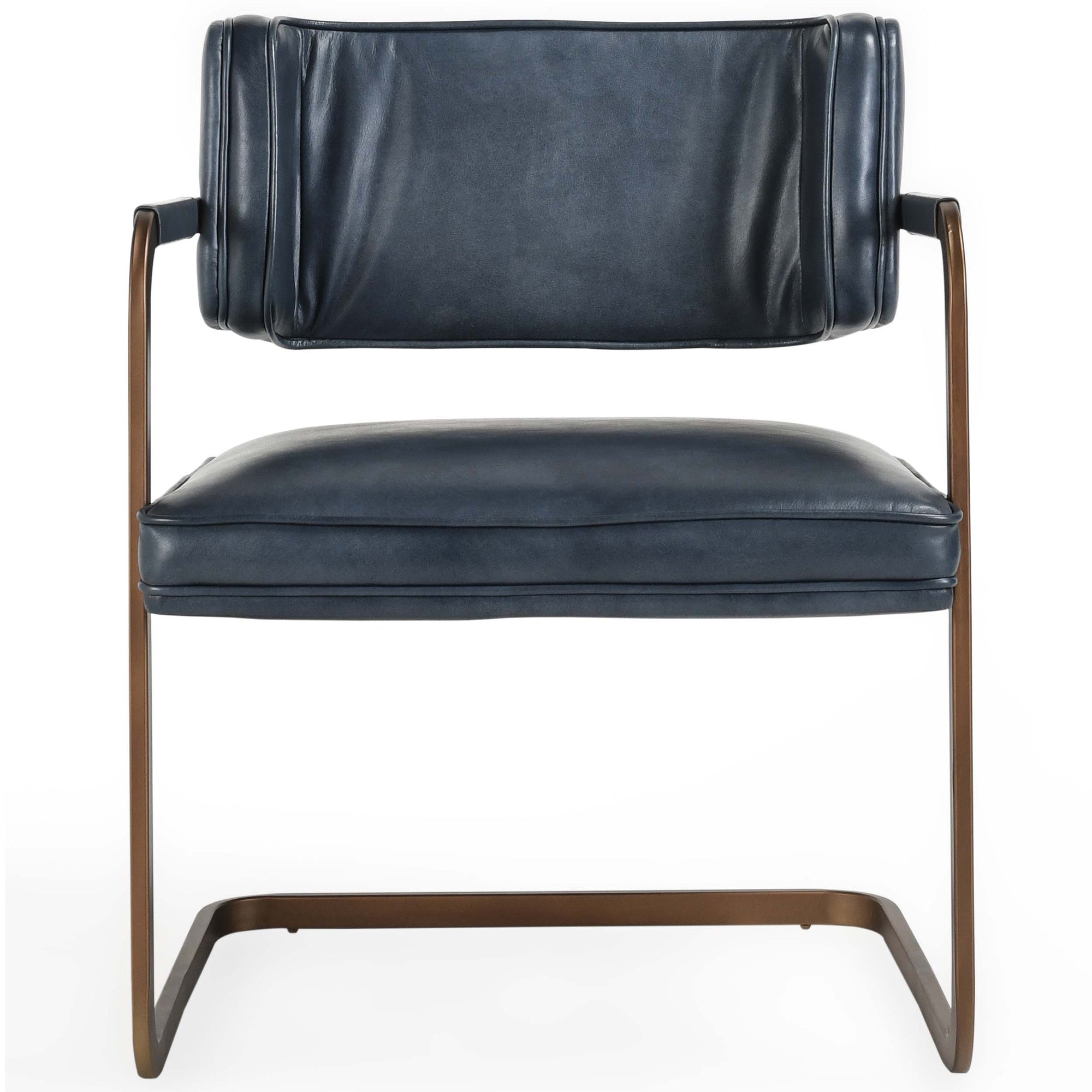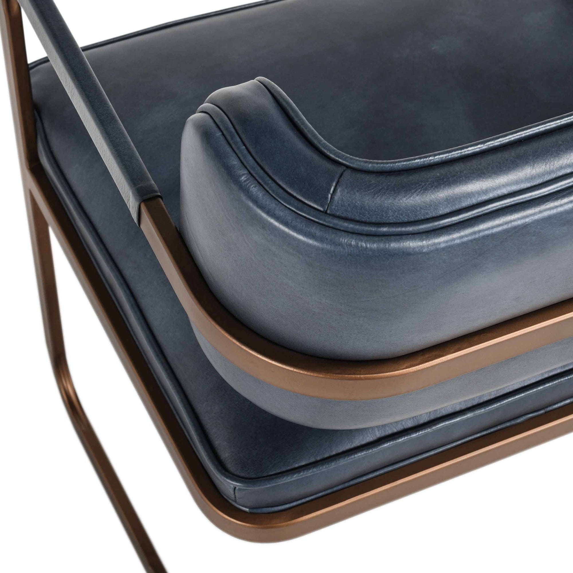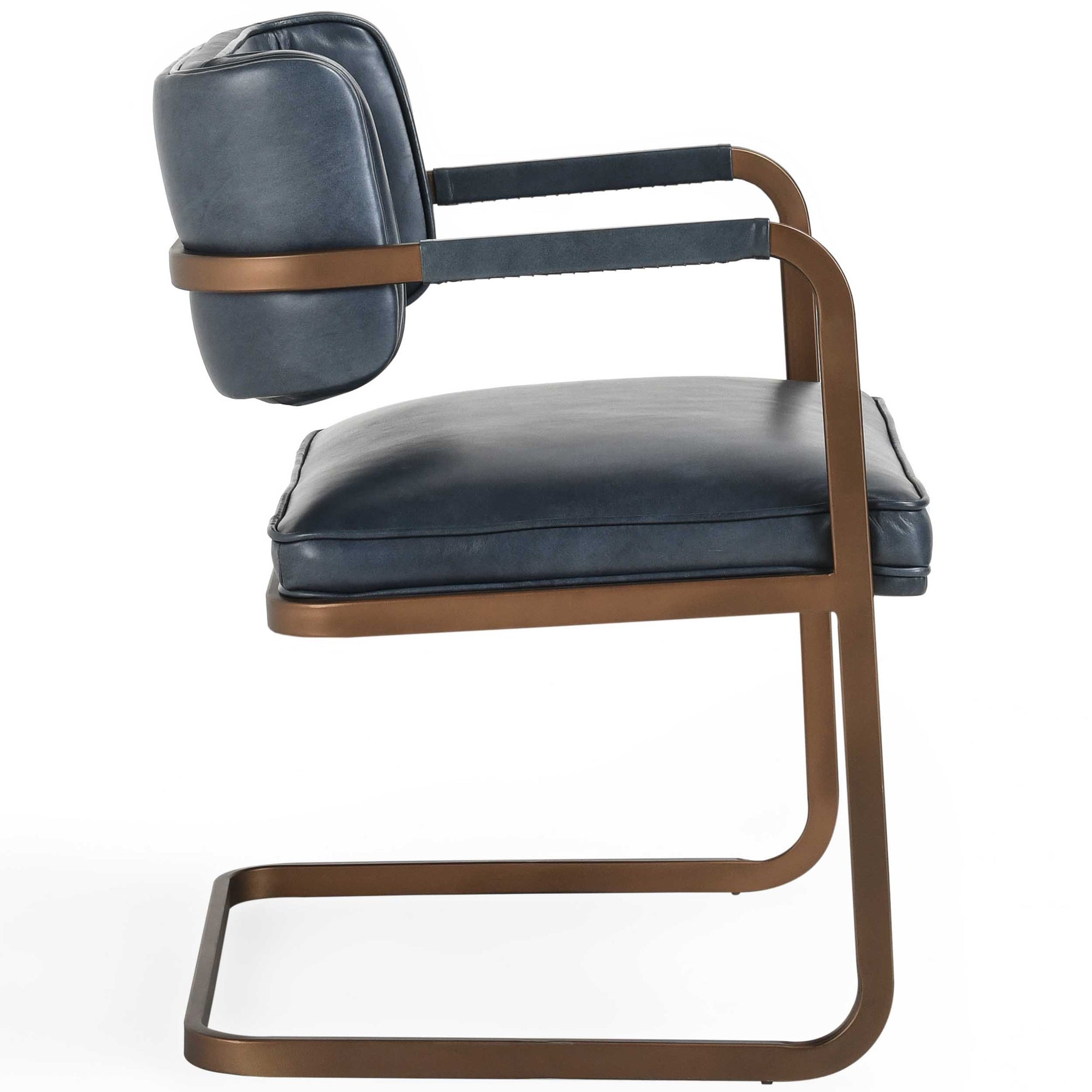 The Fonda Leather Dining Chair in Ocean Blue combines bold color with industrial elegance. Crafted with a sleek iron frame and upholstered in rich top grain leather, it offers exceptional durability and style. Designed for both comfort and visual impact, this set of two chairs is perfect for elevating any dining room.