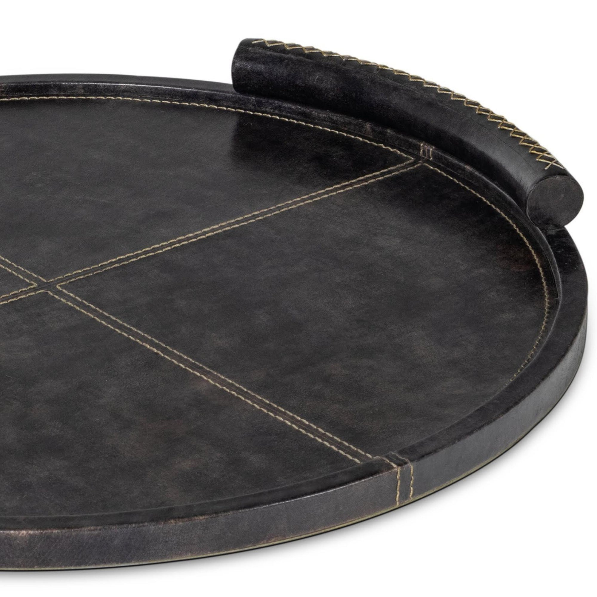 The Forte Leather Round Tray with Leather Handle is a striking blend of craftsmanship and character. Featuring detailed baseball-style stitching on the platform and lace-stitched oversized handles, it exudes artisanal charm. Its large, round shape and weathered leather finish create a warm, approachable aesthetic, making it as functional as it is stylish. Ideal for serving, organizing, or displaying decorative items, the Forte Tray adds effortless comfort and timeless appeal to any space.