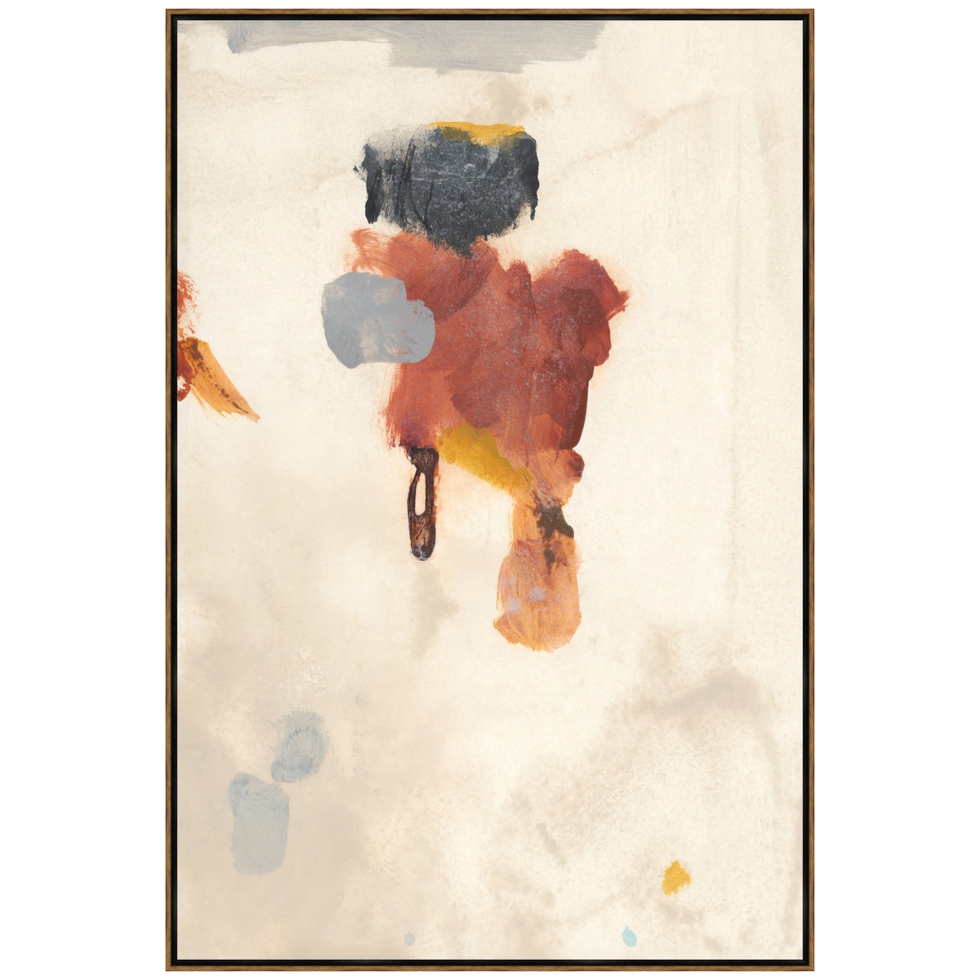 The Fragmented Memories III Framed artwork by David Erickson is a compelling abstract piece that features organic shapes and expressive marks in a soft, bright palette. The composition uses a minimalist aesthetic to convey an intriguing sense of mood and form. This striking piece offers a sophisticated and artistic presence, lending an element of modern elegance and intrigue to any space.