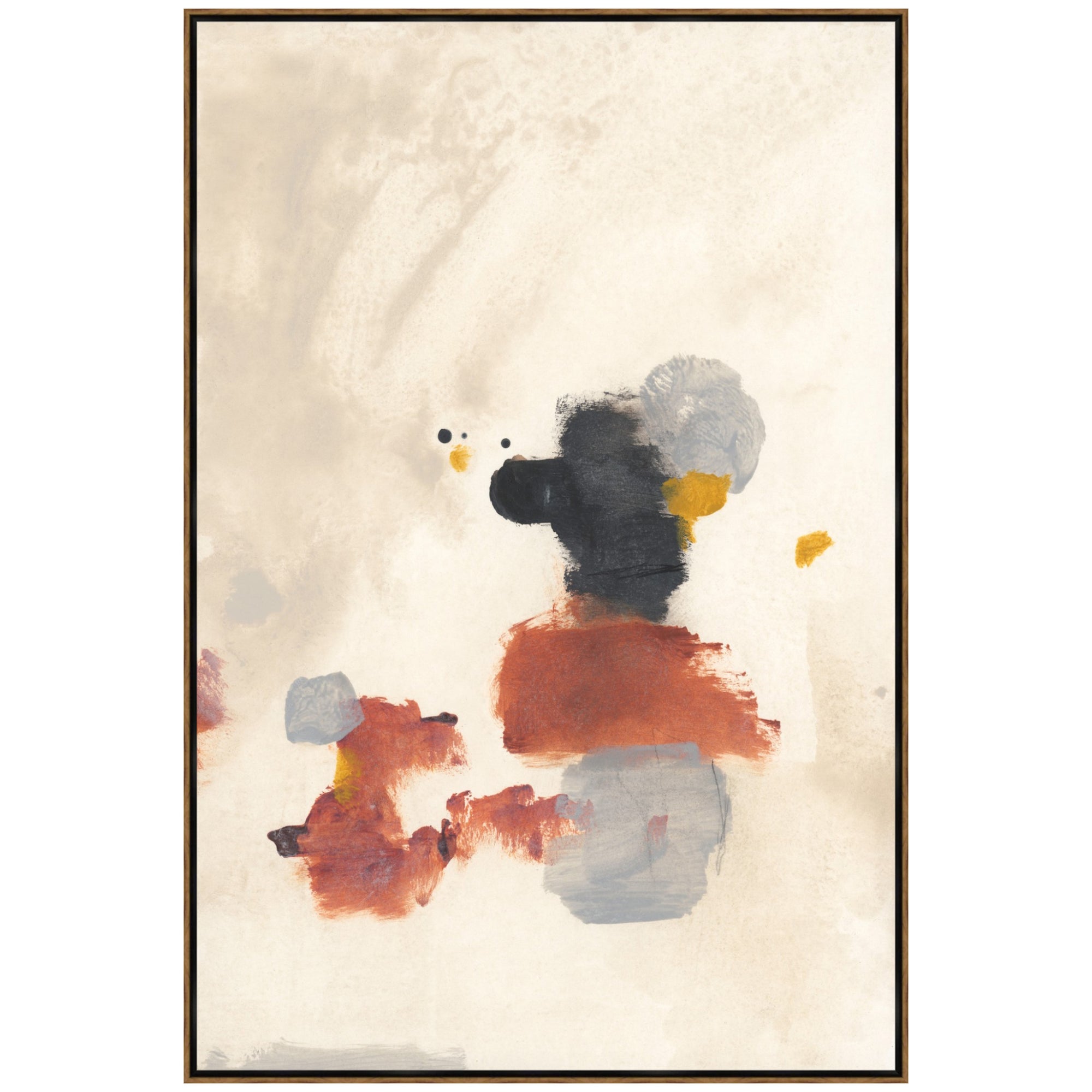 The Fragmented Memories IV Framed artwork by David Erickson is a compelling abstract piece that features organic shapes and expressive marks in a soft, bright palette. The composition uses a minimalist aesthetic to convey an intriguing sense of mood and form. This striking piece offers a sophisticated and artistic presence, lending an element of modern elegance and intrigue to any space.