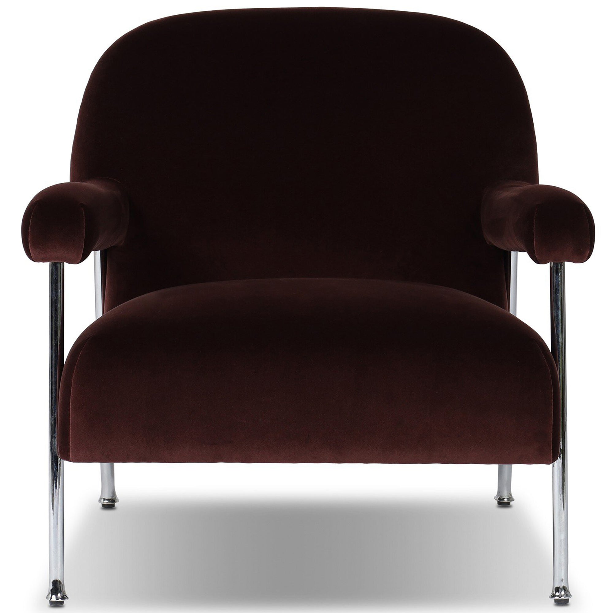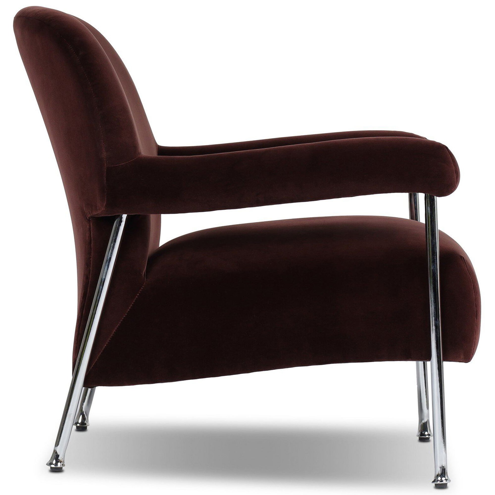 The Gabriette Chair is a curated seat offering soft comfort and an irresistible color pop. Cotton blend performance fabric forms the bulk of this chair, which is crafted with a slim yet strong iron frame finished in chrome. The design is grounded by S-spring seat construction and leg levelers for stability.
