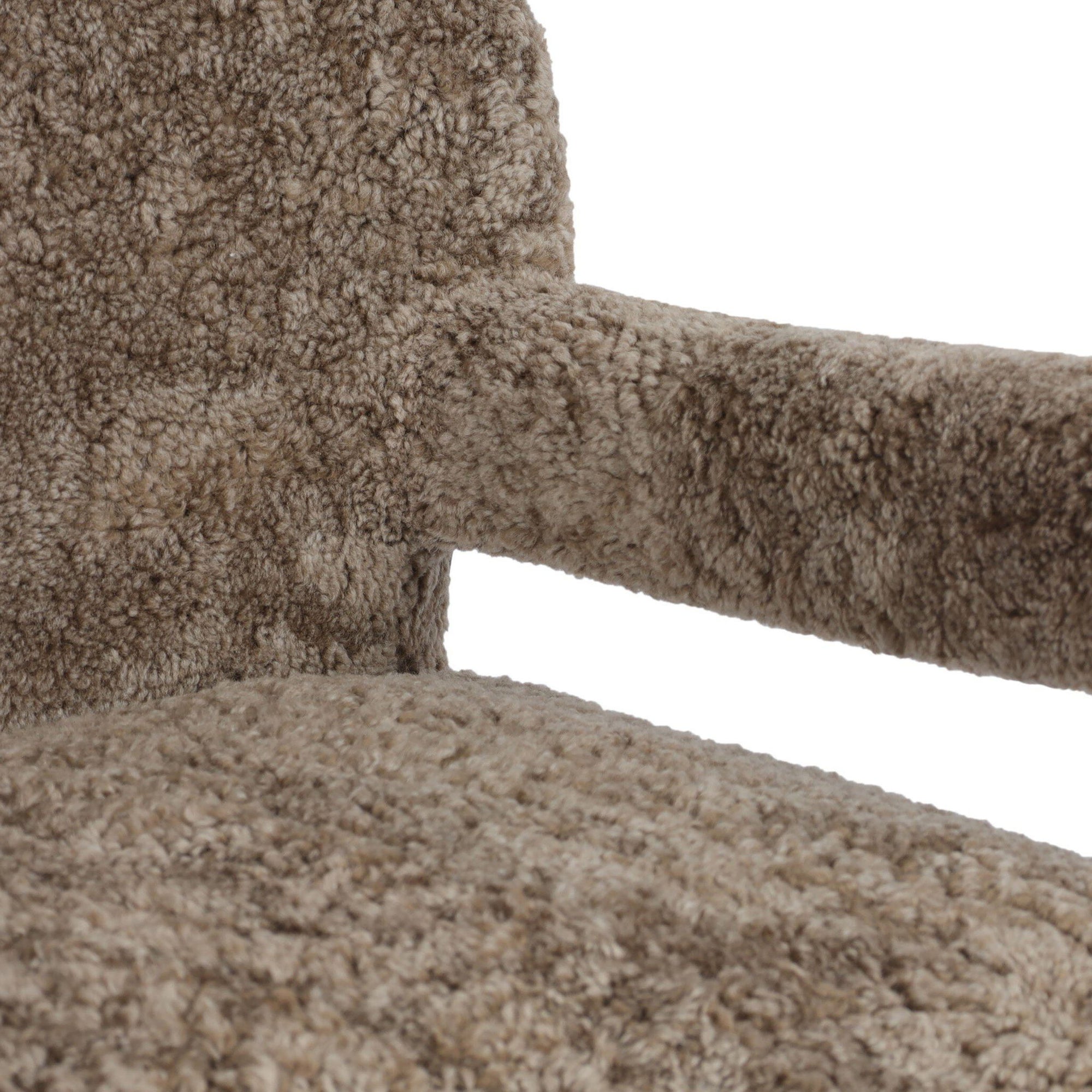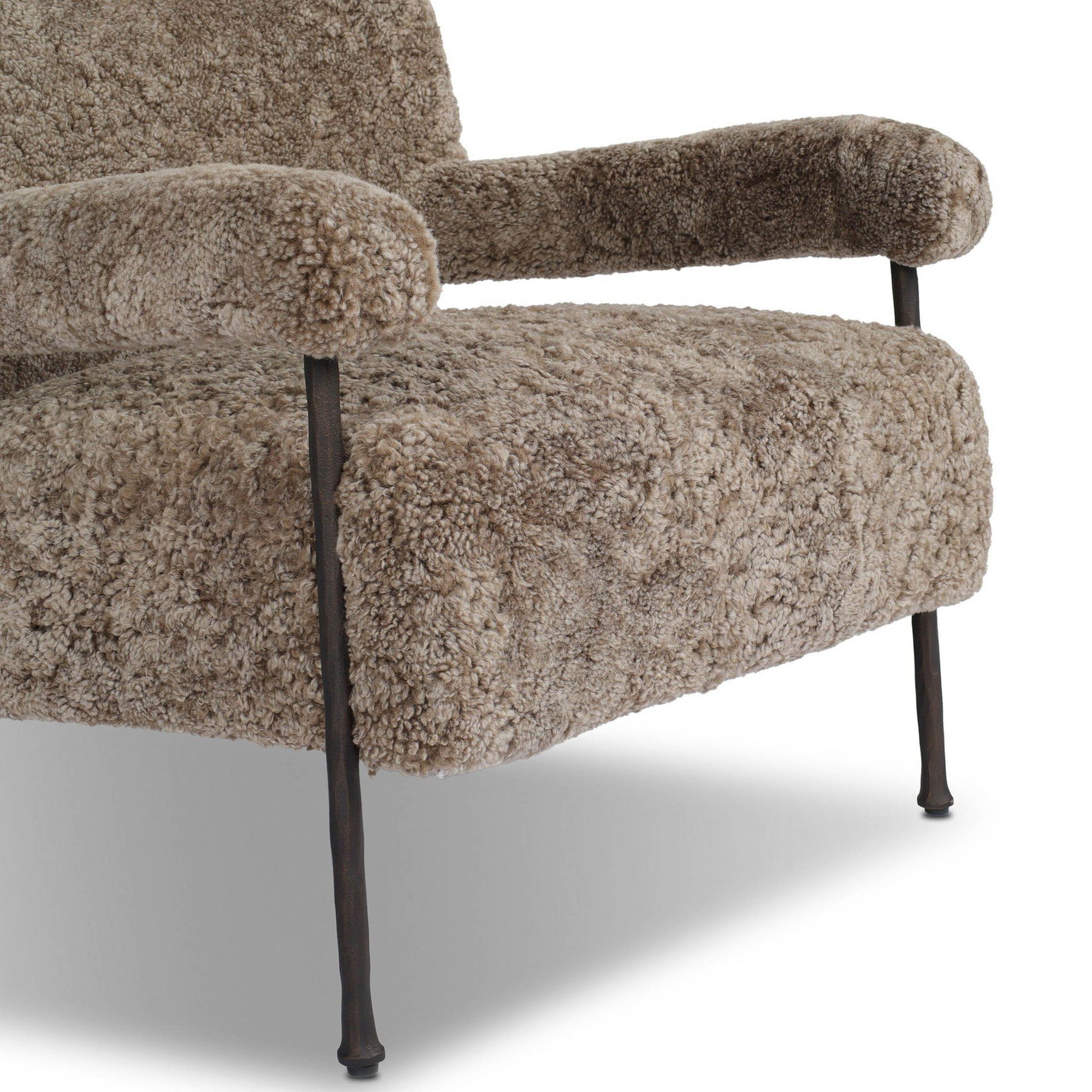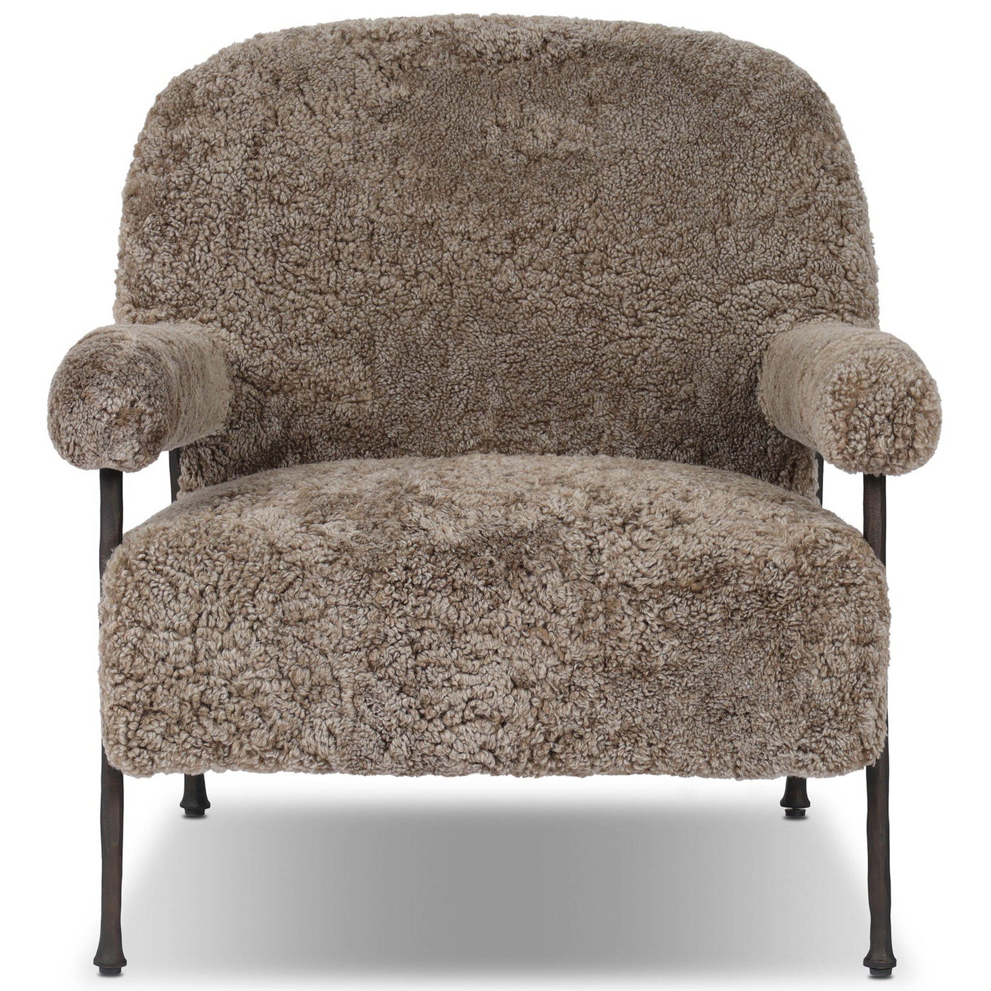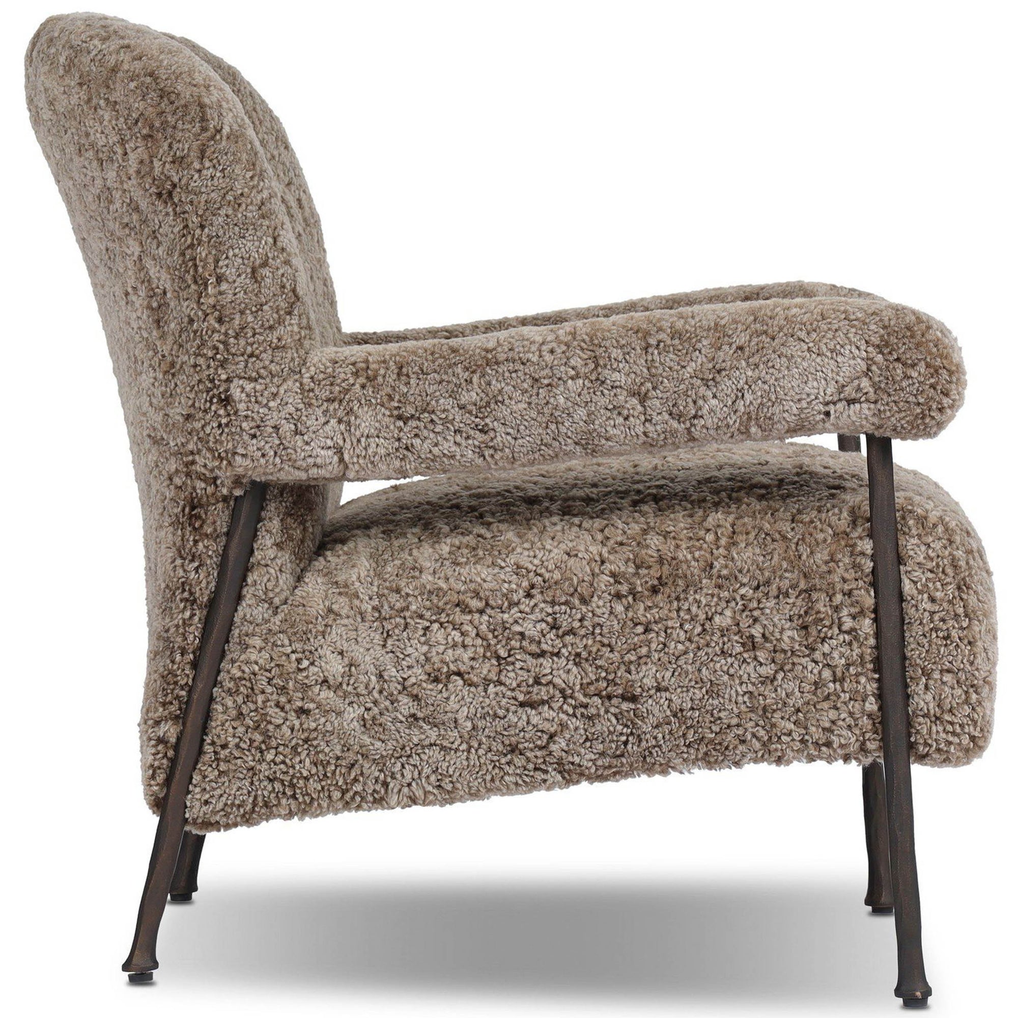 The Gabriette Chair is a curated seat featuring irresistible shearling and sleek metal framing. An all-natural shearling blend fashions the bulk of this chair, which is crafted with a slim yet strong iron frame. The design is grounded by S-spring seat construction and leg levelers, offering a unique and comfortable seating option.