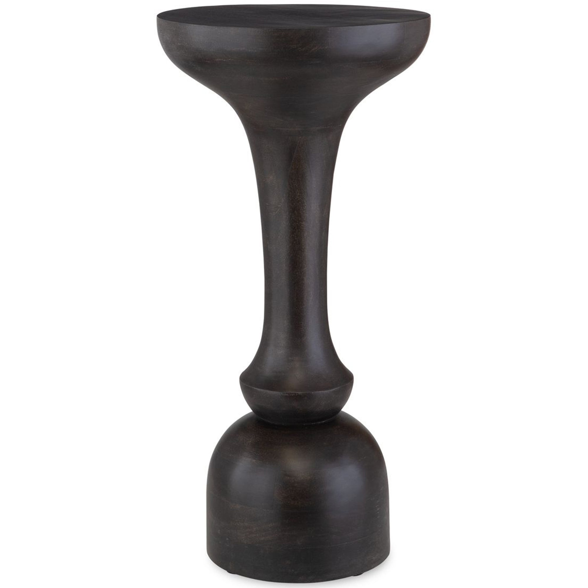 The Gambit Accent Table brings elegant, distinctive style to any space with its unique, chess-inspired silhouette. Crafted from solid mango wood, the table features a rich black finish that highlights its smooth, sculpted form. The base showcases a flowing, hourglass shape, adding a sculptural quality to this functional accent piece.
