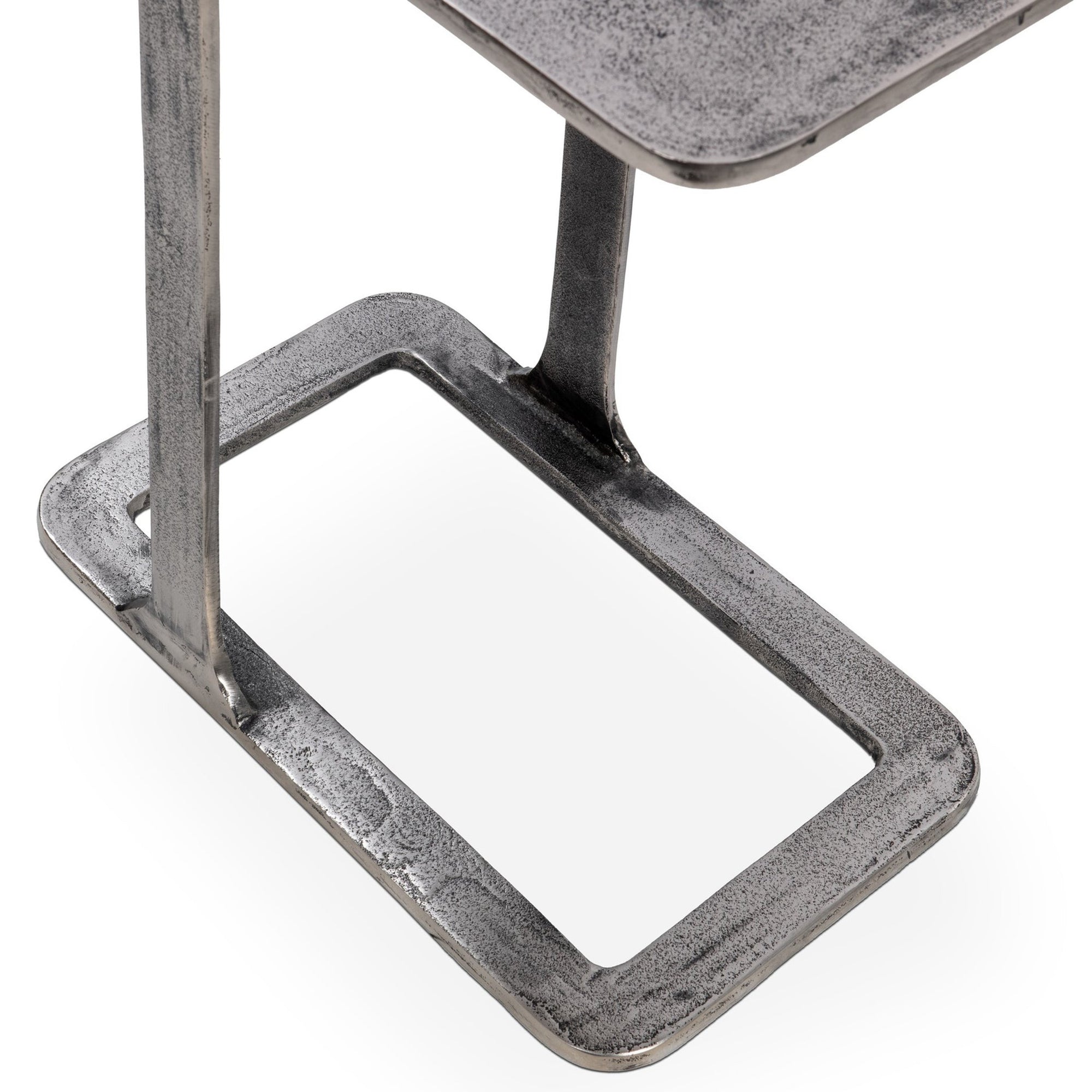 The Geanna Accent Table combines sleek modern style with practical versatility. Crafted from cast aluminum, this C-shaped end table is perfect for sliding over sofas or chairs, functioning as a convenient side table or laptop stand. With its slim profile and metallic finish, it adds a sophisticated industrial edge to living rooms, bedrooms, or compact spaces, offering both beauty and everyday functionality.