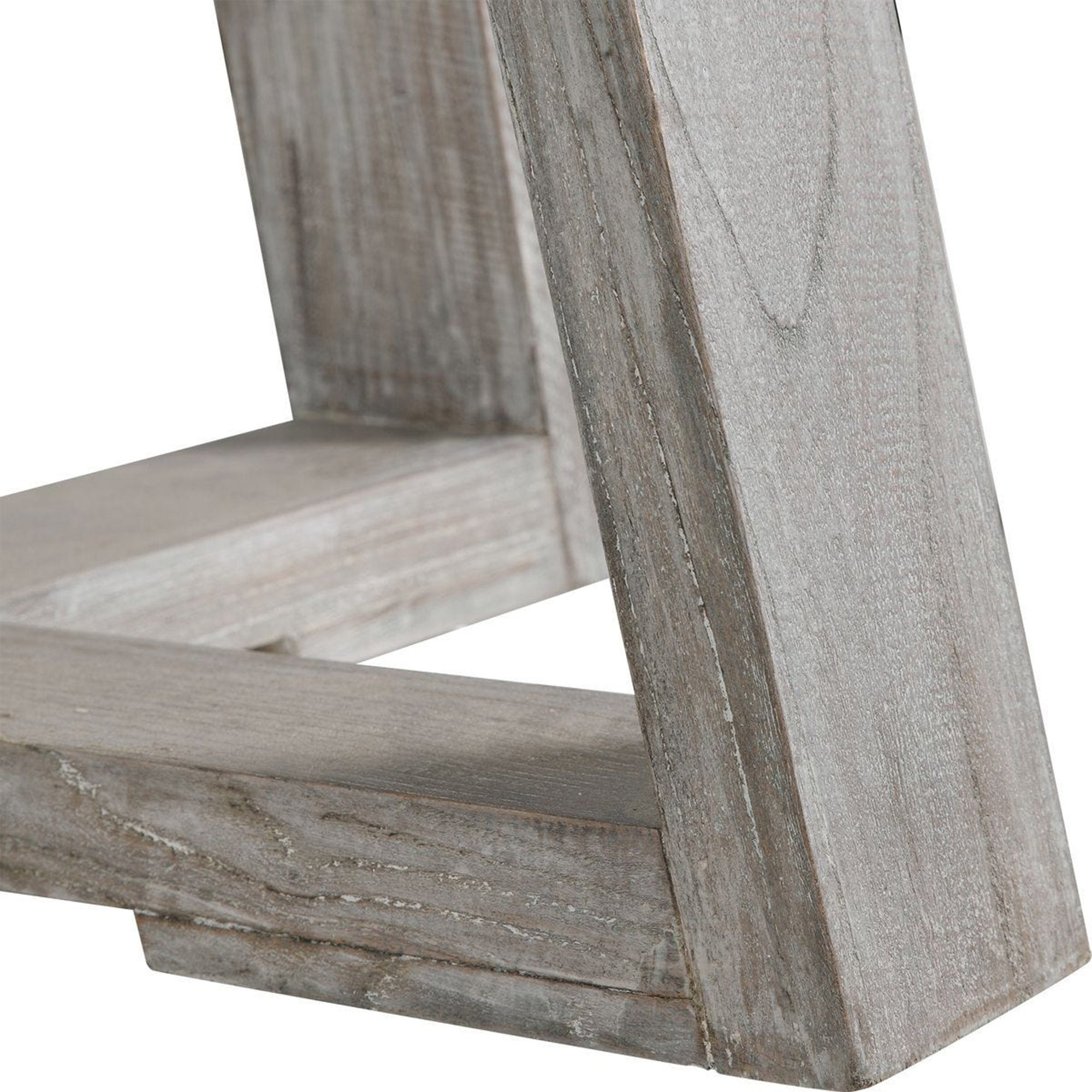 The Gidran Small Dining Table features clean casual styling with a richly grained oak veneer inlaid top. Finished in a soft gray with hints of brown undertones, the surface rests atop a sturdy elm wood trestle base. Because solid wood continues to move with temperature and humidity changes, cracks and uneven surfaces may develop over time, adding to the piece's authentic character.