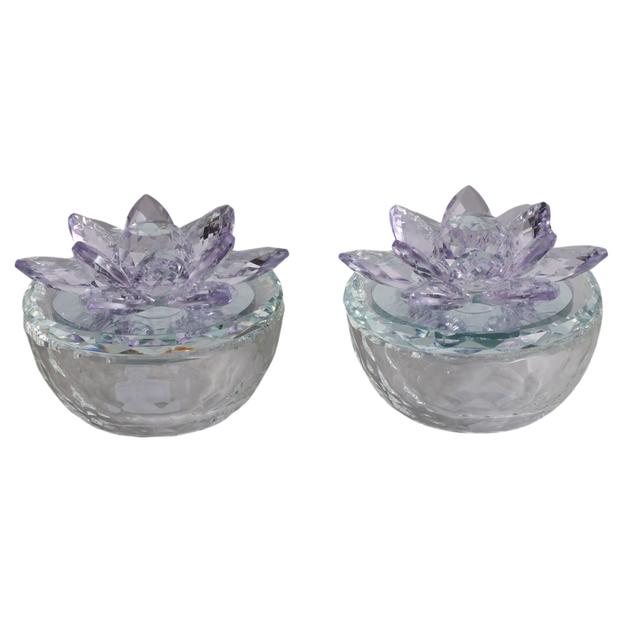 Glass Trinket Box, Purple Lotus, Set of 2