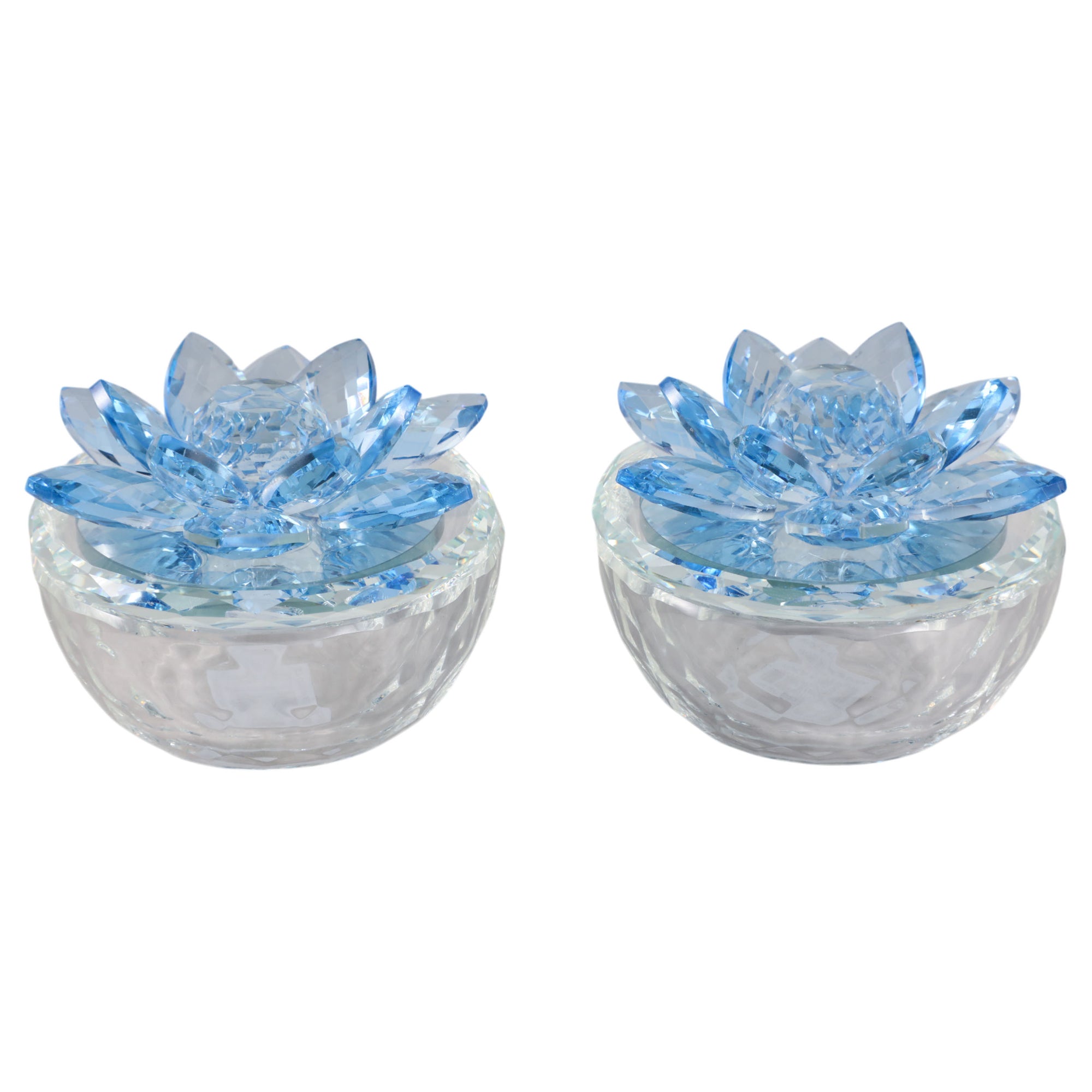 Glass Trinket Box, Royal Blue Lotus, Set of 2