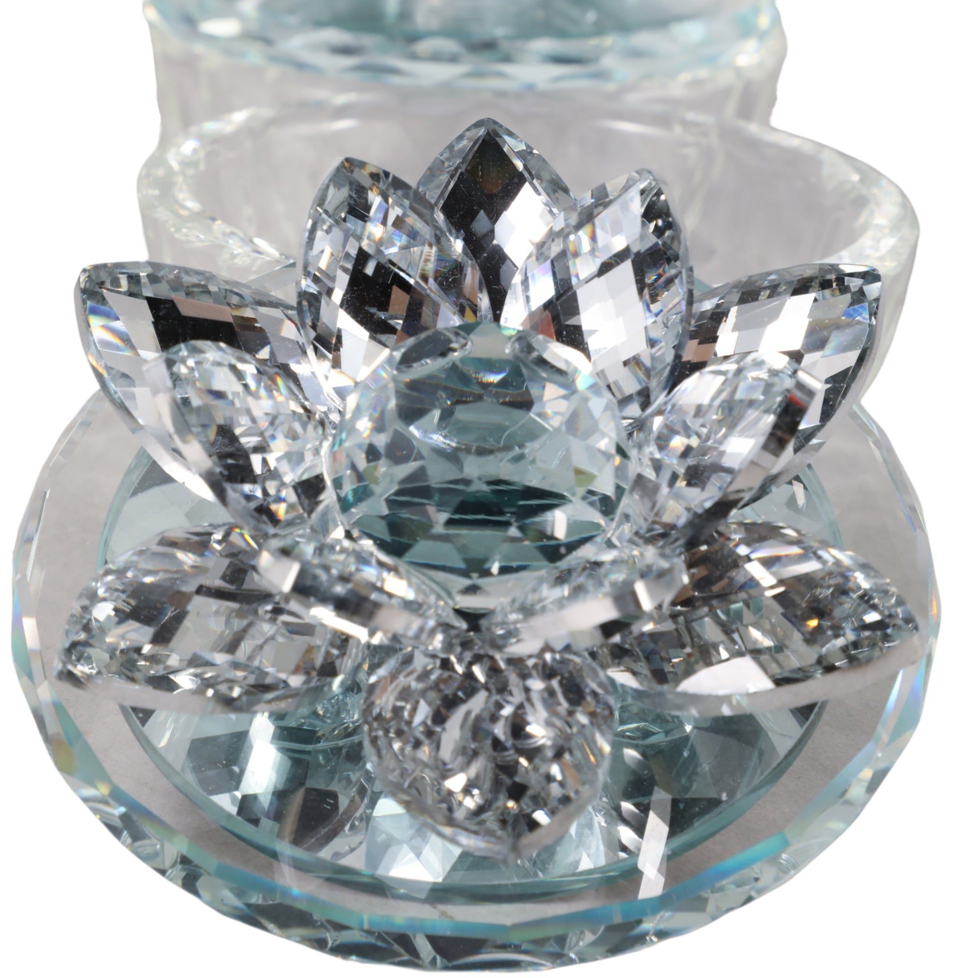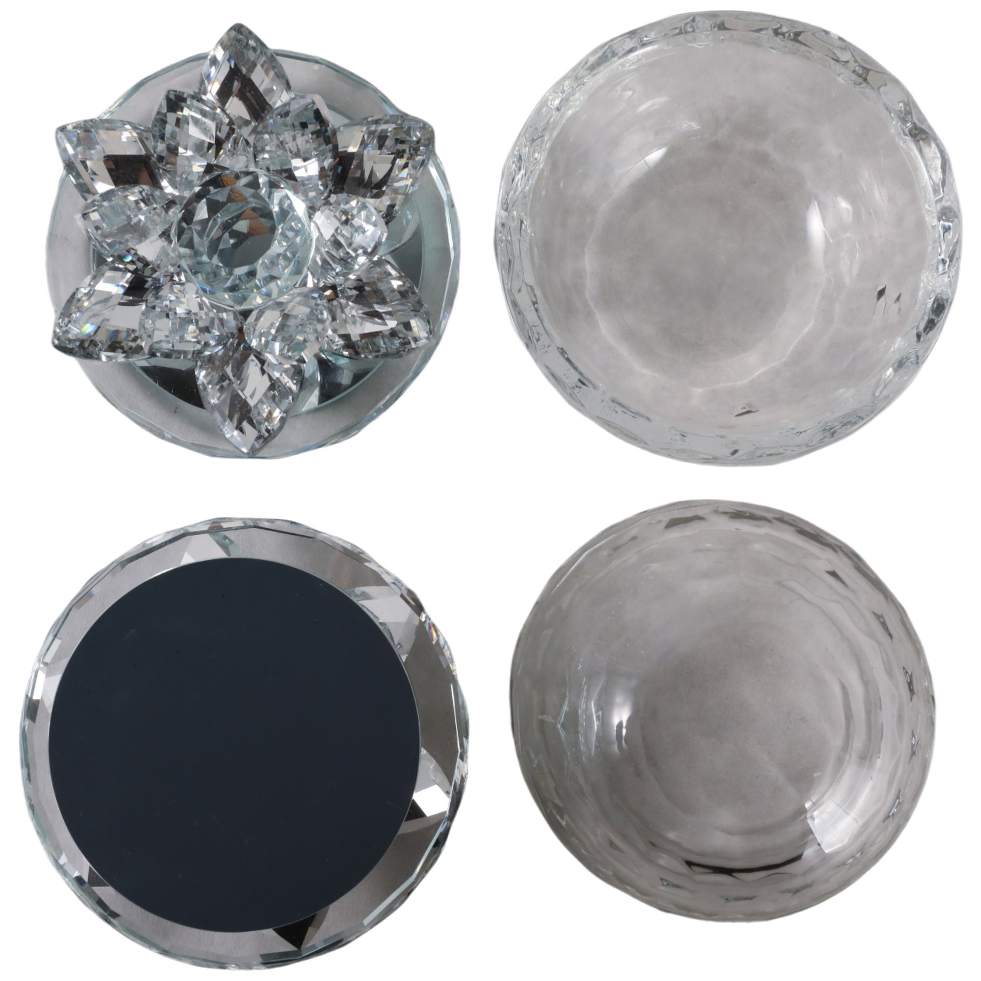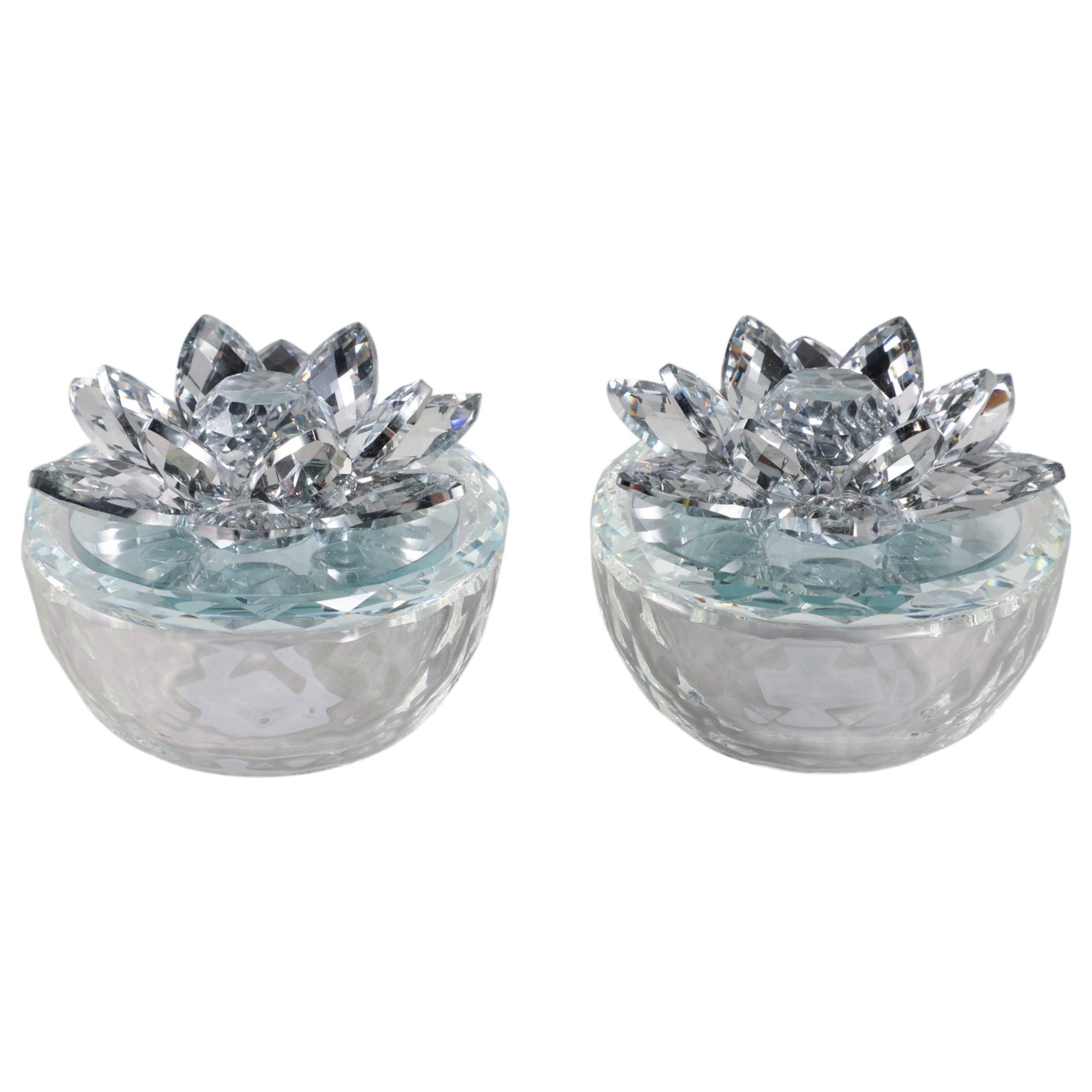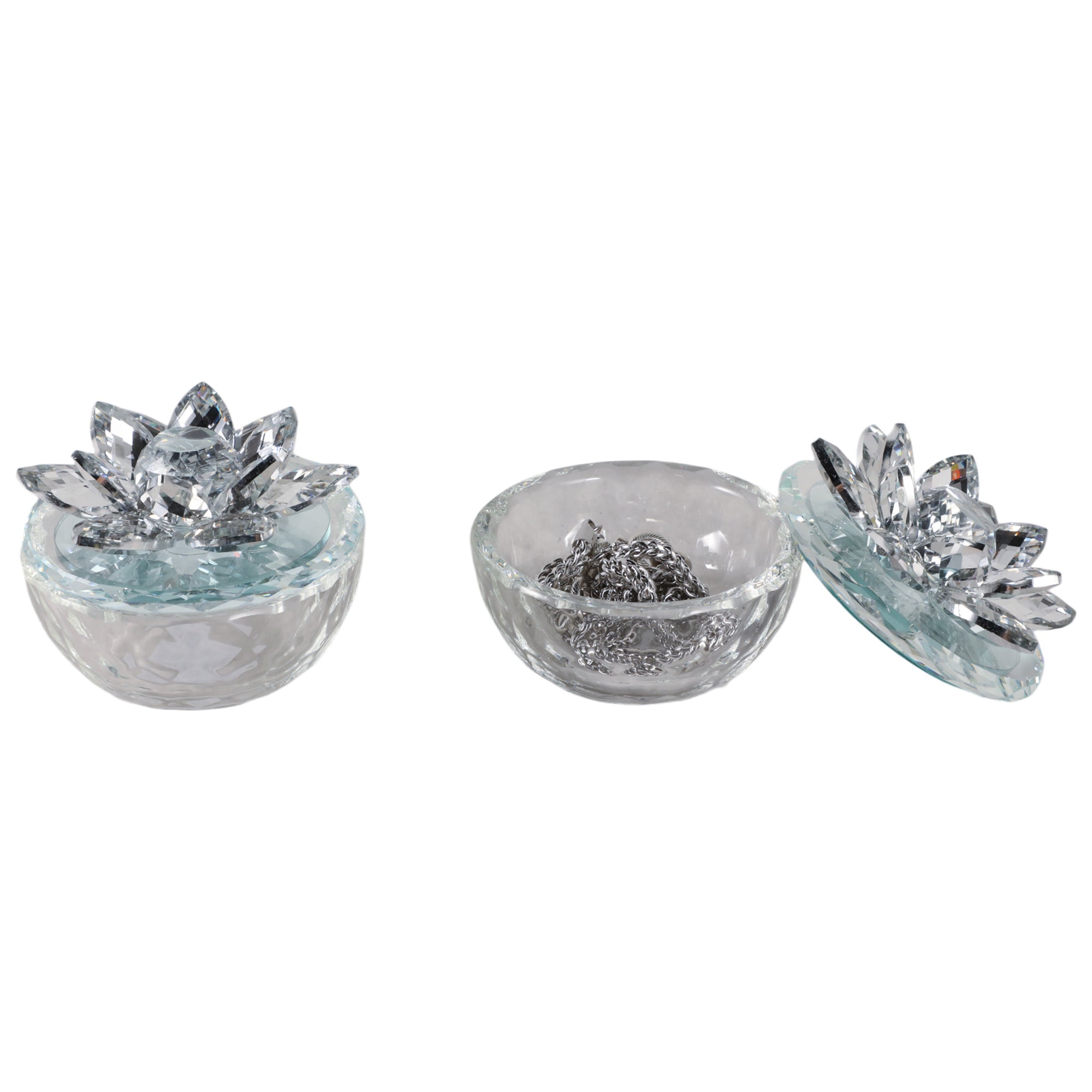 Glass Trinket Box, Silver Lotus, Set of 2