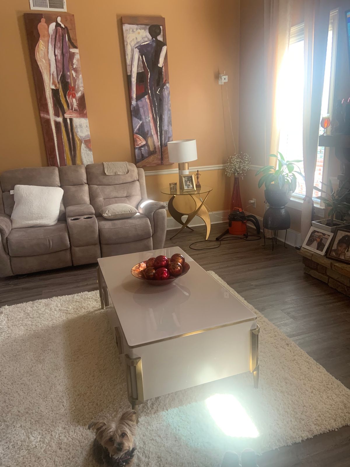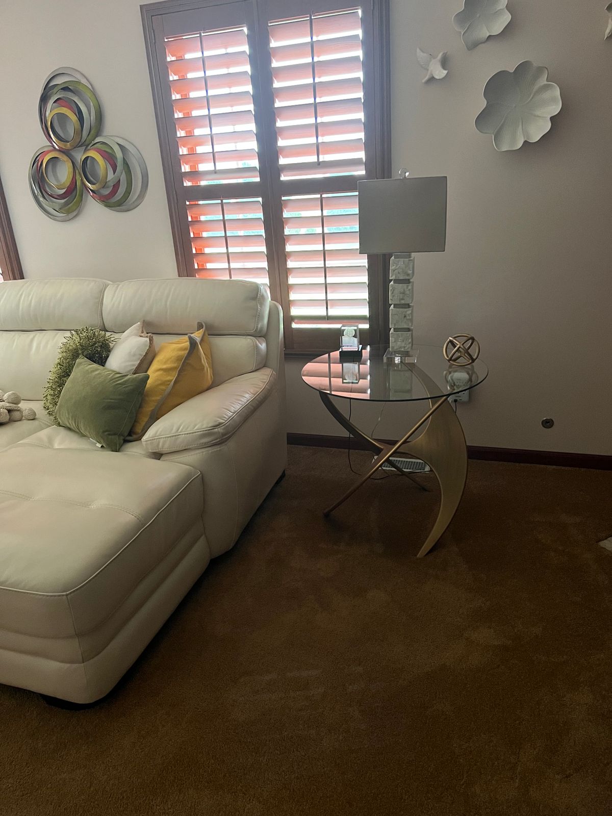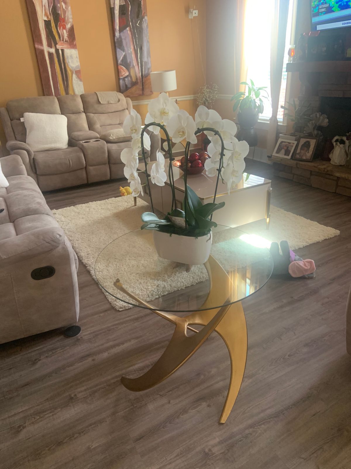 Unique, abstract glass top table. Adds a touch of class to any room. Well made high quality side table. You will not be disappointed.