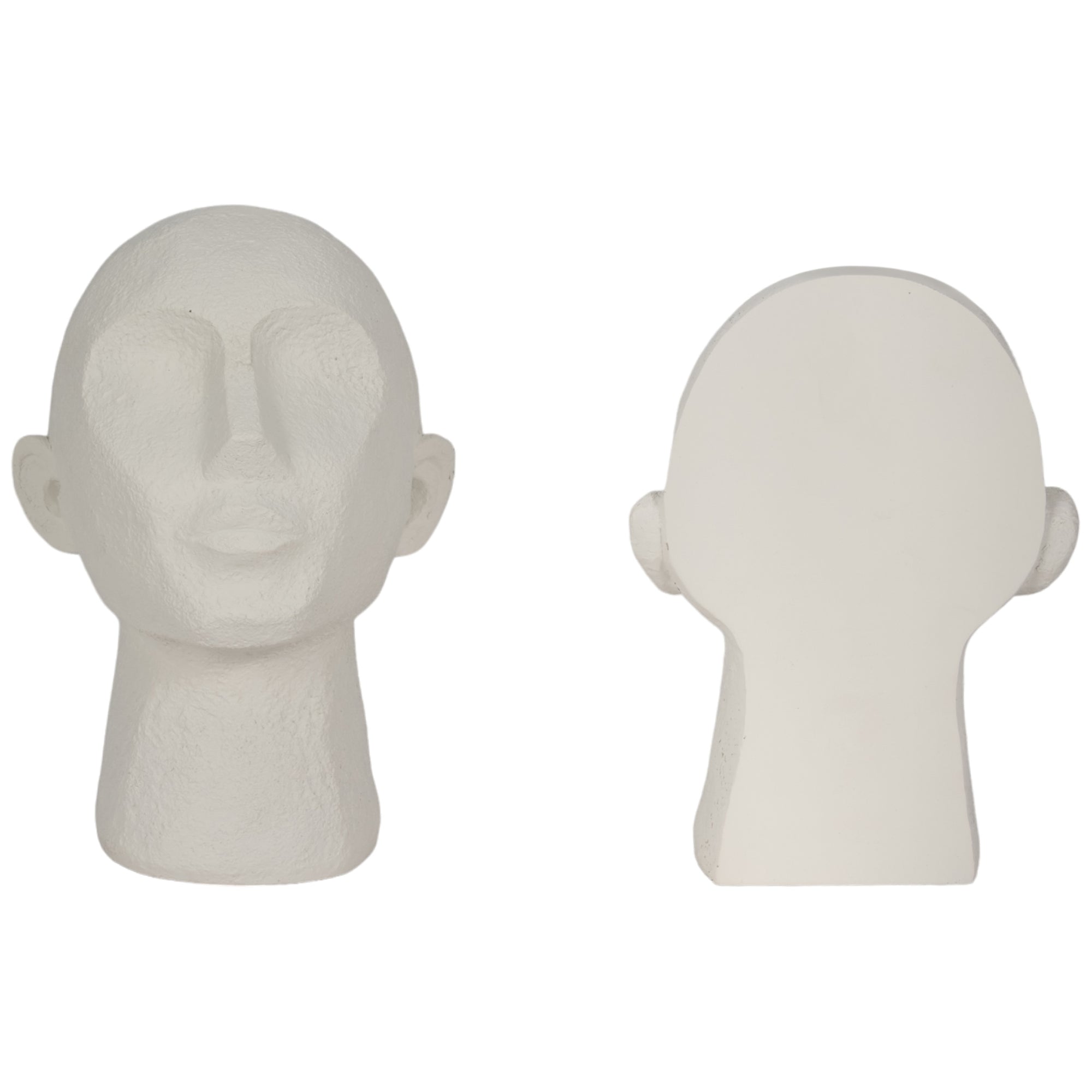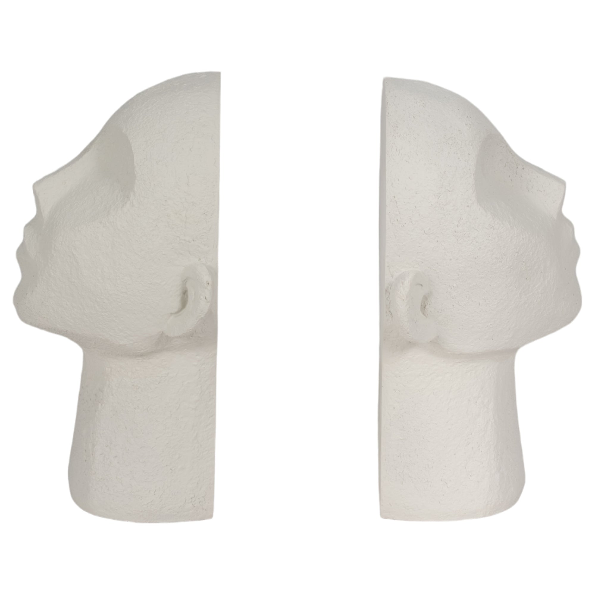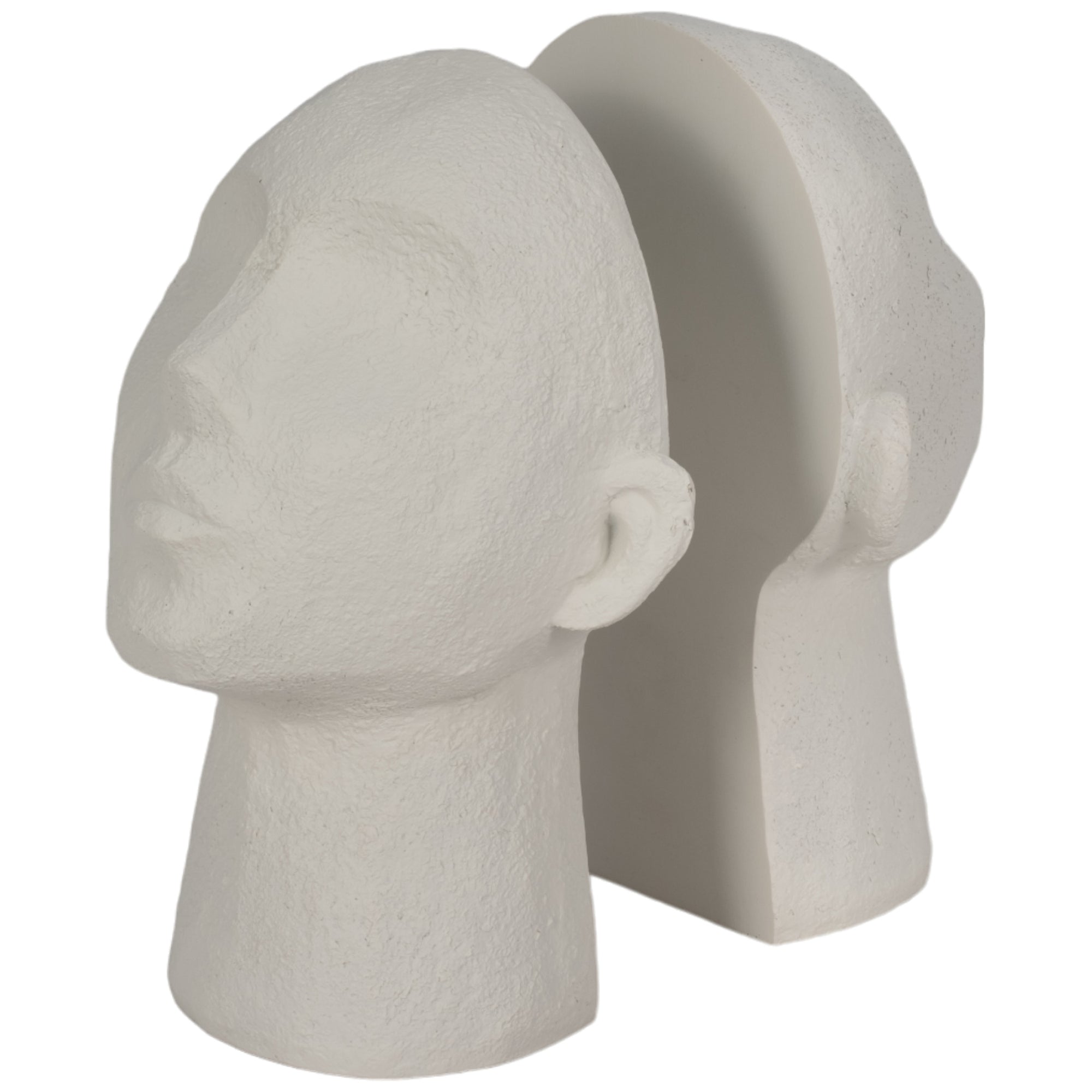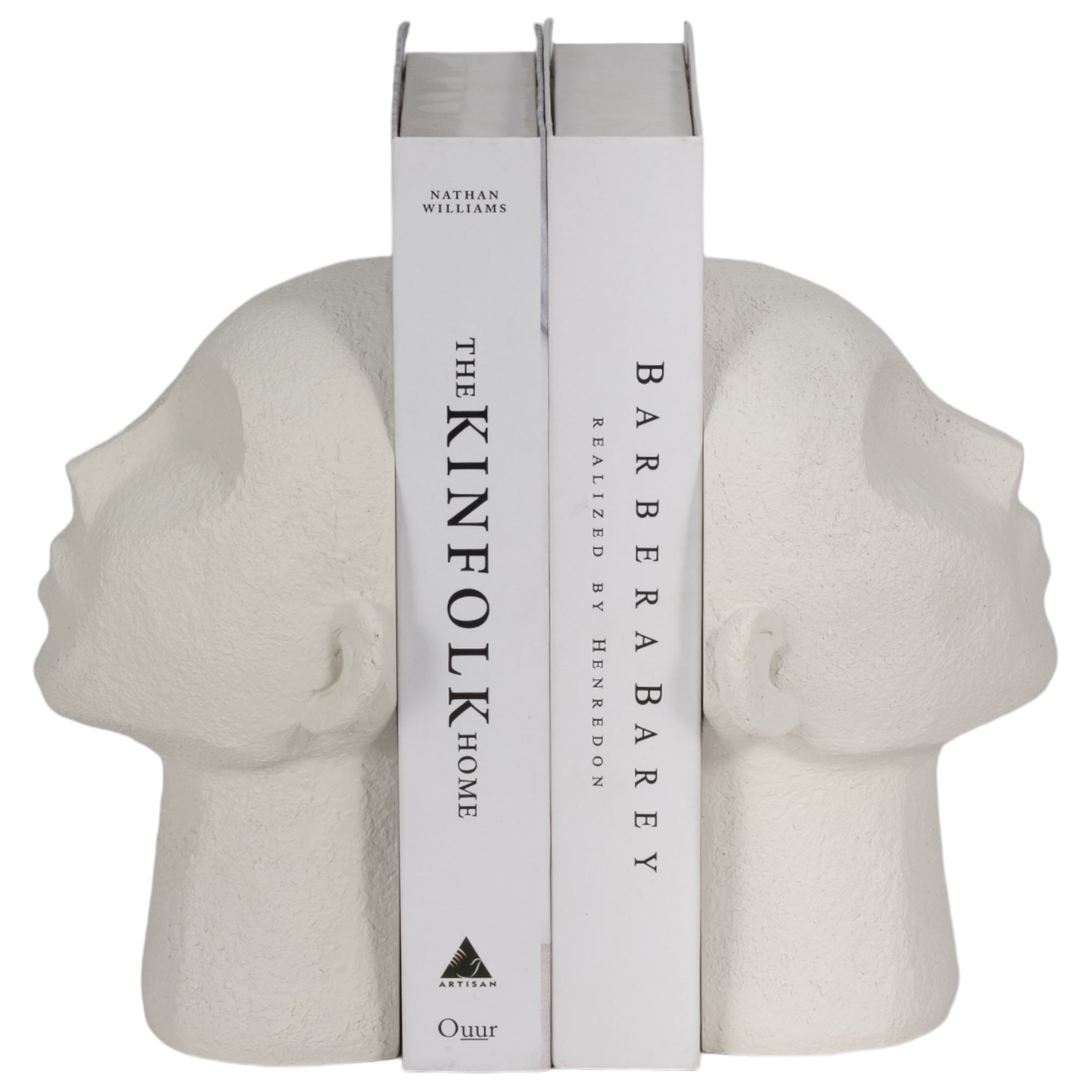 Sculptural and striking, the Heads Up Bookends bring an artistic edge to any bookshelf or desk. Designed as mirrored profiles, this modern duo showcases bold, minimalist forms that double as functional supports and statement-worthy decor. Crafted in a clean white finish with subtle texture, they effortlessly balance practicality with sculptural beauty. Perfect for displaying your favorite reads or adding a touch of gallery-inspired style, these bookends are as thought-provoking as they are functional.