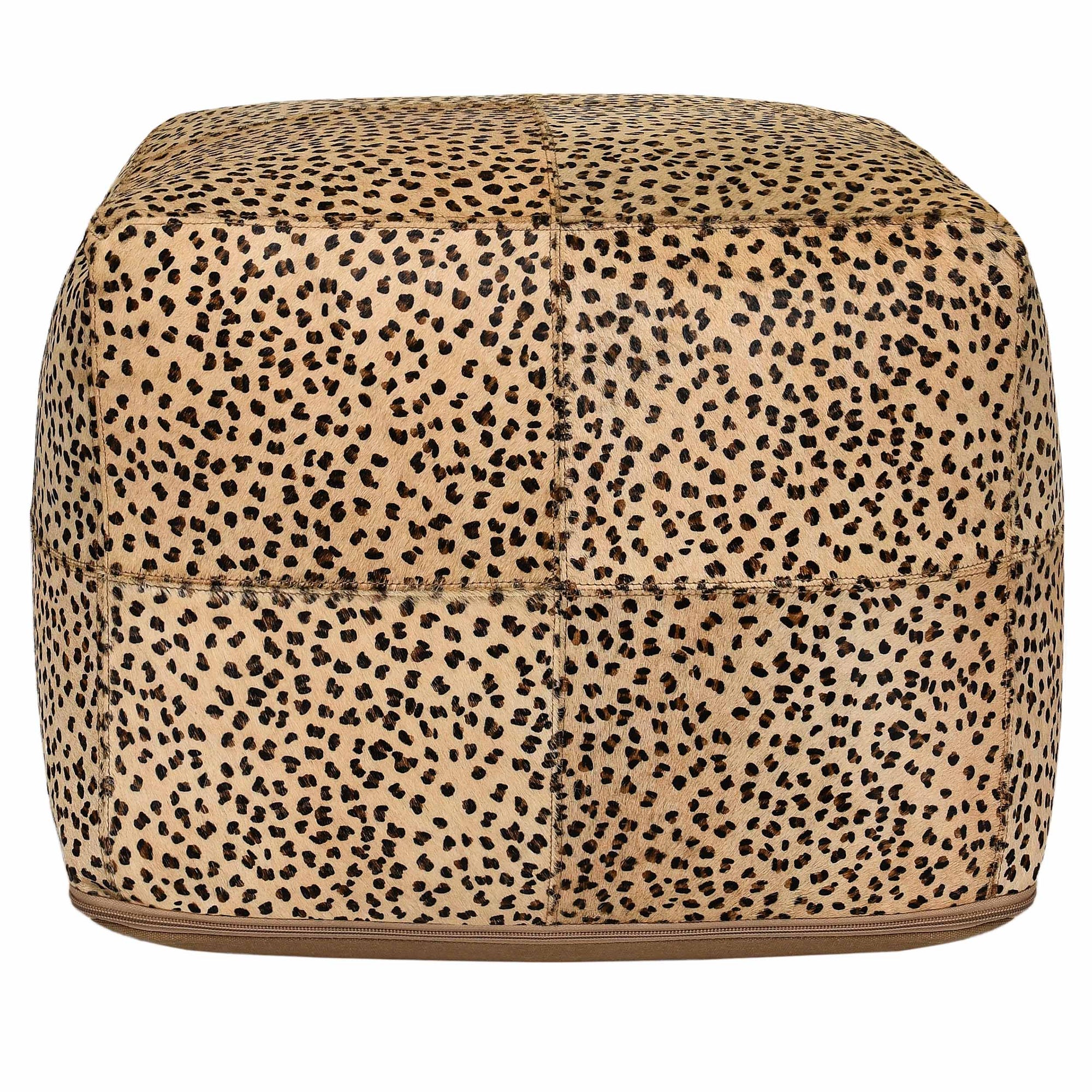 The Hide Pouf balances chic style with versatile function, adapting to any setting as an ottoman, table, or convenient extra seating. Lightweight polystyrene beads make this piece easy to move, while the pieced hide design and leopard pattern complement any decor.