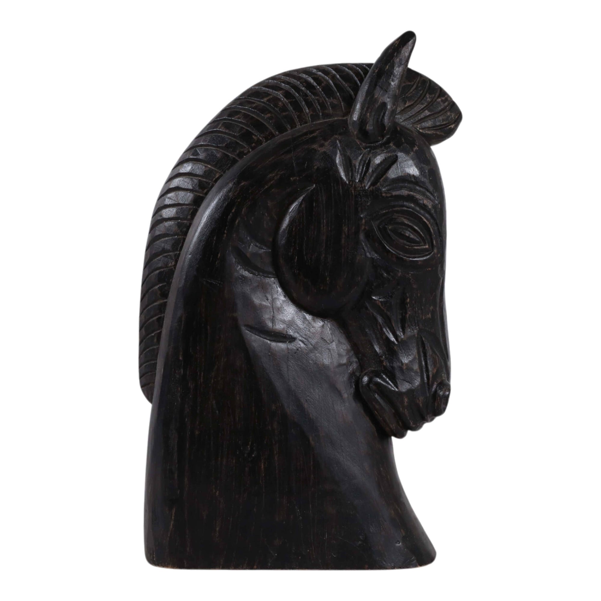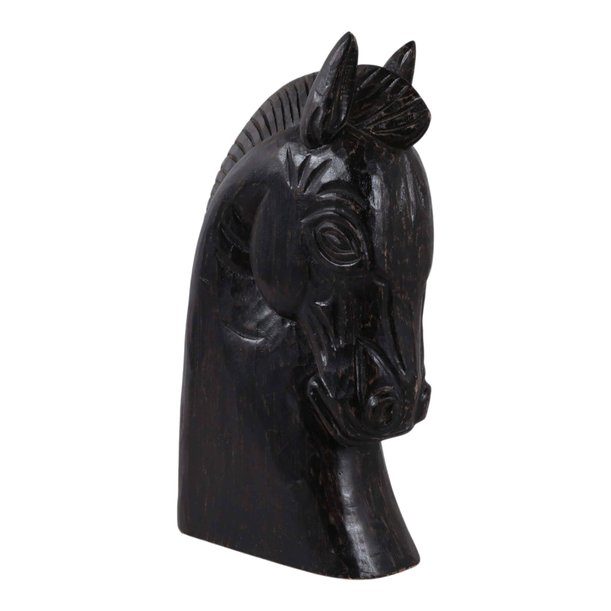 Add a touch of equestrian elegance to your décor with this handcrafted Horse Head Sculpture. Expertly carved from durable mango wood, its sleek black finish highlights the intricate details and natural grain of the material. Perfect as a statement piece for a console, shelf, or mantel, this sculpture blends rustic charm with contemporary style. Its timeless design brings both sophistication and character to living rooms, offices, or bedrooms, making it a versatile addition to any interior.