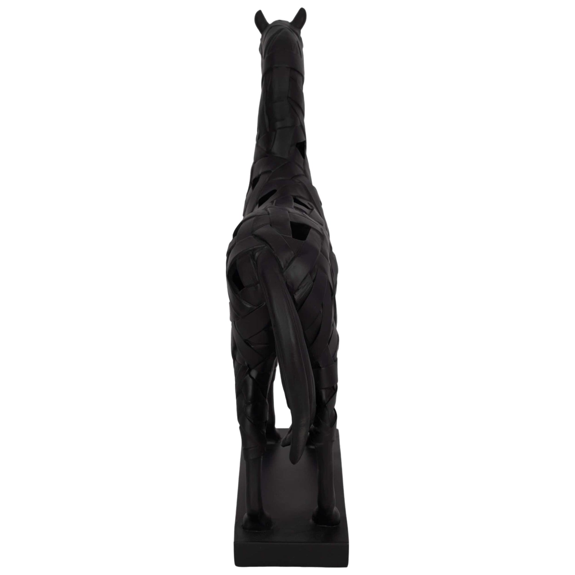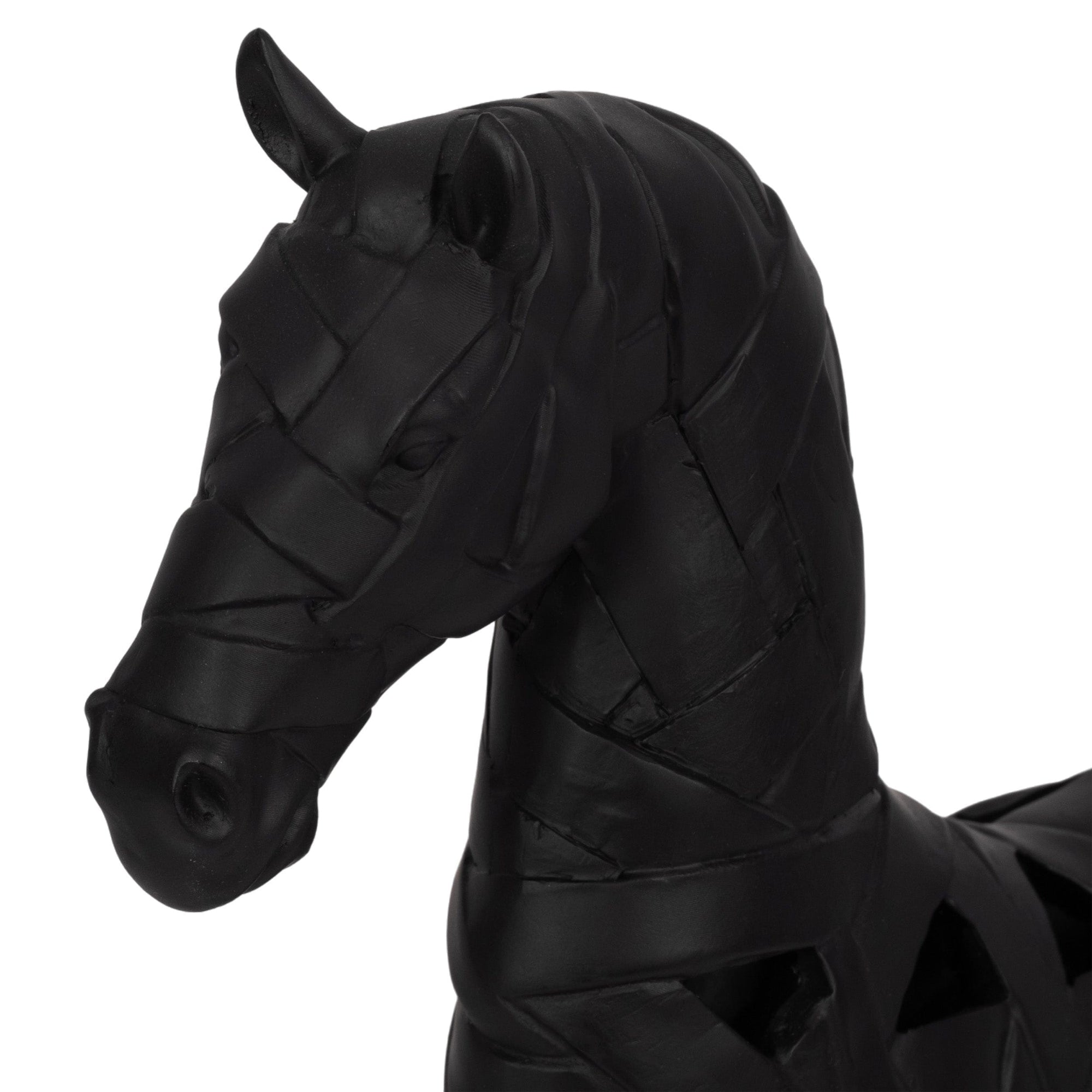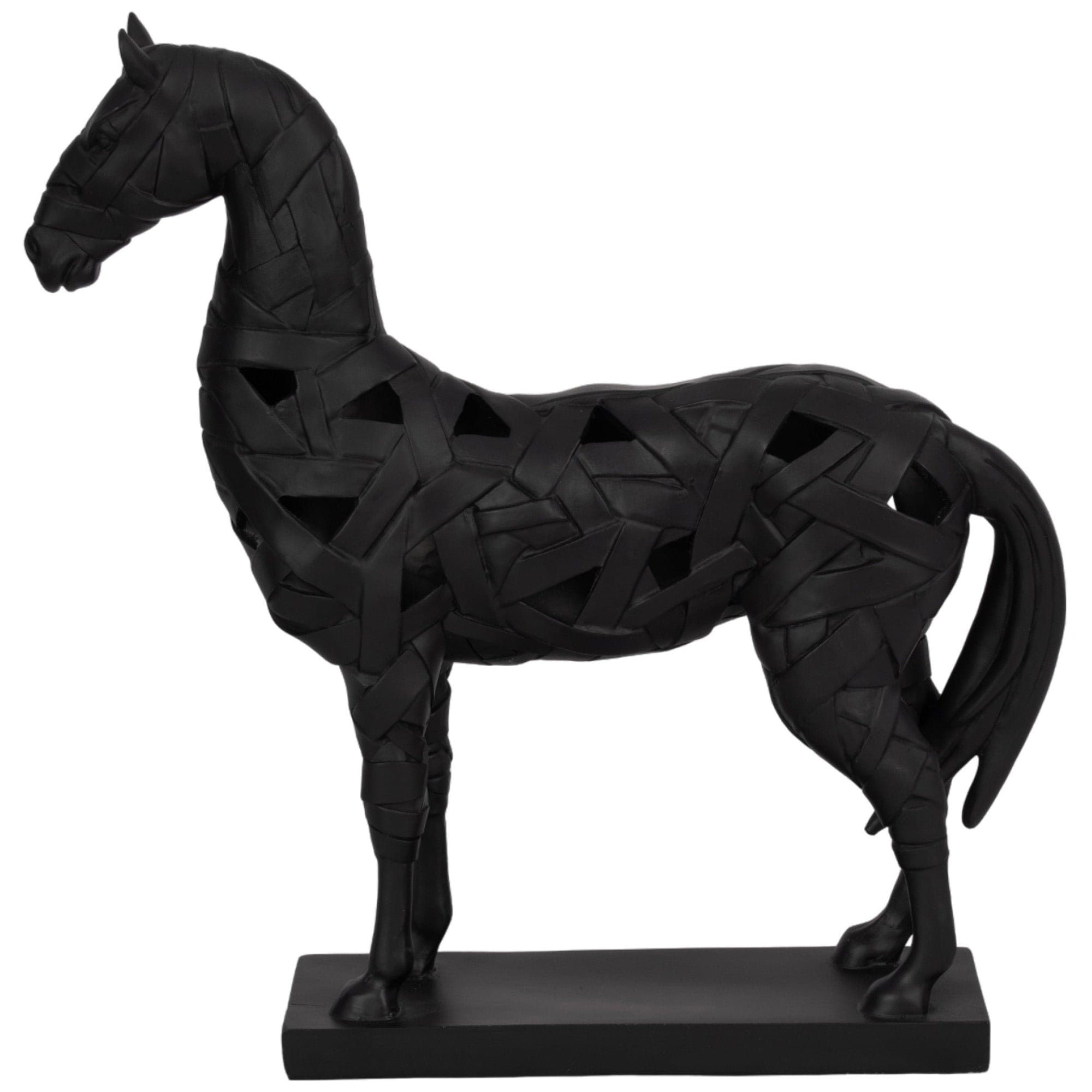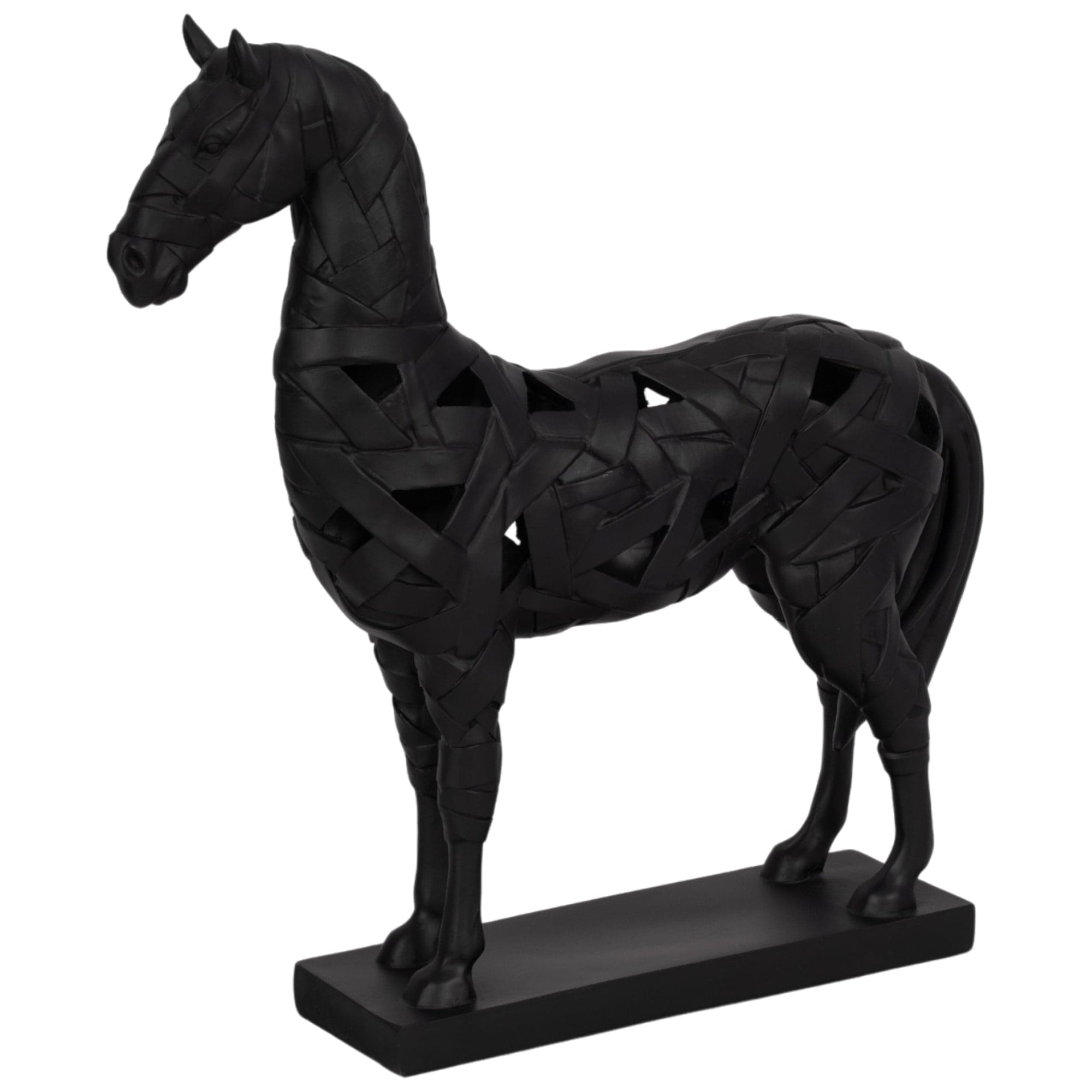 Enhance your décor with the Horse Sculpture on Base, a striking black resin piece that combines artistry and modern design. Featuring a bold woven pattern, this sculpture captures the dynamic energy and elegance of a horse in motion. Crafted from durable resin and polyresin, it offers lasting quality while serving as a captivating focal point. Perfect for display on shelves, consoles, or tabletops, this piece adds texture, sophistication, and a contemporary touch to any living space, office, or entryway.
