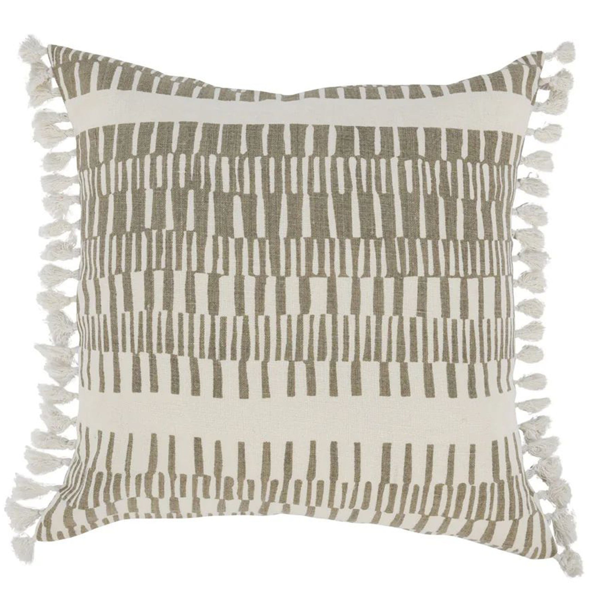 Inspired by a handmade block print design, the Jagger Pillow features a graphic print blended with handmade tassels that tells a story of craftsmanship and history. A soft feather and down blend insert gives this pillow a lavishly supportive feel, making it as comfortable as it is beautiful.