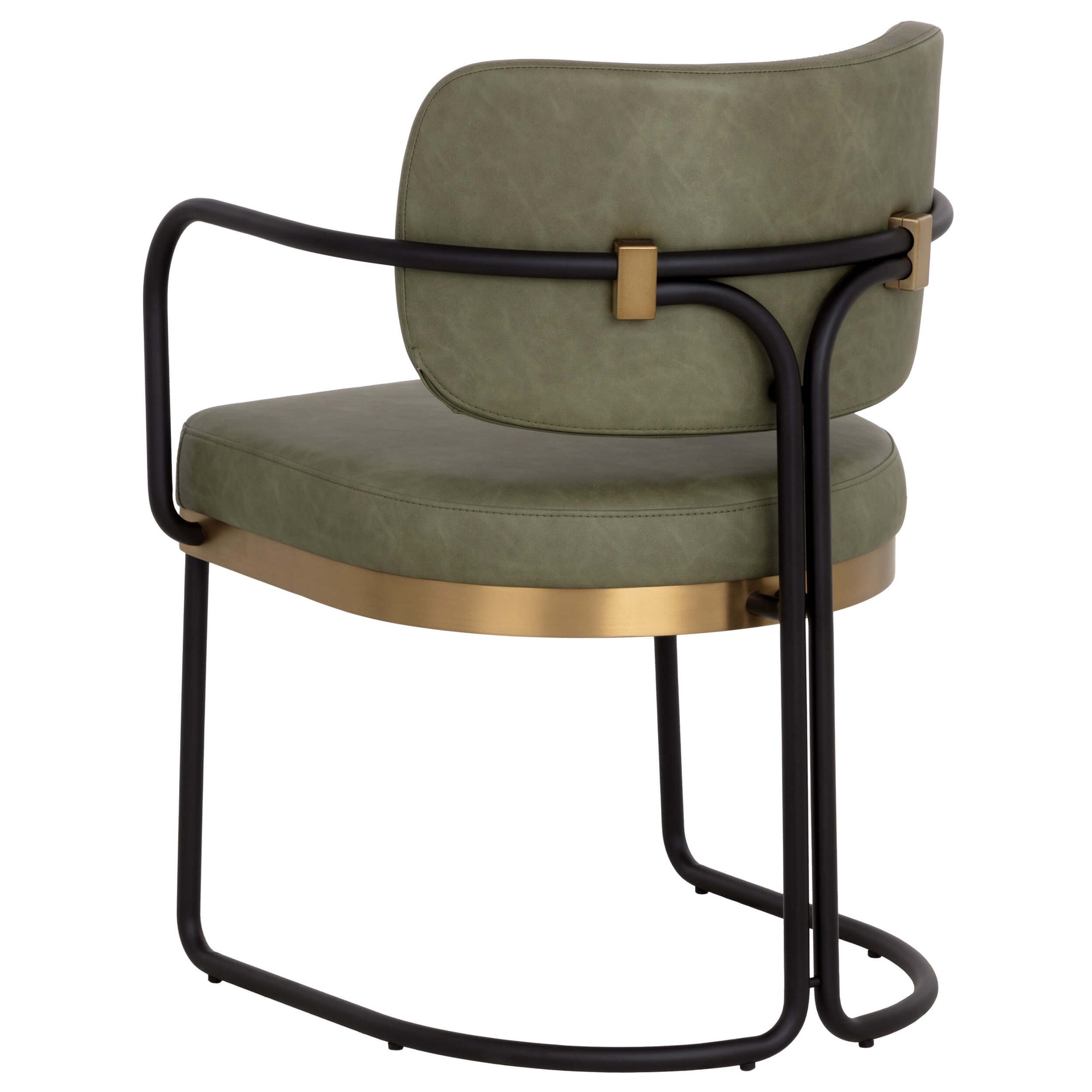 The Jalen Dining Armchair combines sculptural elegance with everyday comfort. Its free-flowing curves and gold stainless steel accents create a refined silhouette that draws the eye from every angle. Crafted from durable powder-coated iron, the frame ensures lasting stability, while the smooth faux leather upholstery offers a supportive and inviting seat. Designed to impress in both residential and commercial spaces, the Jalen Dining Armchair adds a touch of modern sophistication to any dining setting.