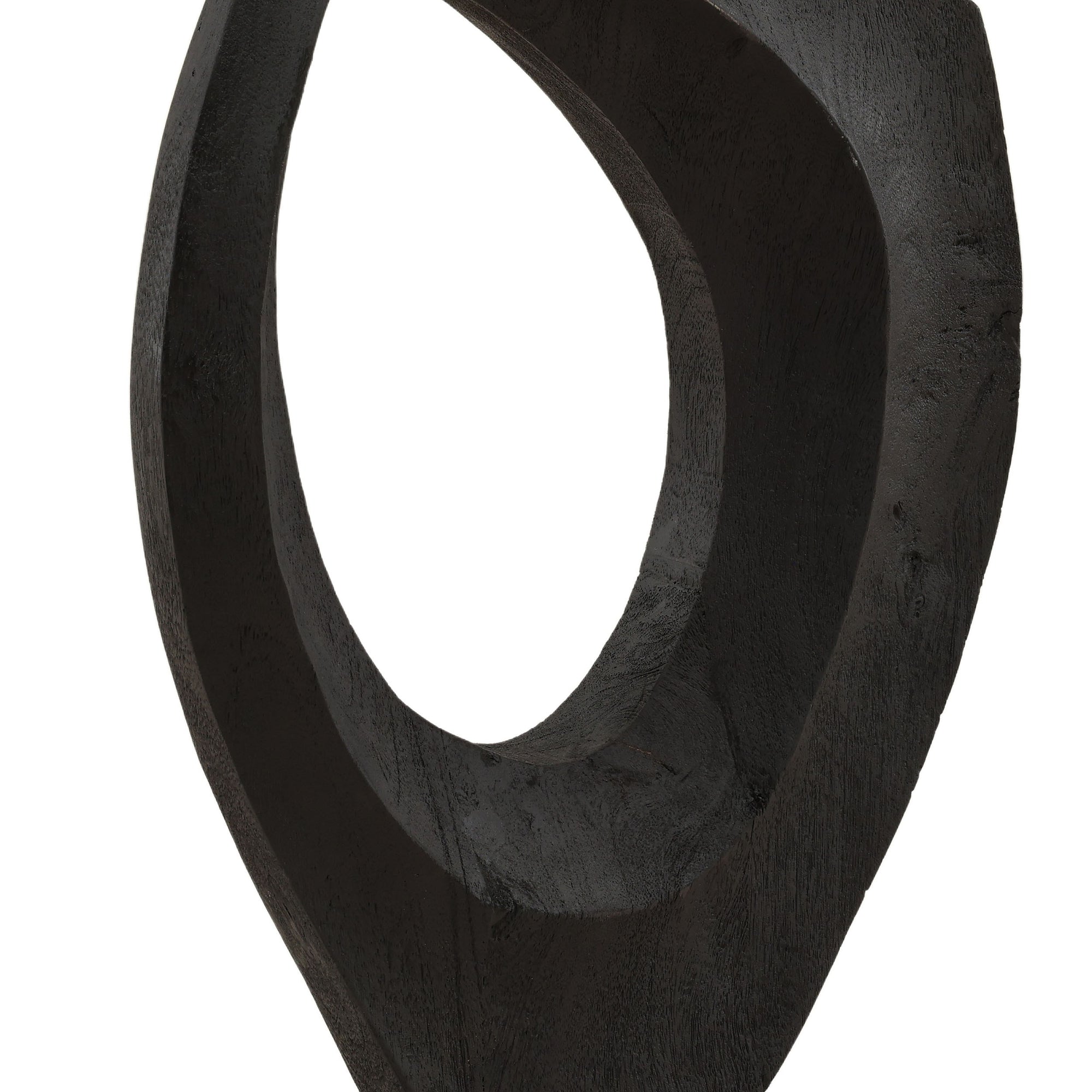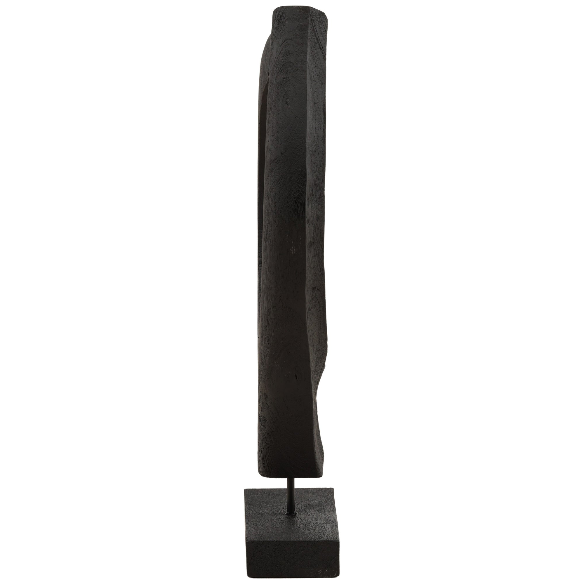 The Jourdain Sculpture is a modern, artistic piece that adds a bold accent to any room. Carved from solid mango wood and finished in a striking black, its fluid, abstract shape creates a strong visual statement. Perfect for a mantelpiece, console table, or bookshelf, this sculpture's minimalist design and dark finish offer a sophisticated contrast in any decor scheme. The Jourdain Sculpture is a captivating object that brings a touch of contemporary elegance to your home.