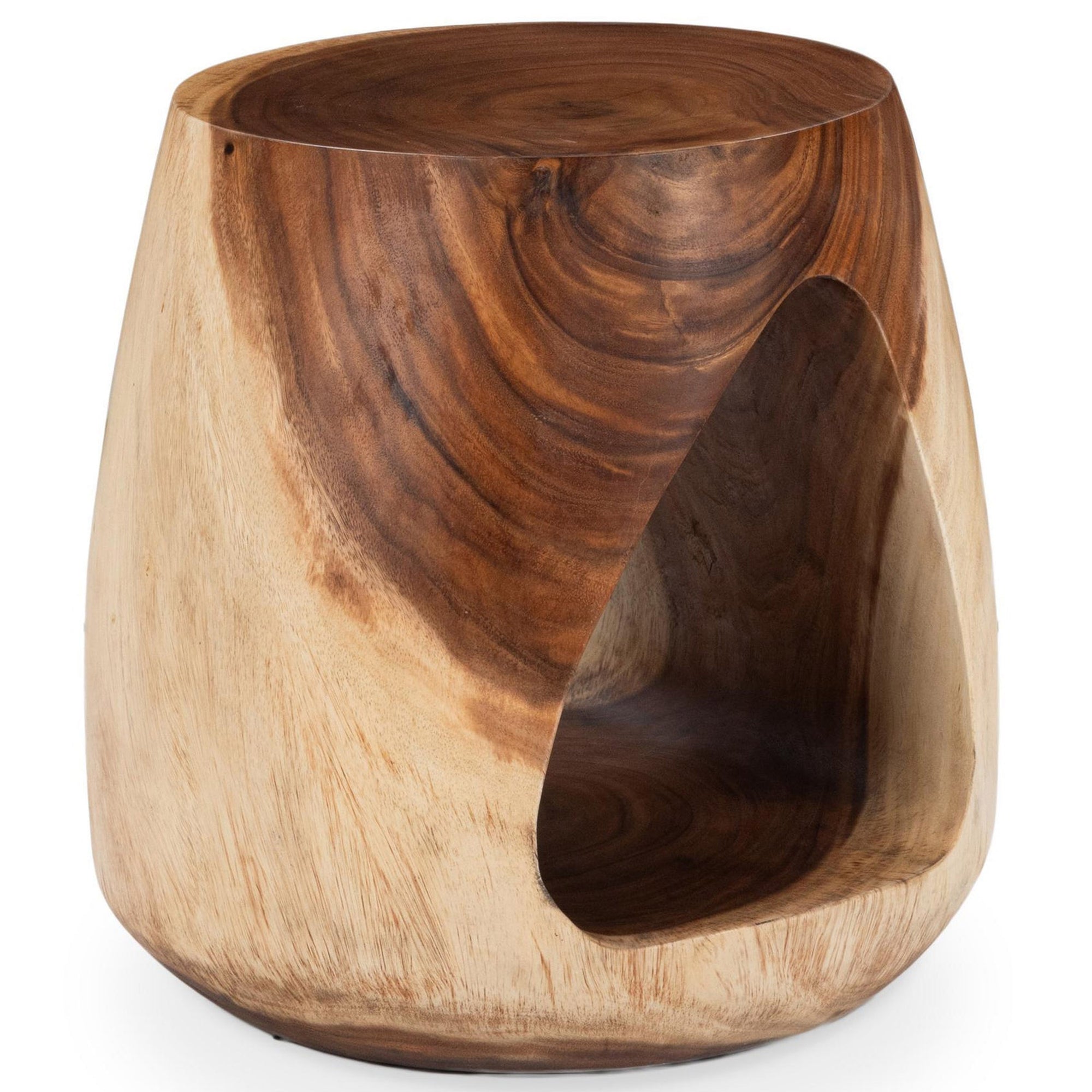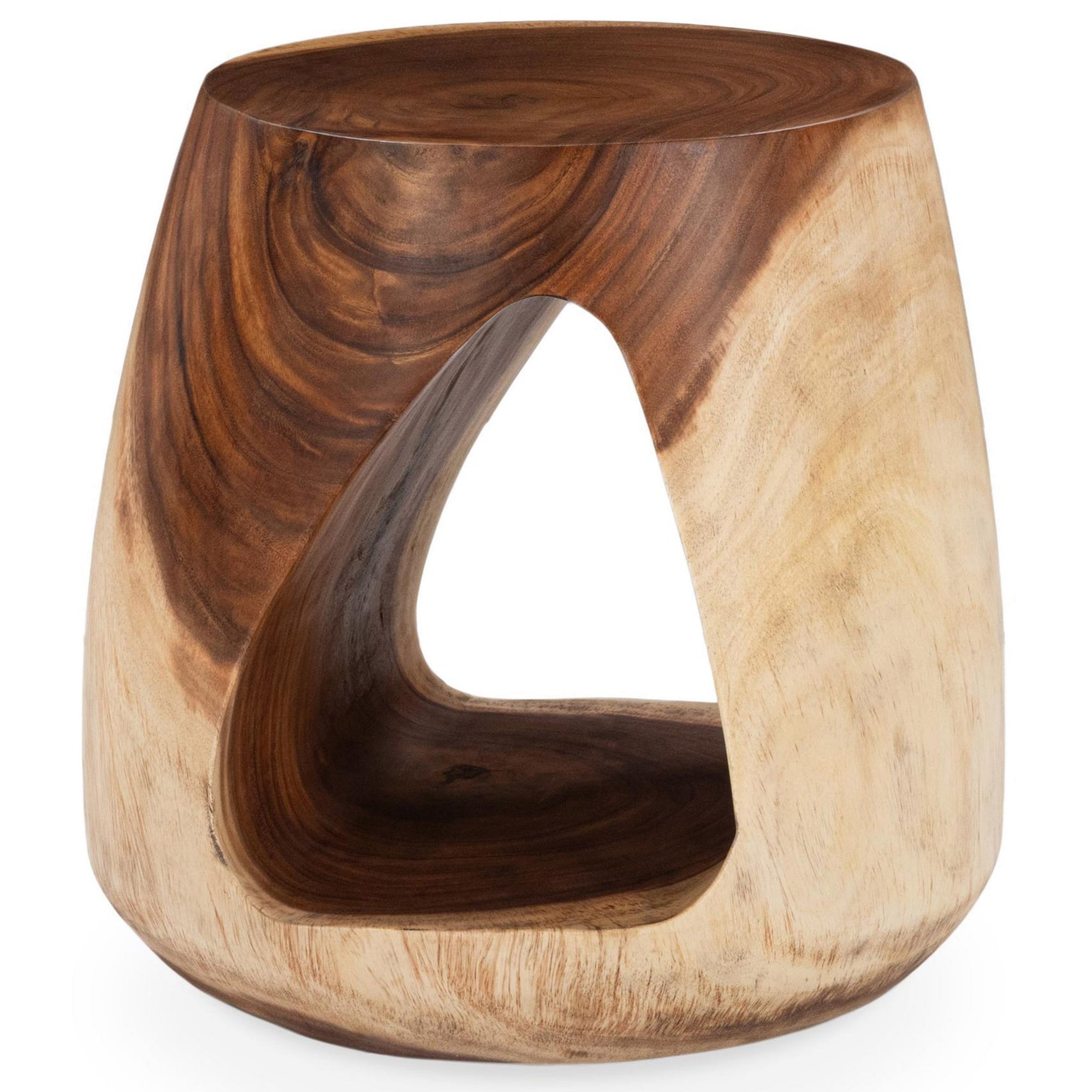 The Kana Accent Table captivates with sculptural curves and a rich organic grain. Its triangular cutout design adds visual depth, blending modern artistry with timeless natural warmth. Perfect as a statement side table or functional accent in living rooms, bedrooms, or refined modern spaces.