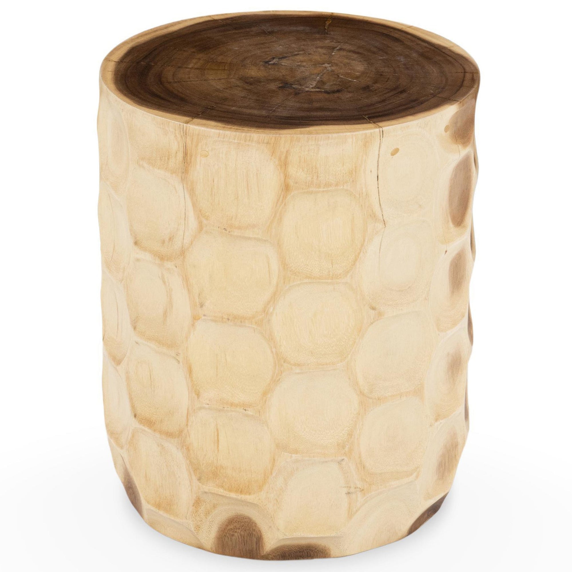 The Keila Accent Table infuses organic charm through its hand-carved form and textured surface. With sculpted dimples that echo nature’s raw beauty, this solid wood table blends rustic warmth with modern artistry. Perfect as a side table, nightstand, or pedestal, it adds an earthy statement to any room.