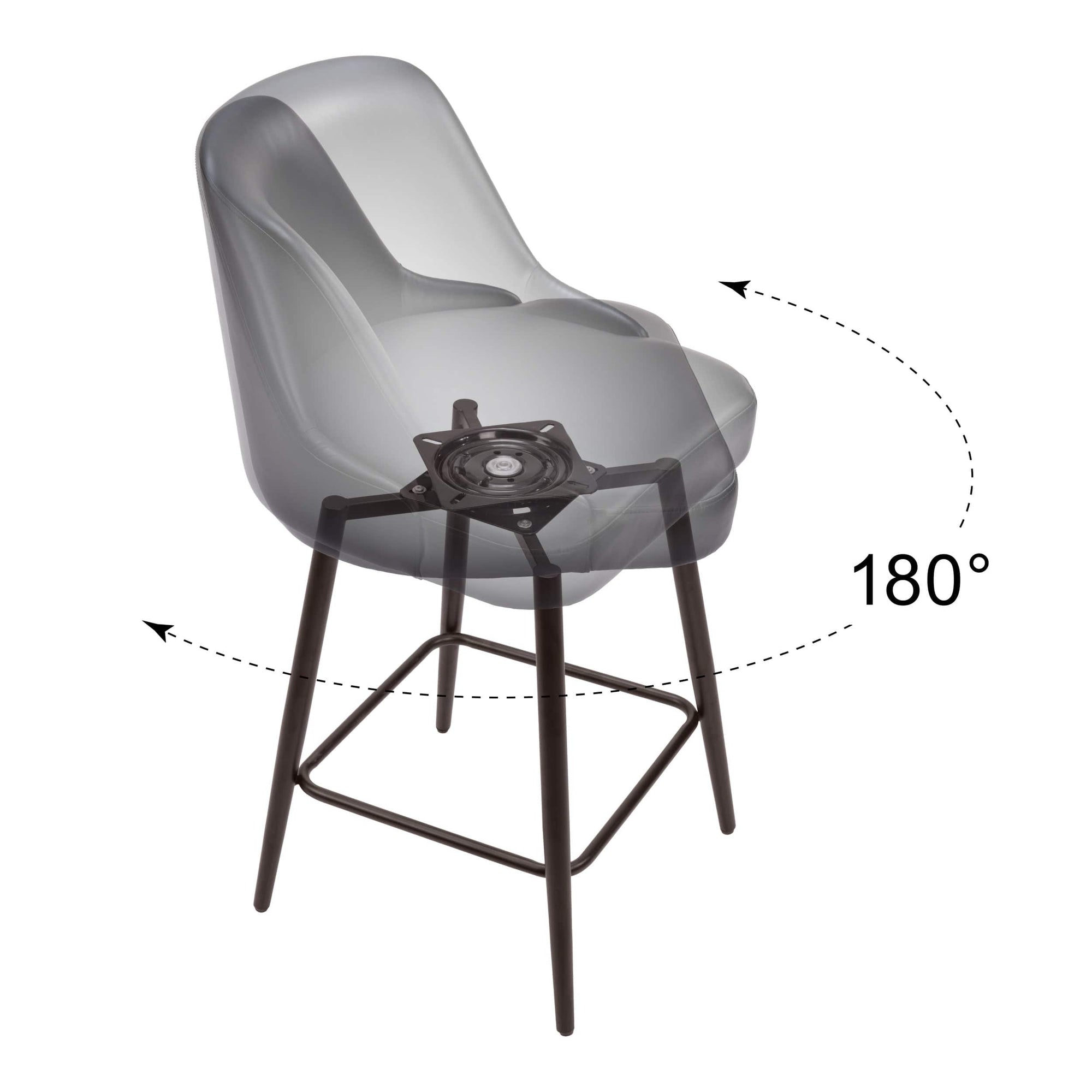 The Keppel counter stool is a wonderfully versatile and modern piece that works in any kitchen or workspace with its sleek design and functionally swivel seating. It is durably constructed with quality vinyl and a sturdy powder coated steel frame. This piece brings glam and Art Deco design to any space.