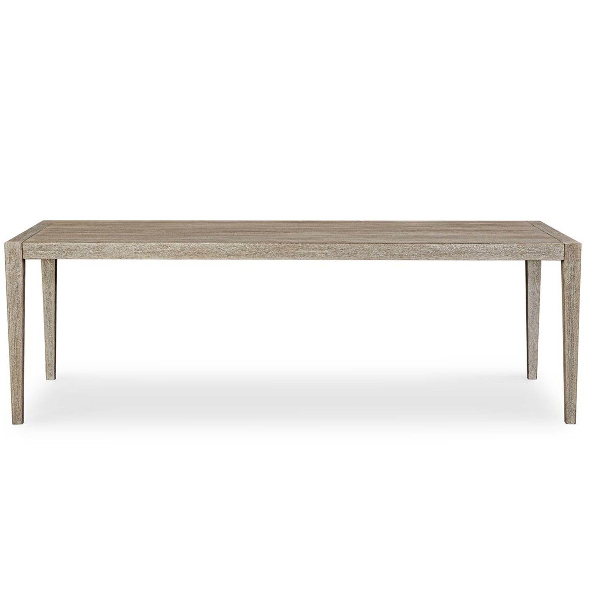 The Kirkham Dining Table combines contemporary farmhouse style with expert craftsmanship. Constructed from solid mahogany, this table features a light cerused wheat finish that highlights the wood's natural grain. Designed for versatility, this piece is suitable for both indoor and outdoor settings.