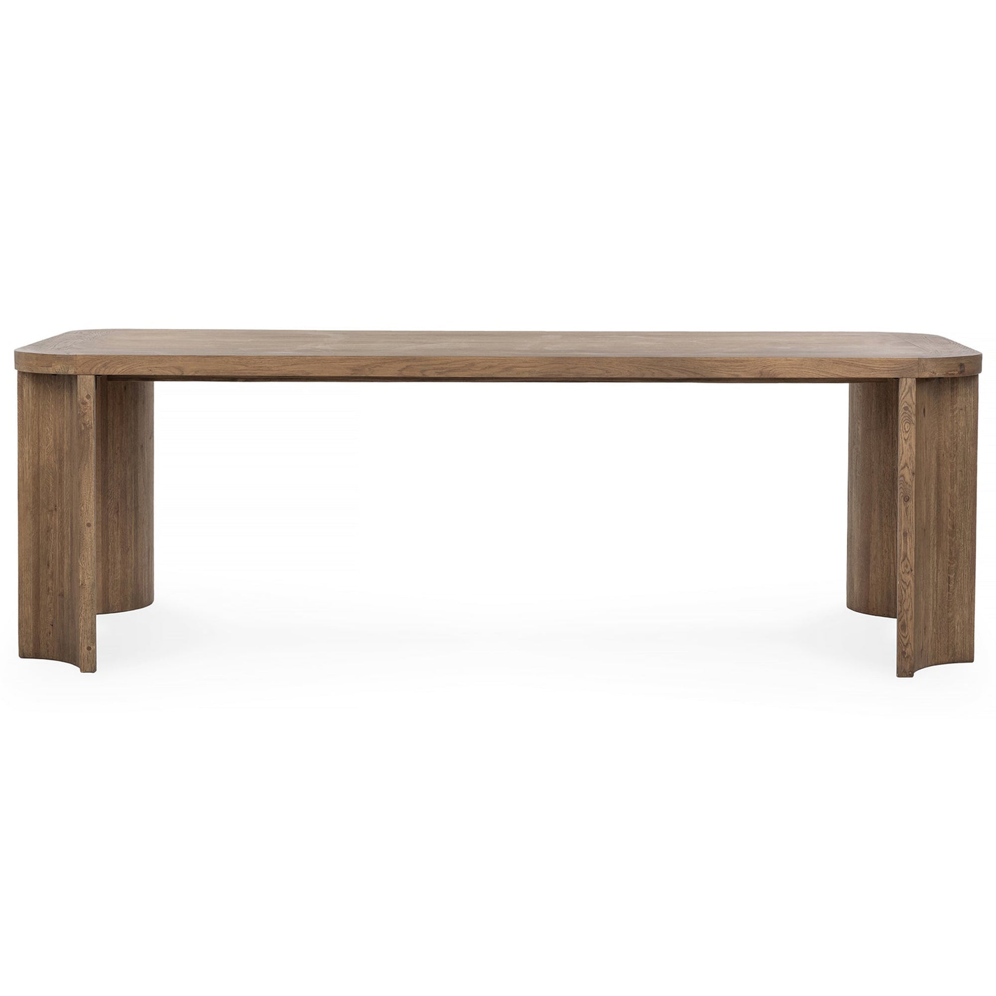 The Labelle Dining Table embodies modern simplicity with its clean lines and sculptural silhouette. Crafted with an oak veneer top and gently rounded edges, it exudes understated elegance. The natural tan finish accentuates the wood’s organic grain, creating a light, airy aesthetic that complements a variety of interiors. Perfect for contemporary dining rooms or open-concept spaces, this table blends timeless style with everyday functionality for gatherings large and small.