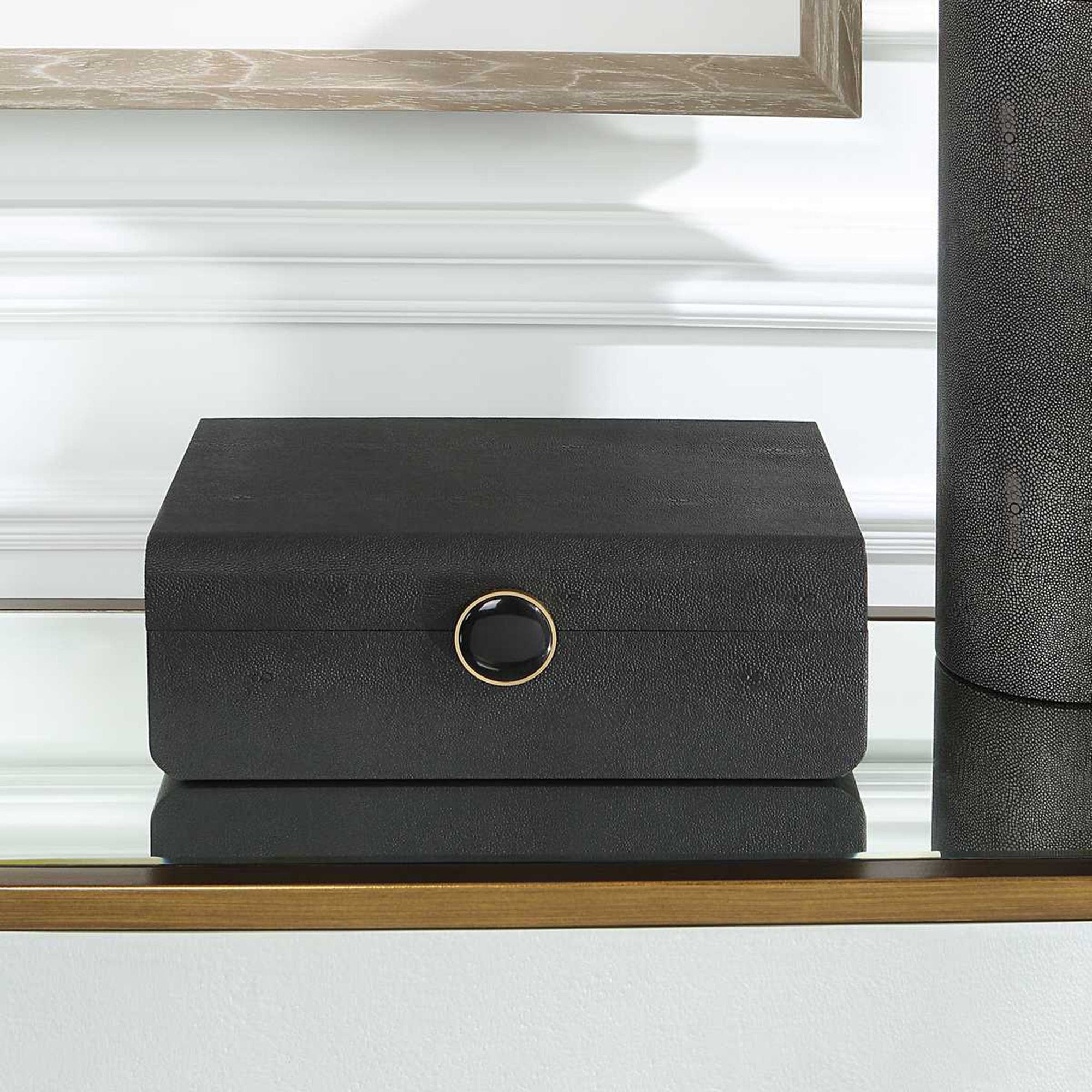 | Material Detail | Faux Shagreen, Brushed Antique Brass, Enamel |
