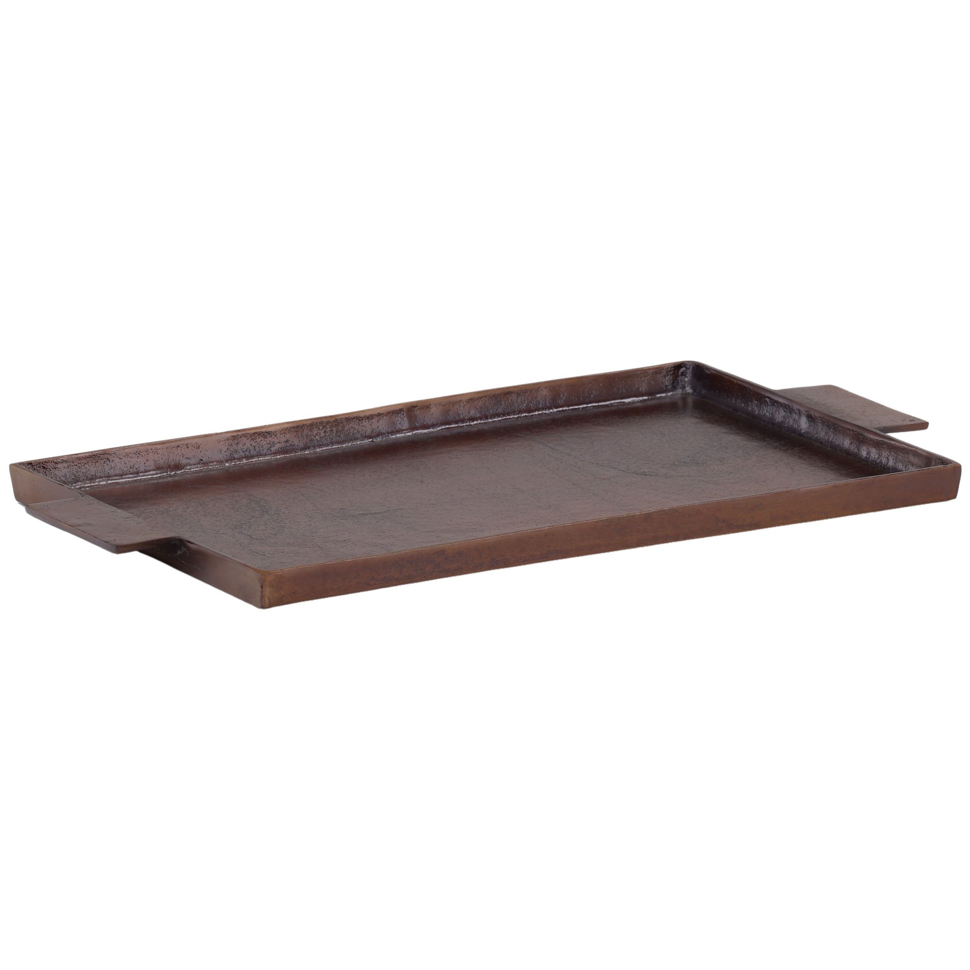 The Langford Tray features a sleek aluminum design with an antique bronze finish. Its rectangular shape and clean lines make it an elegant and functional accent for serving, organizing, or displaying items in any room.
