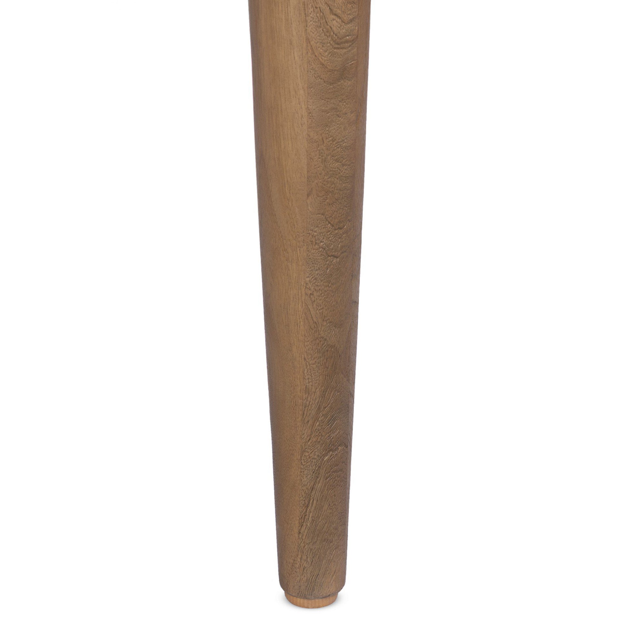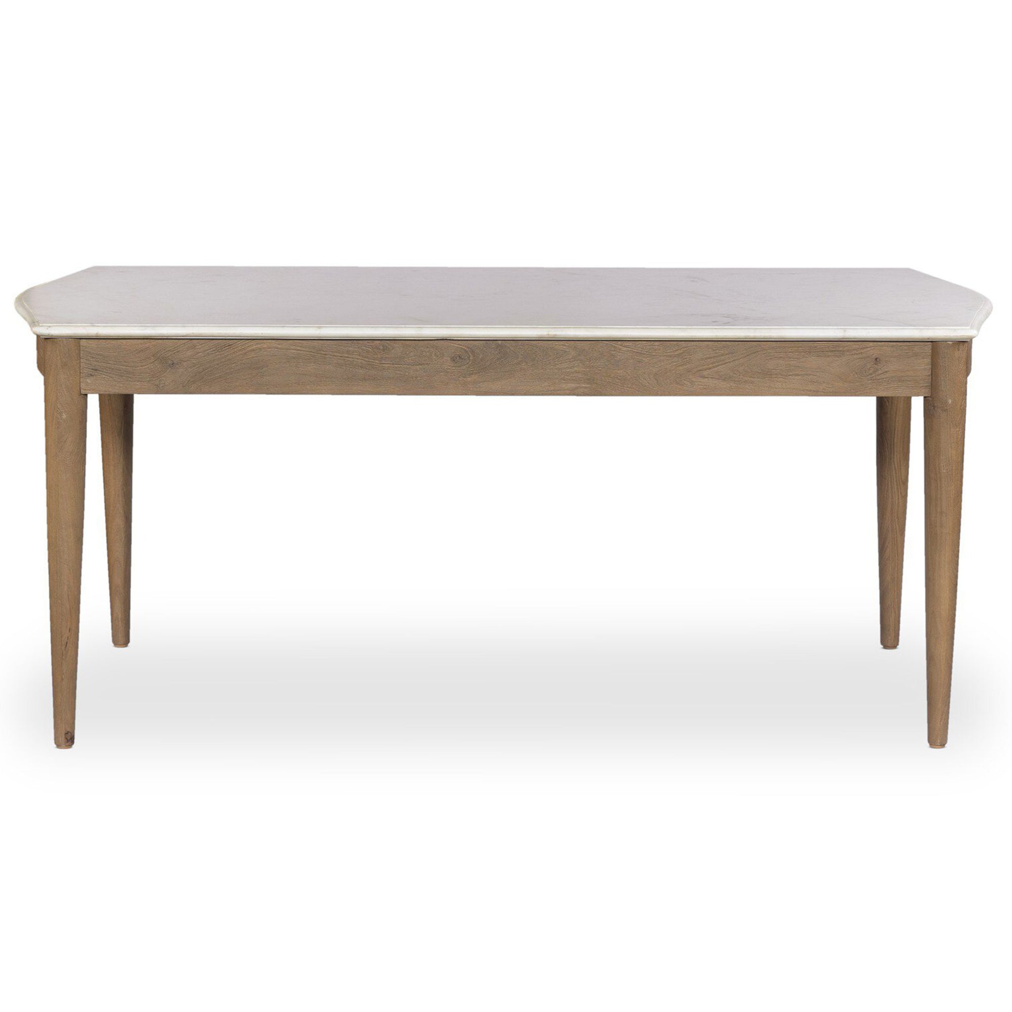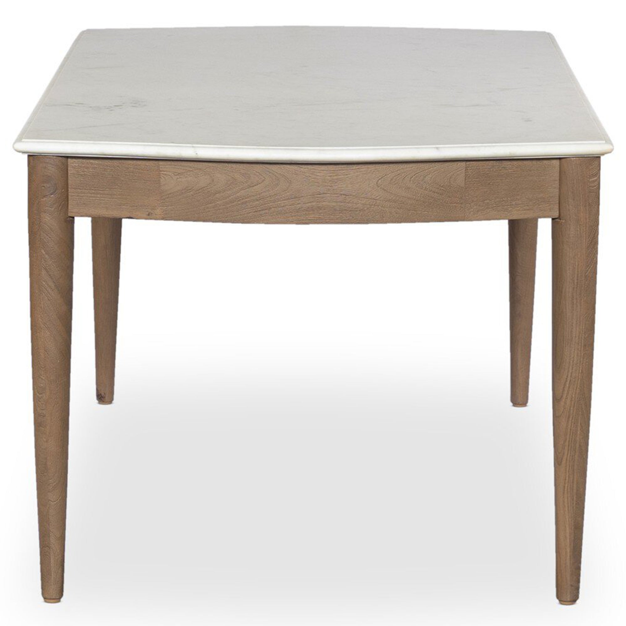 The Lison Dining Table features a white marble top with reverse ogee arches, creating a sophisticated capsule-inspired design. Sized for intimate gatherings, its solid mango wood base with tapered legs provides balanced support and refined elegance. Perfect for modern dining spaces that value both style and functionality.