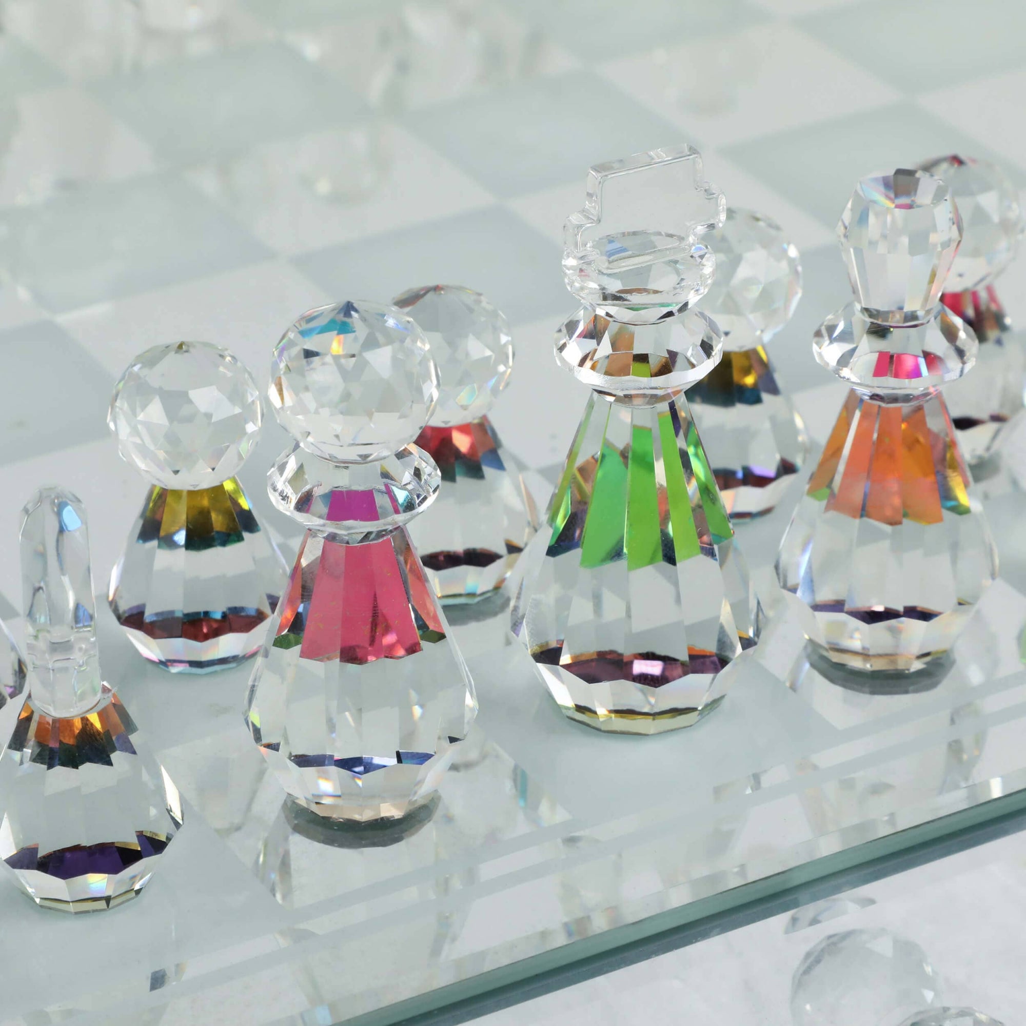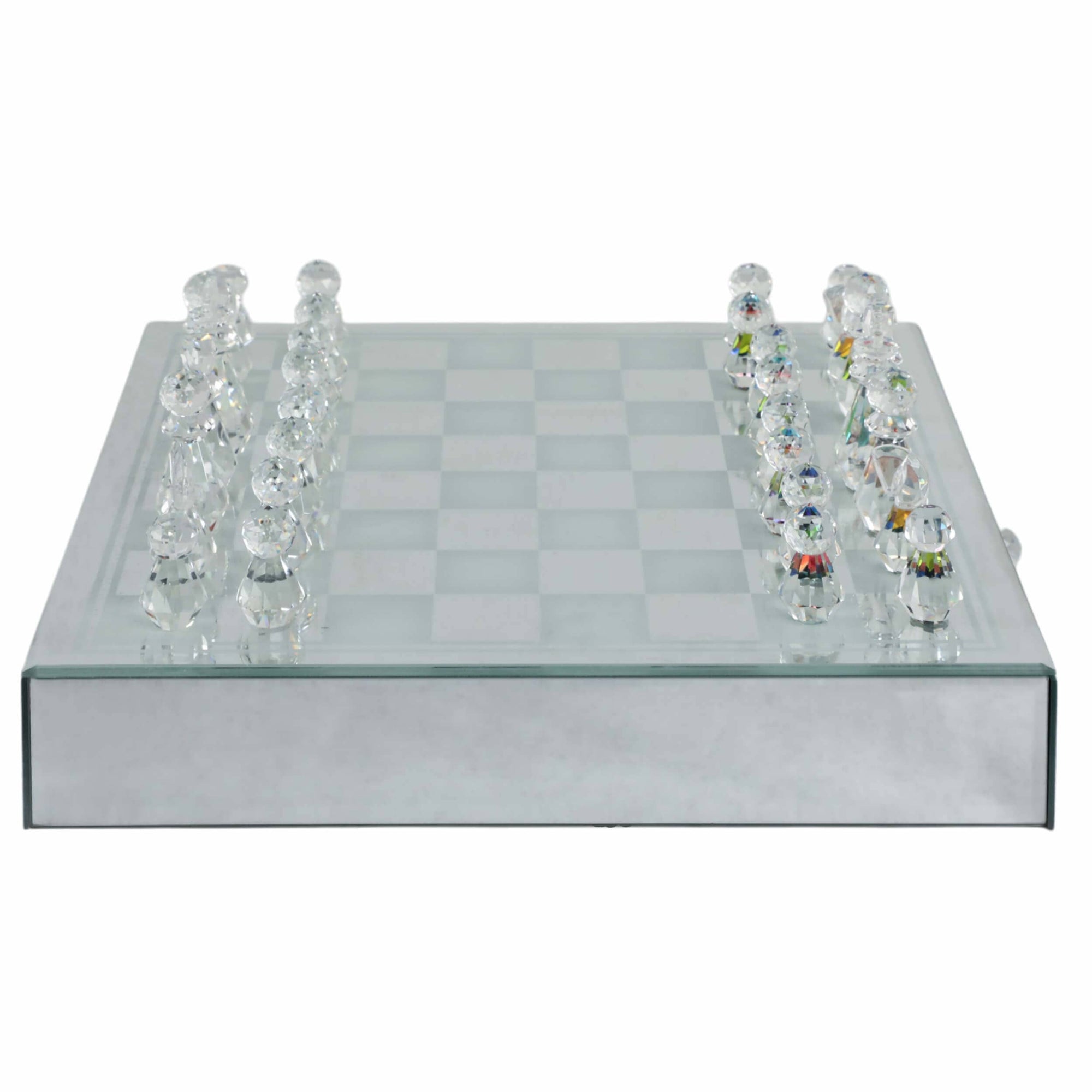 Luxury Glass Chess Set w/ Crystal Pieces, Silver