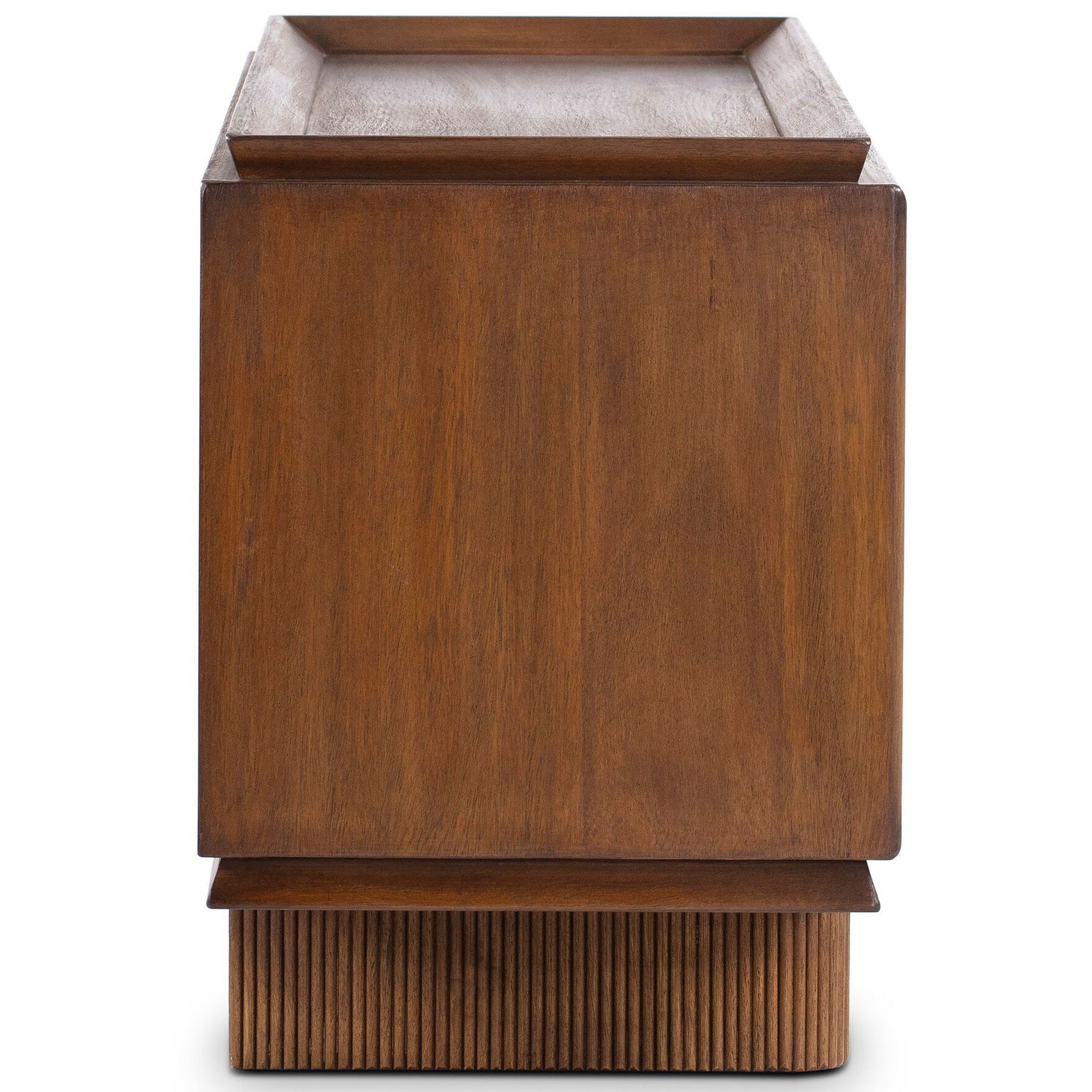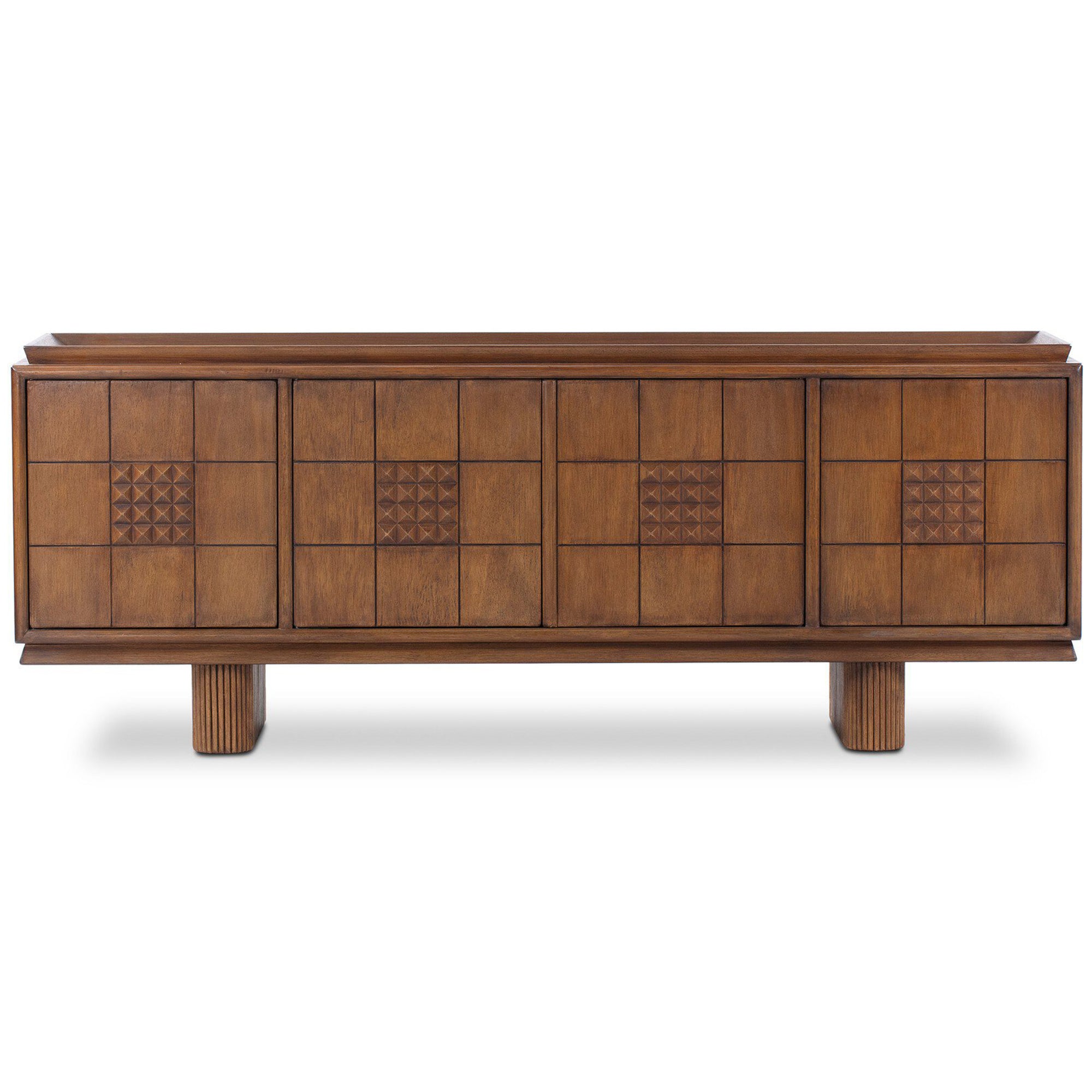 The Lyle Media Console blends Art Deco-inspired design with functional detail. Featuring textural front doors, a tray top, and a prominent grid pattern, this console provides an elegant spot for media components. Adjustable shelving and rear cutouts for cord management enhance usability while maintaining a clean, design-forward look.