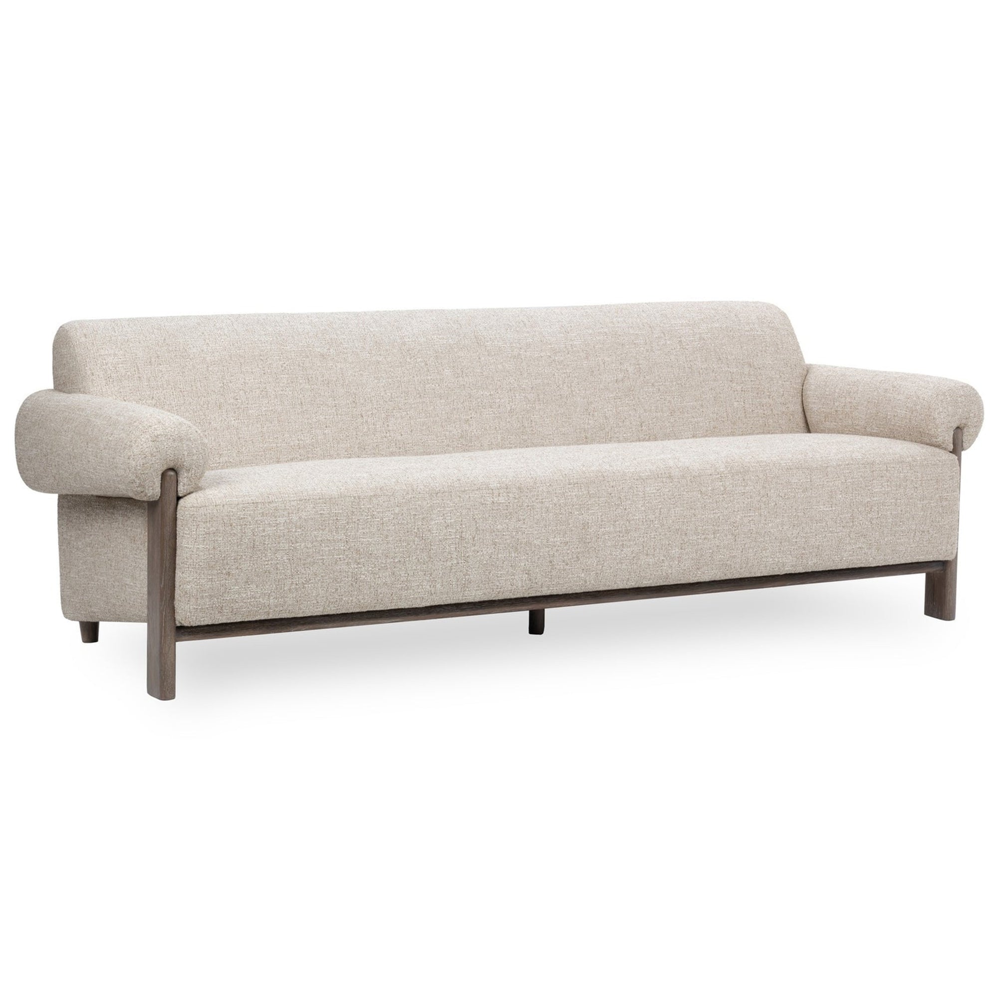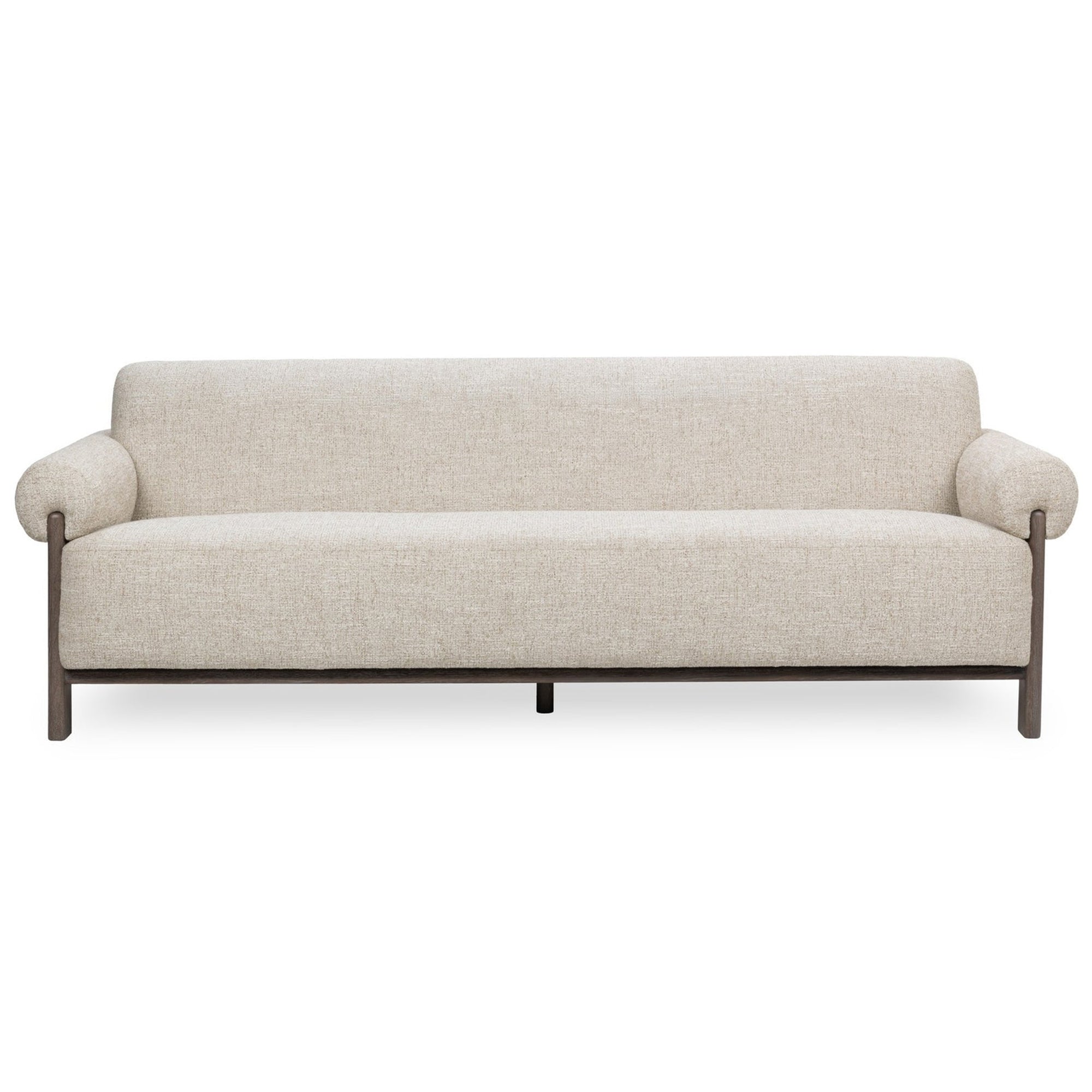 The Malia Sofa brings modern elegance to your space. Upholstered in soft fabric (polyester) with a solid wood and wood veneer frame, the sleek, sculptural frame features rounded arms and a tailored silhouette. This stylish piece combines quality craftsmanship with durable materials for long-lasting comfort and visual appeal.