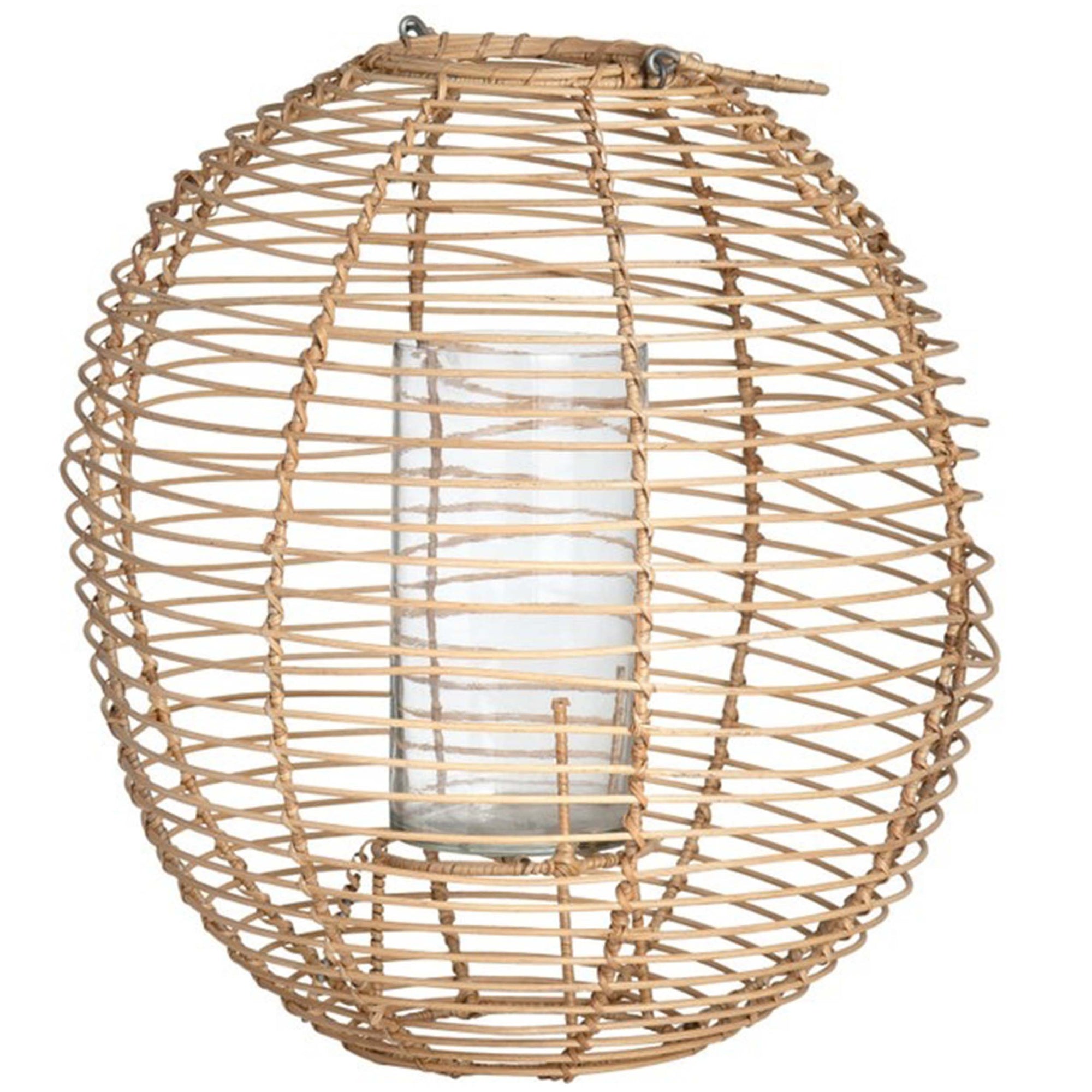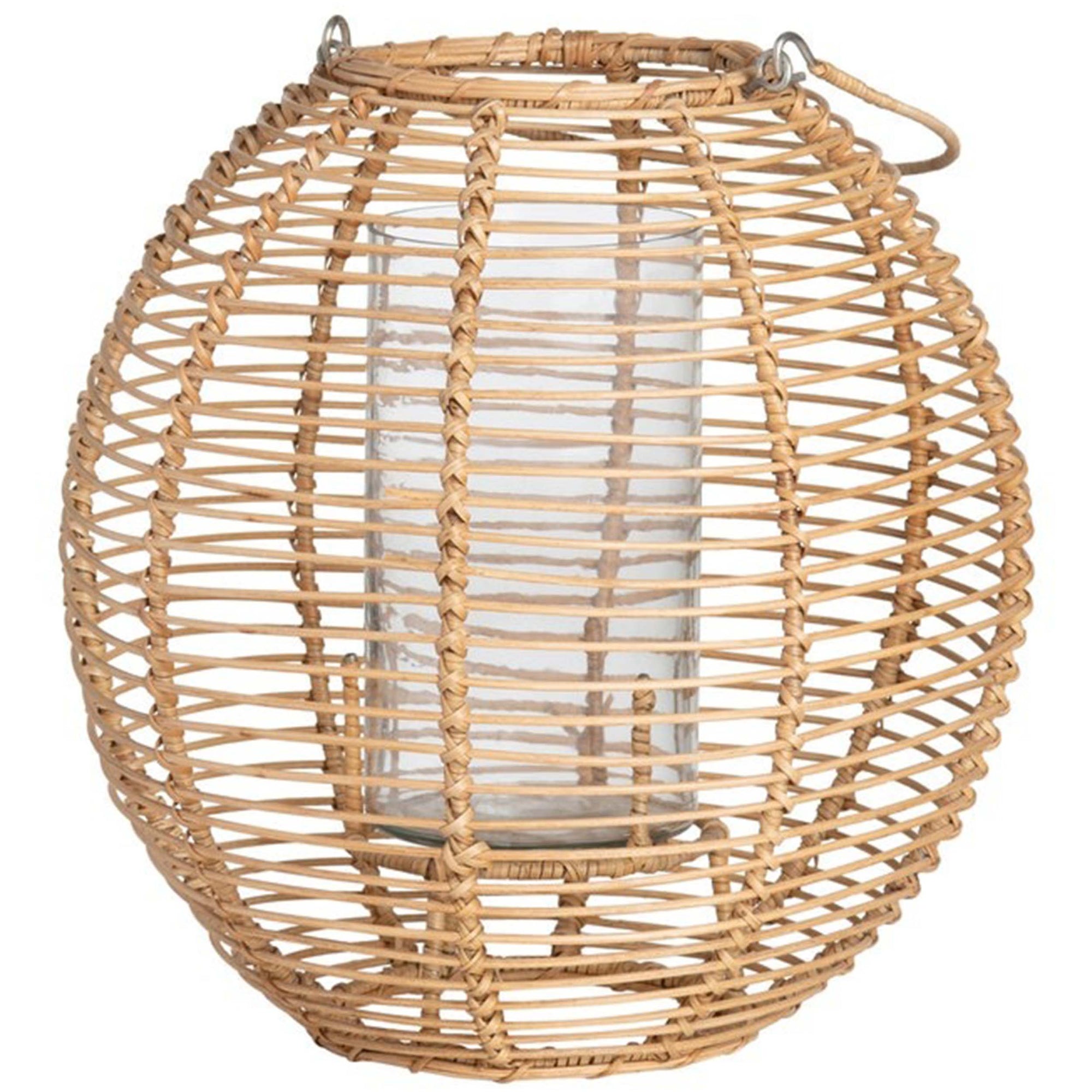 The Mallory Candle Holder features a globe-shaped rattan design with a clear glass container nestled inside for stability. Its compact size and coastal-inspired style make it ideal for accent tables or grouping with other decorative pieces to create a warm, inviting glow.