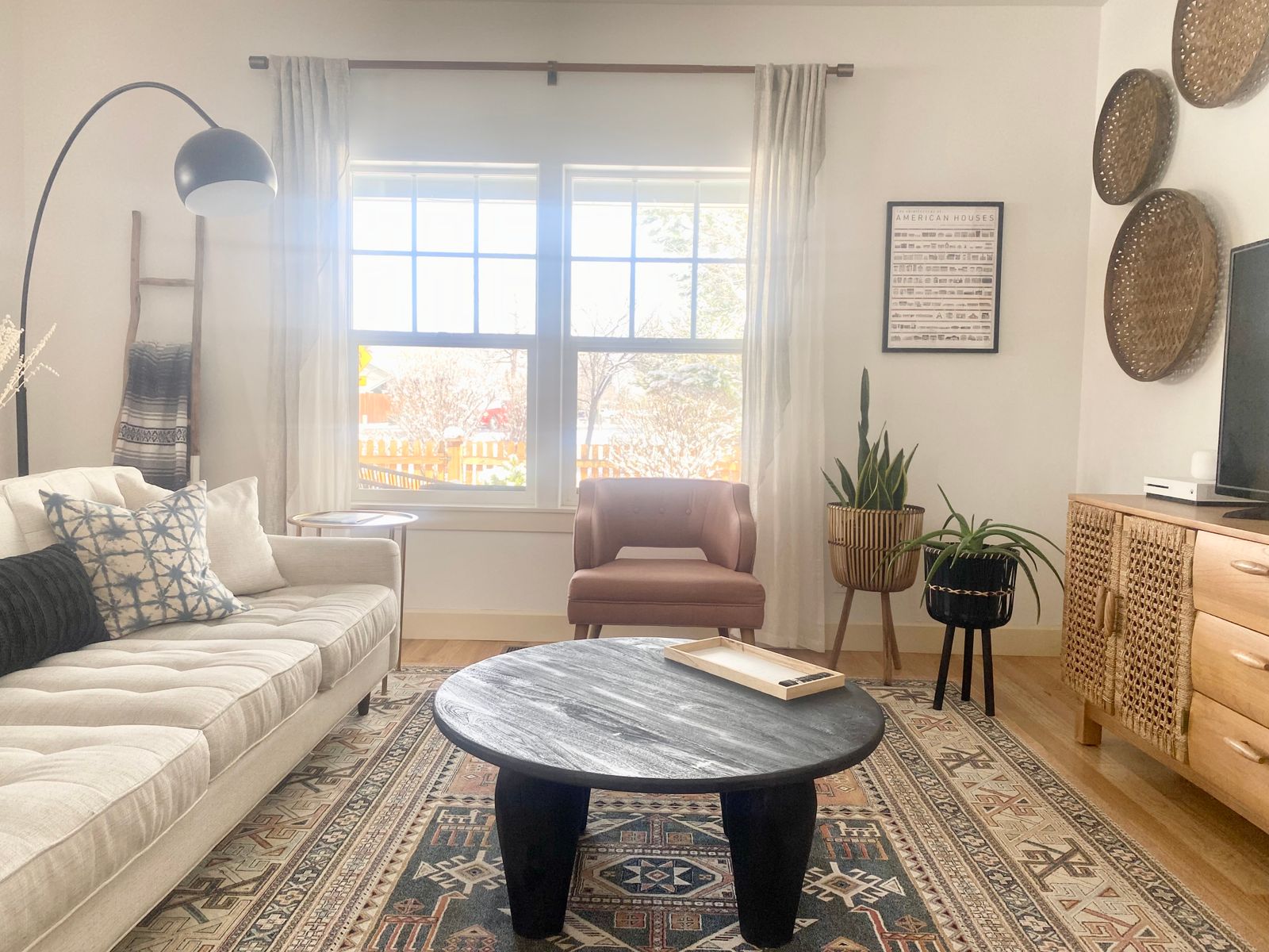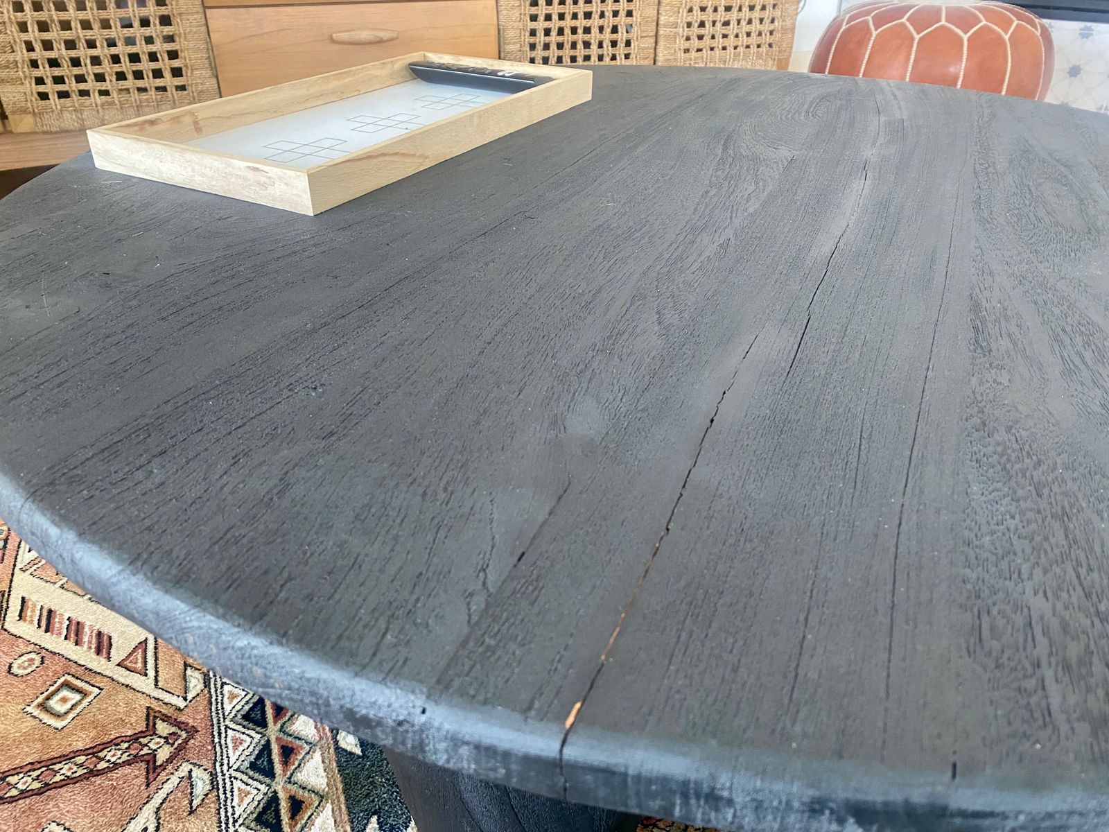 I love the look of the table but didn’t realize the direction of the grain wouldn’t align with the legs (I also didn’t inquire about it which is totally on me.) I had hoped to position it so the graining would run horizontally with my sofa, but the legs determined otherwise; so by default the graining is at a diagonal. Also, there is some “splitting,” which may be normal as this is reclaimed wood, but it appears to have separated after it was painted. I can mitigate the look with fill stick so I can live with it.