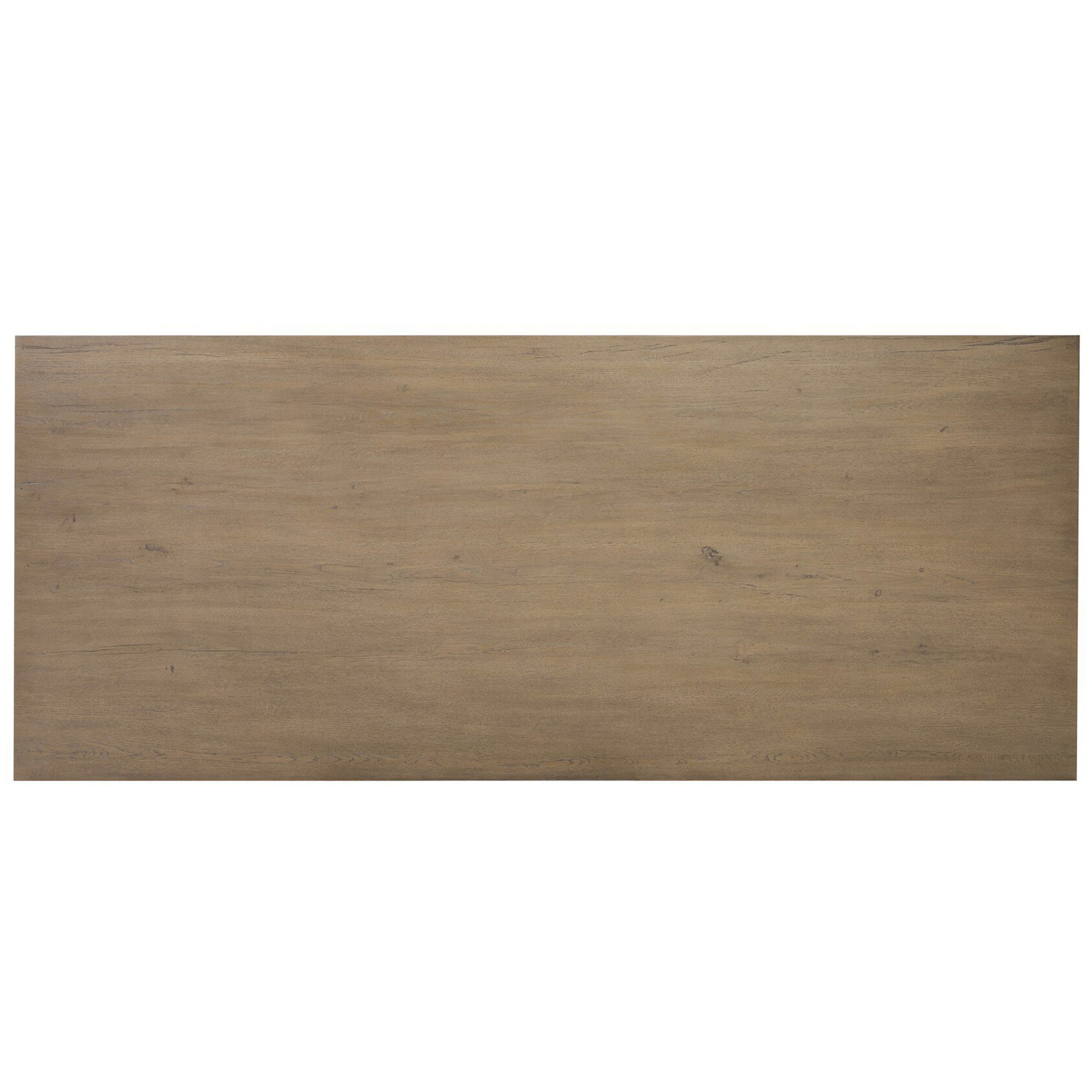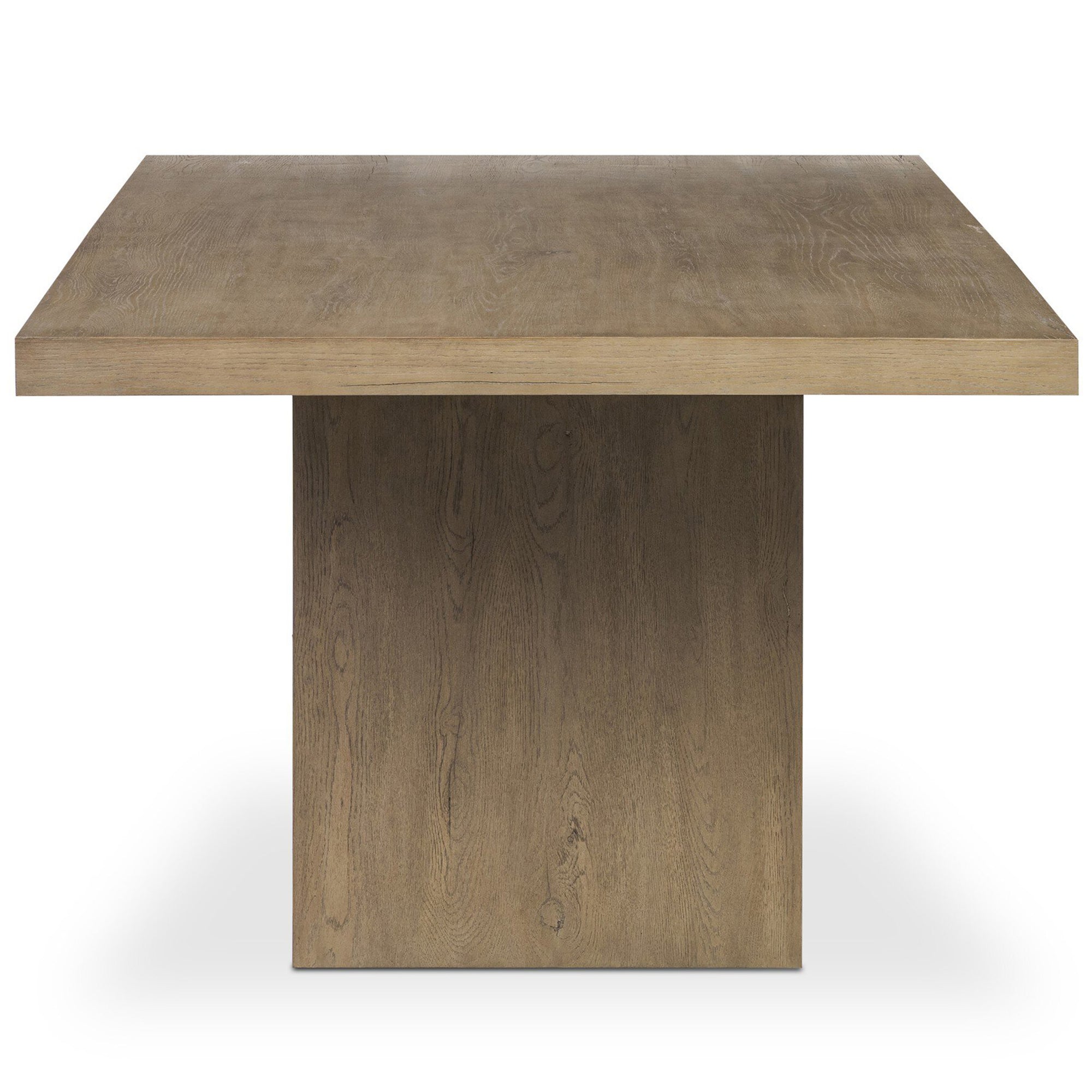 The Matthes Dining Table features a streamlined design crafted from oak veneer with a rustic finish. Its natural wood grain and clean lines make it a versatile centerpiece for any dining space.