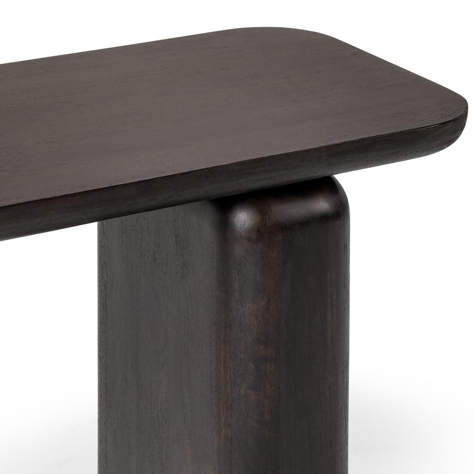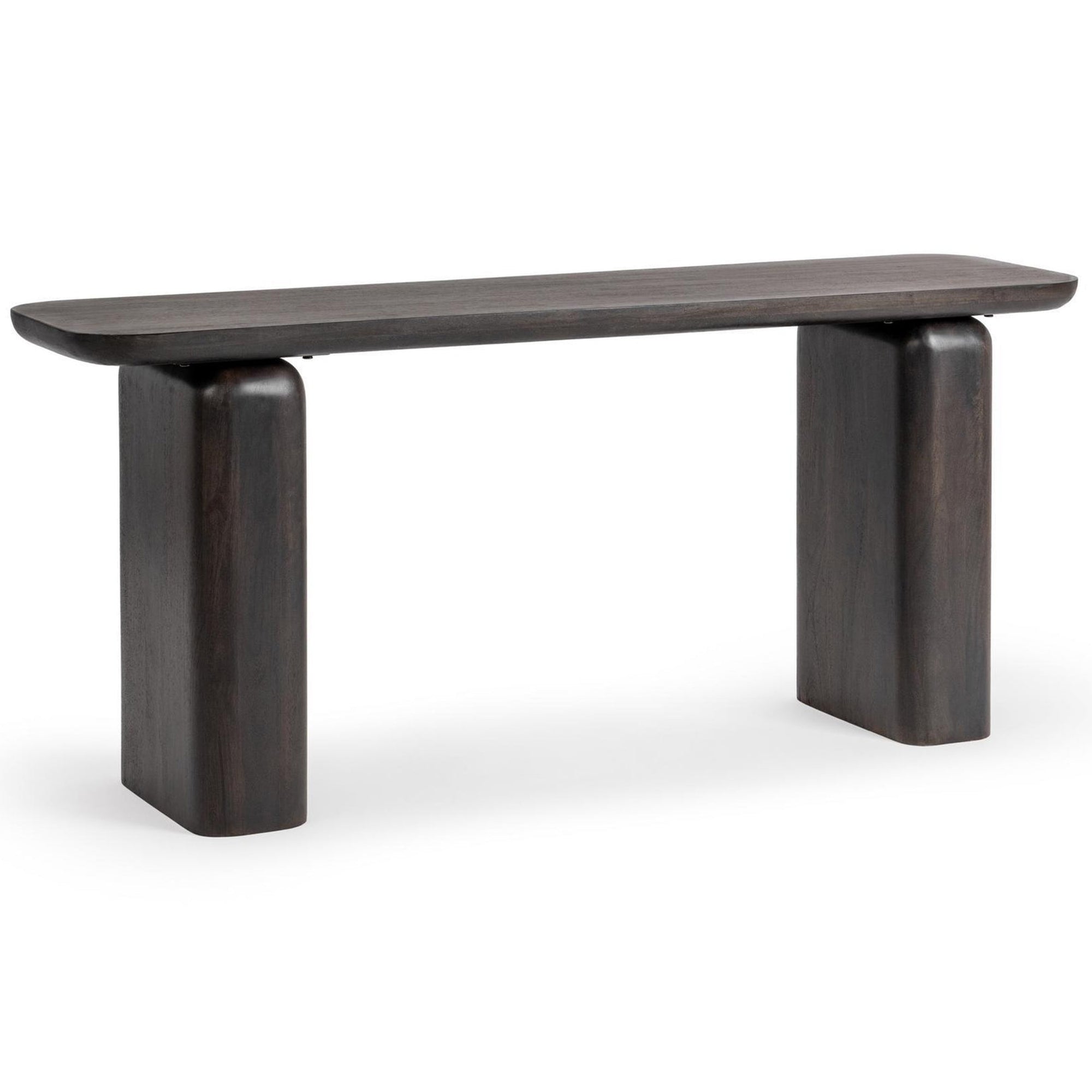 The Milan Console Table elevates your living room, designed with a streamlined rectangular top and rounded block legs for modern sophistication. Its dark finish highlights the natural wood grain, making it a versatile piece that pairs beautifully with both contemporary and rustic décor. Functional and chic, this table helps you create a cohesive, curated space.