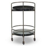 The Mira Bar Cart brings sculptural elegance to entertaining. Thick cast glass in a rich dark brown hue creates a striking contrast against the structured dark brass frame. Rounded in form and refined in detail, this bar cart balances vintage-inspired charm with modern sophistication. Ideal for serving or display, it adds a touch of luxury to any gathering space.