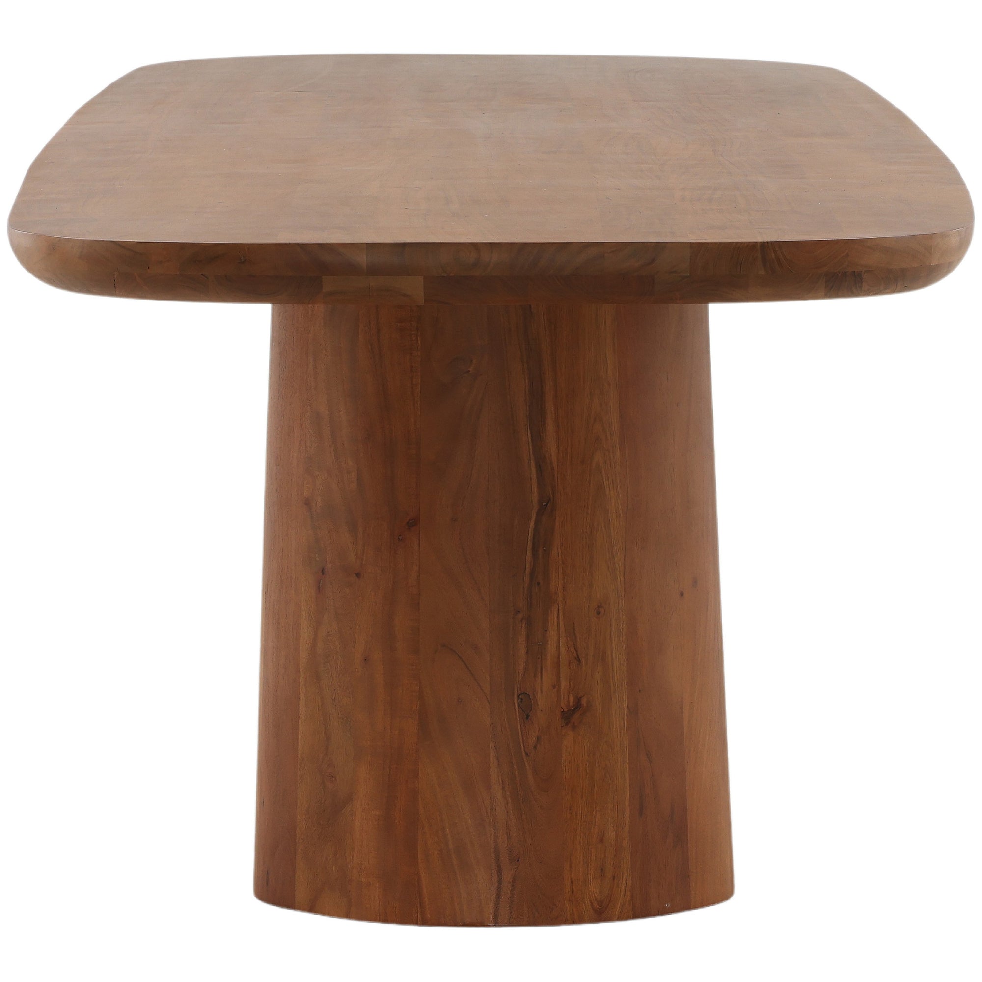 The Mirinda Dining Table showcases the natural beauty of acacia wood in a bold rectangular design. With its expansive surface, this table is ideal for large family meals or entertaining guests. Its rich brown finish highlights the wood’s unique grain, ensuring each piece brings warmth and character to your dining space.
