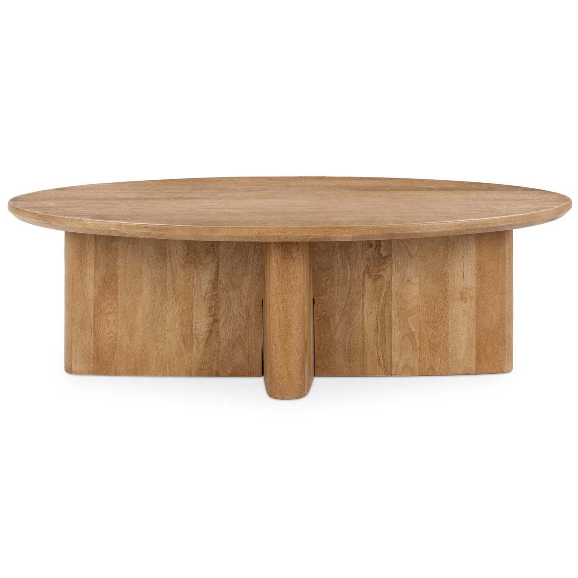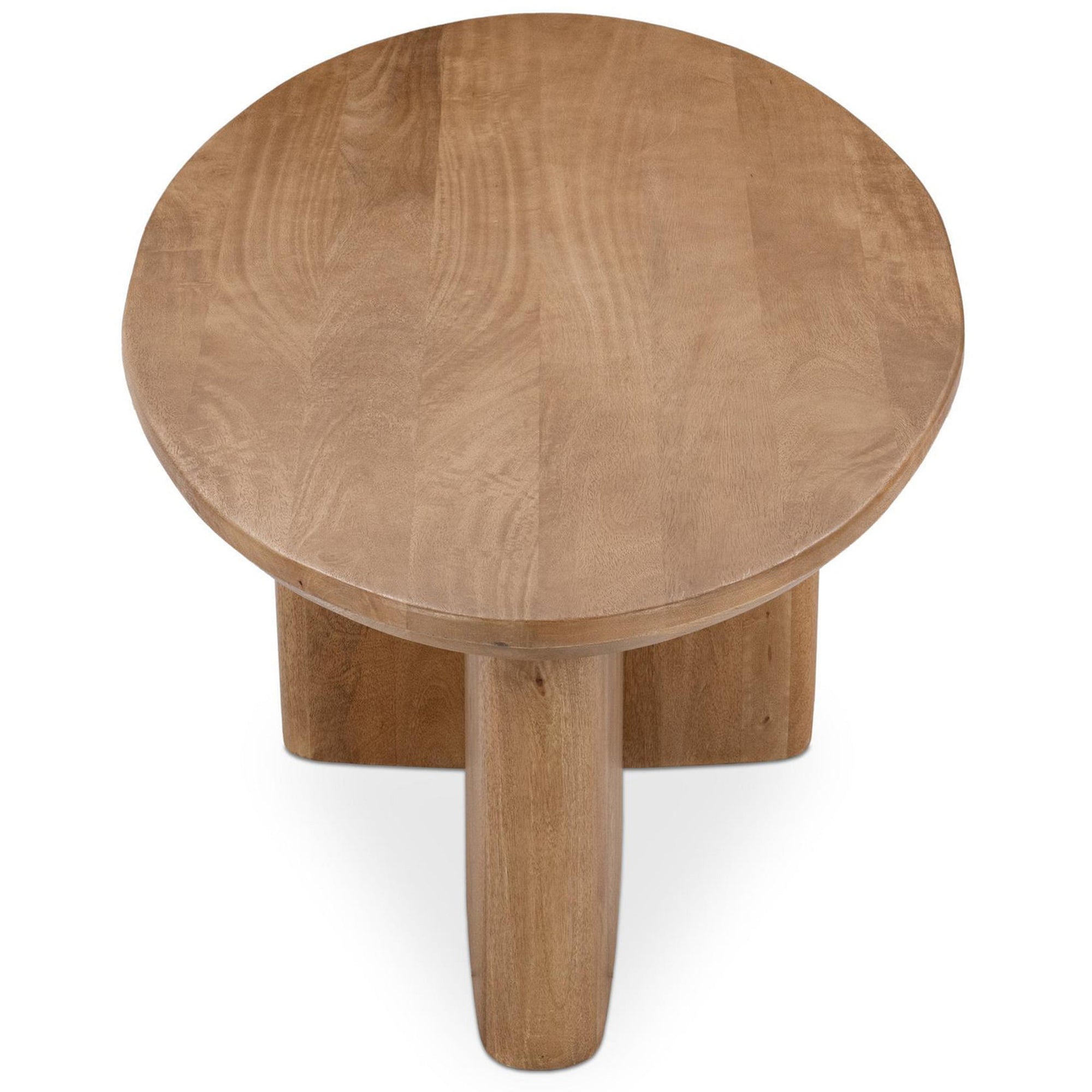 The Montengo Oval Coffee Table showcases organic beauty and sculptural form in solid mango wood. Handcrafted with a smooth oval tabletop and a bold, architectural base, it highlights the natural grain and warmth of the wood. Perfect as a living room centerpiece, this modern coffee table balances artistry and function, enhancing any contemporary, rustic, or eclectic space.