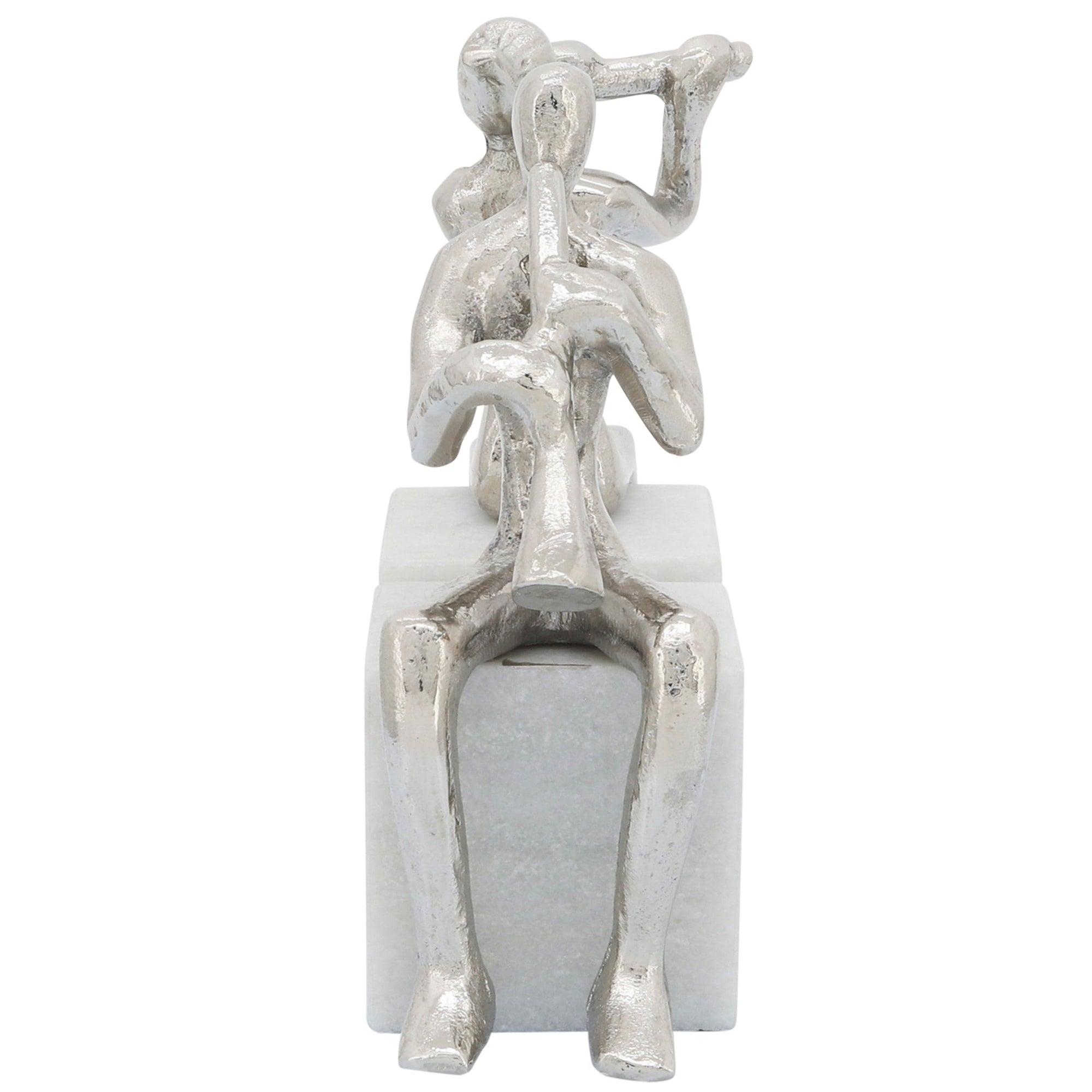 The Musicians on Marble Base bookends bring art and functionality together in a striking design. Crafted from high-quality metal with a sleek silver metallic finish and anchored by solid marble bases, each piece features beautifully sculpted musicians that add elegance and character to your space. Perfect for organizing books or displaying décor on shelves, desks, or tabletops, these bookends combine durability with contemporary style. Their sophisticated design makes them an ideal accent for modern, minimalist, or eclectic interiors, adding both charm and visual interest to any room.