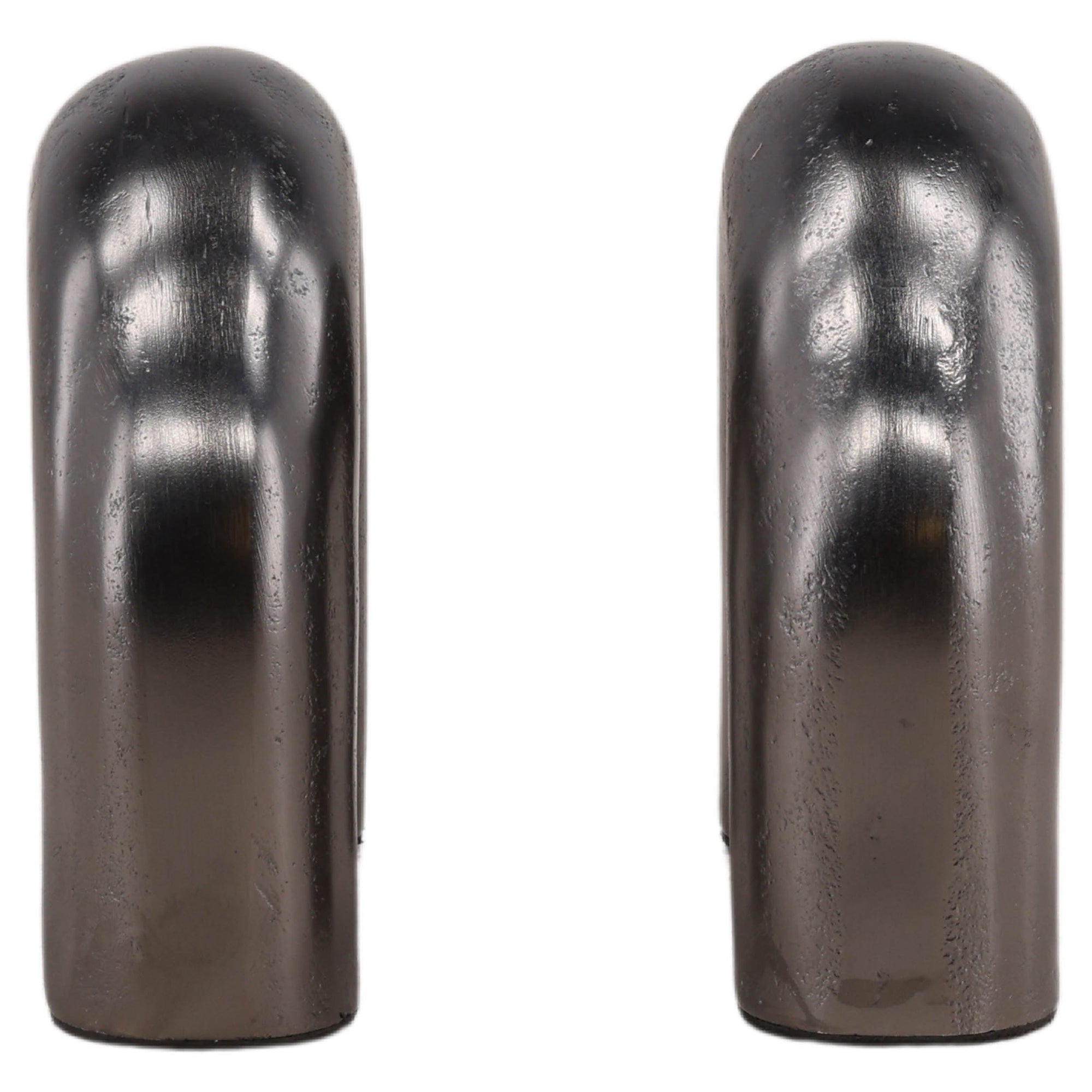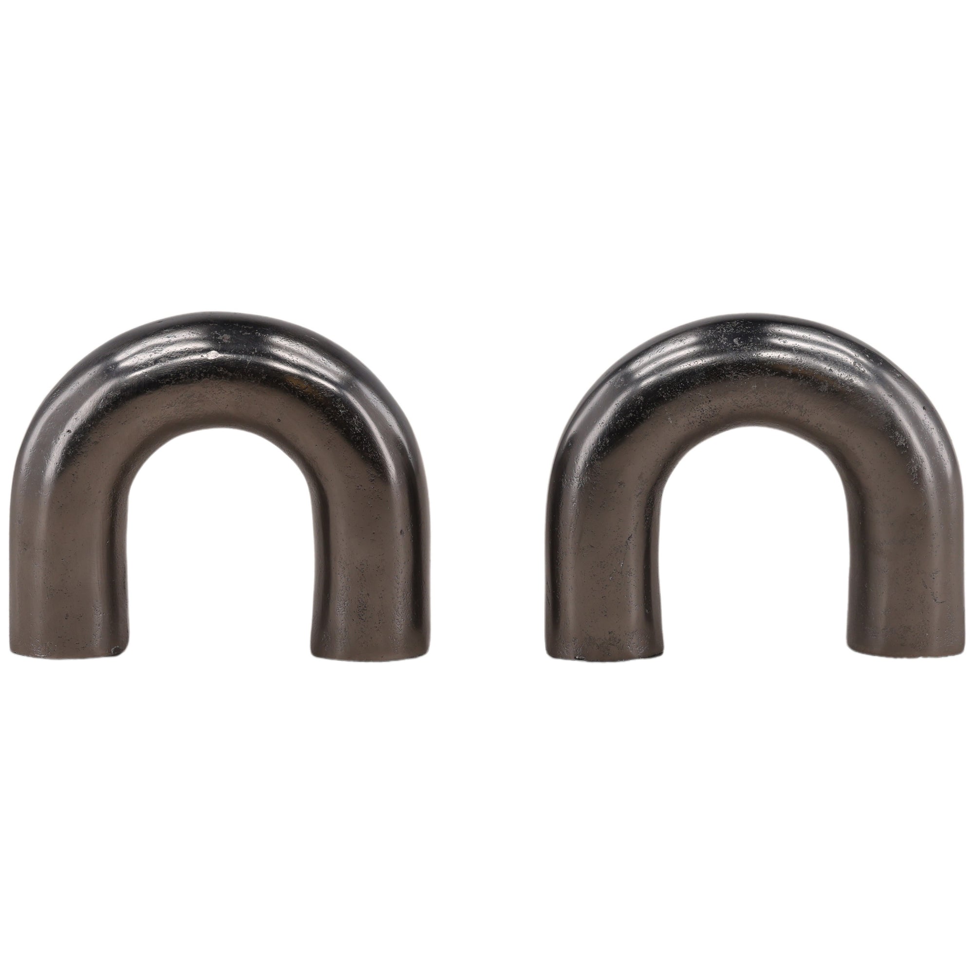The Nevra Bookends feature sleek aluminum construction with an antique black finish. Their compact size provides a stylish and functional way to organize books while adding modern metallic accents to shelves or desks.
