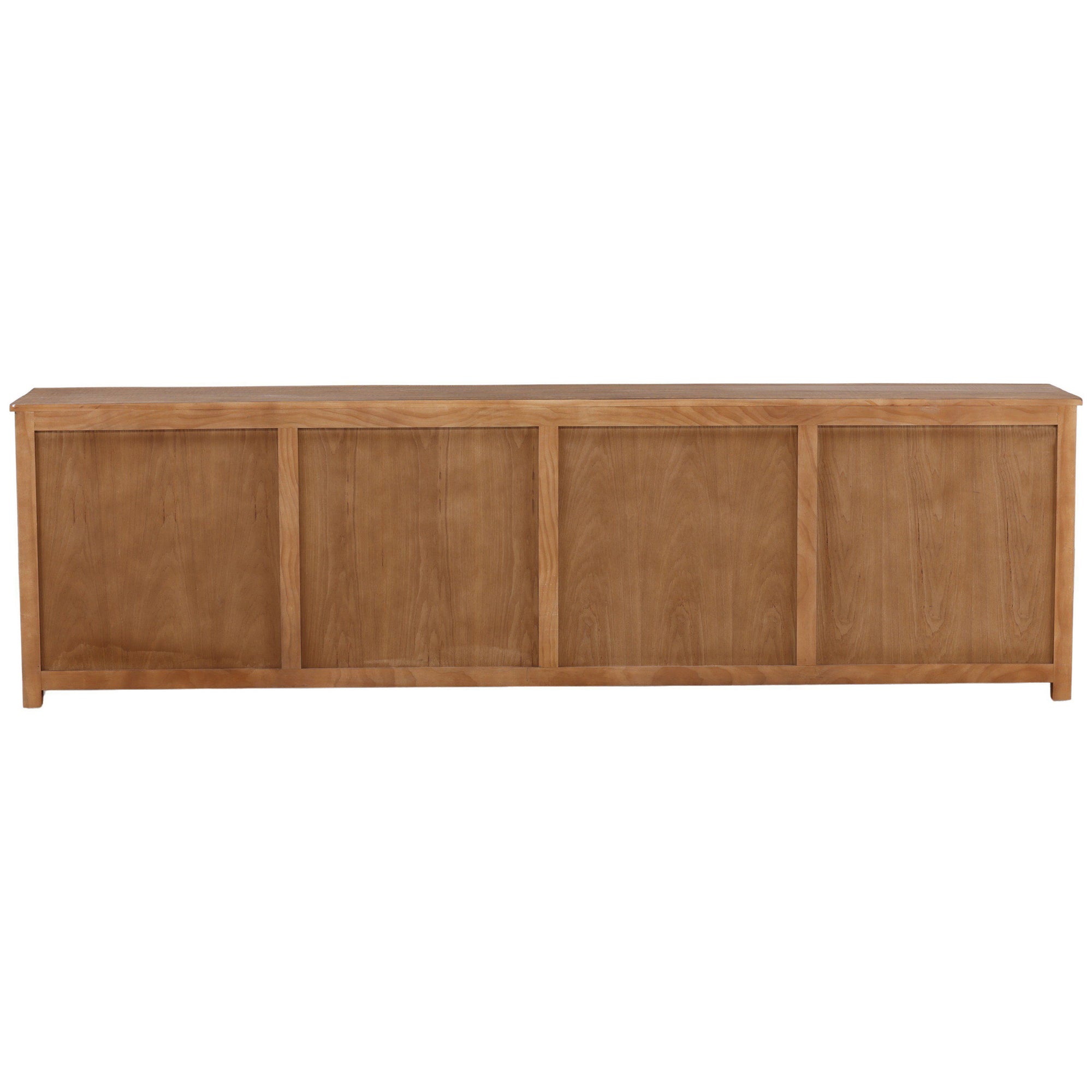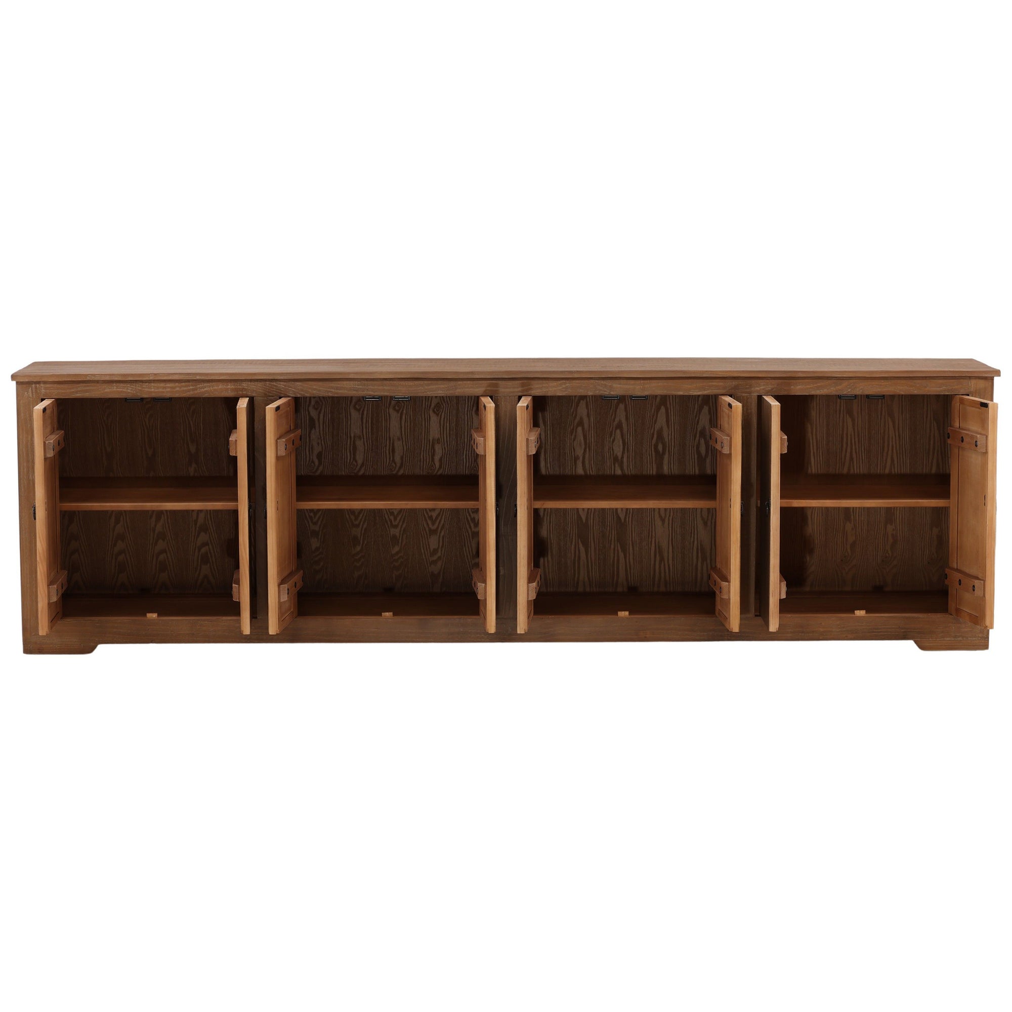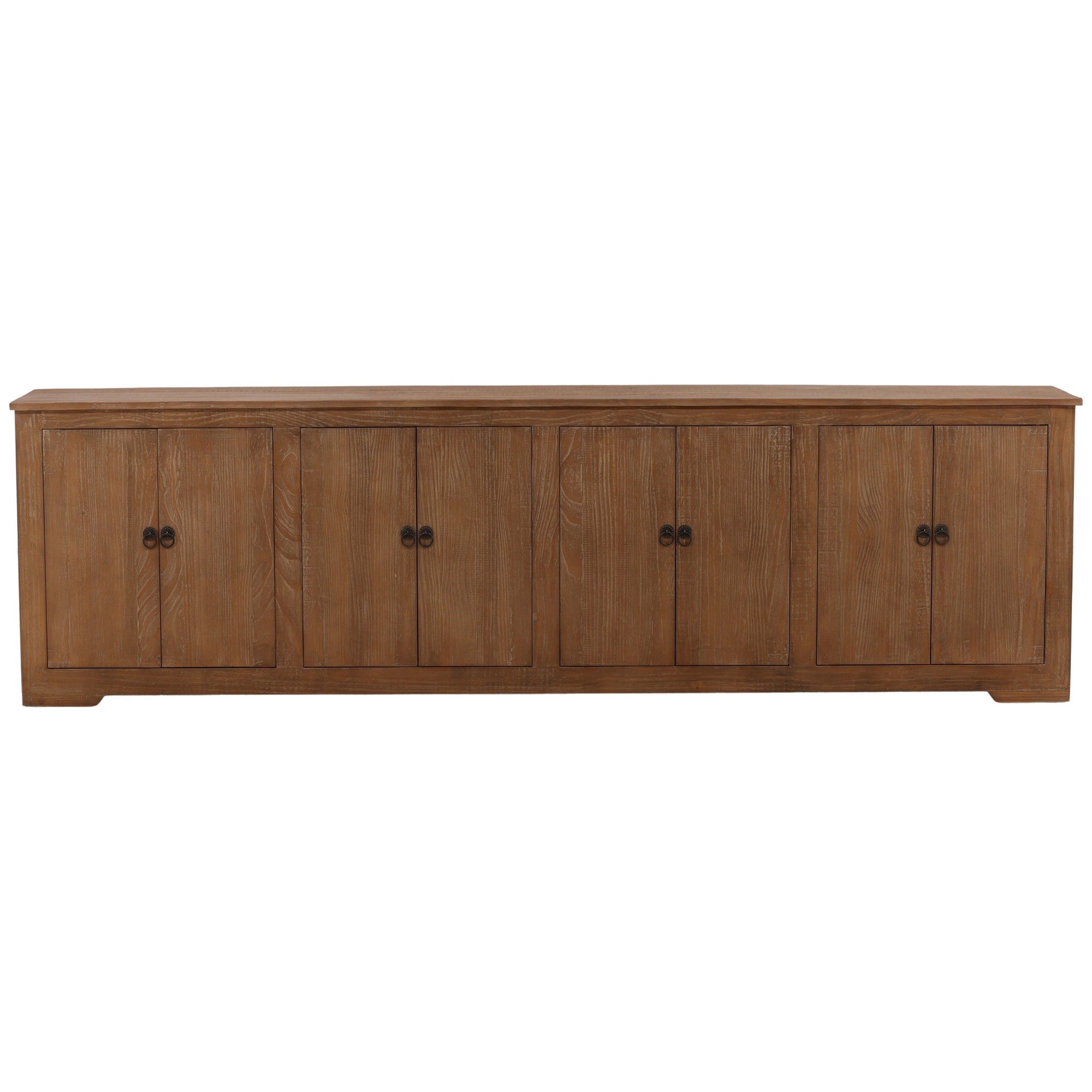 The Nico 8 Door Sideboard combines impressive scale with handcrafted charm. Stretching over nine feet in length, this statement storage piece is built from reclaimed pine hardwood and finished in a light warm wash that highlights the wood’s natural character. Eight butterfly-style doors with iron toggle pulls open to reveal spacious cabinets and built-in shelving for organized storage. Each piece is meticulously finished by hand, making it truly one-of-a-kind.